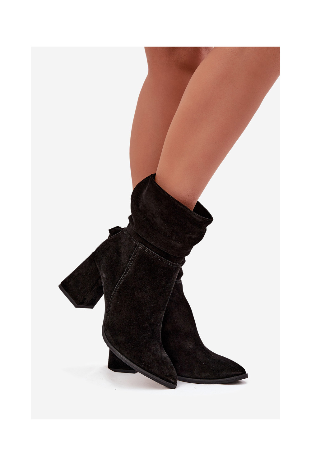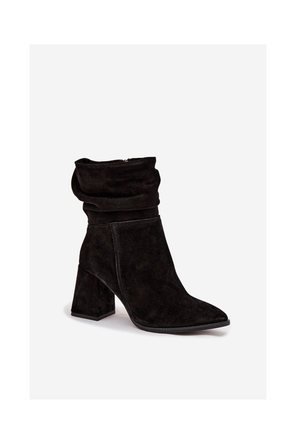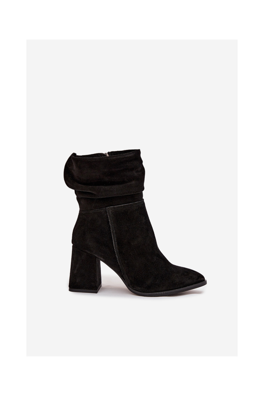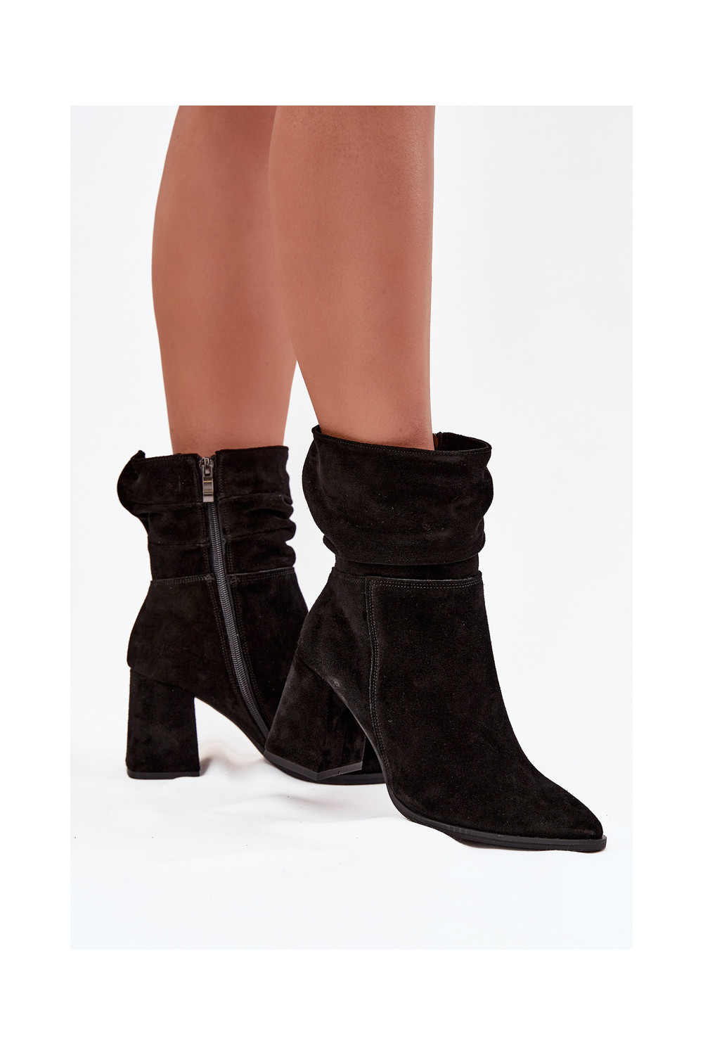 Dřeváky Z Naturalnego Zamszu zateplené s podpatky Zazoo 4216 Černé