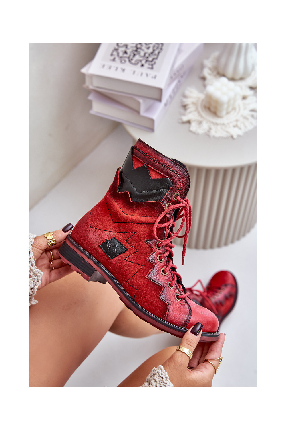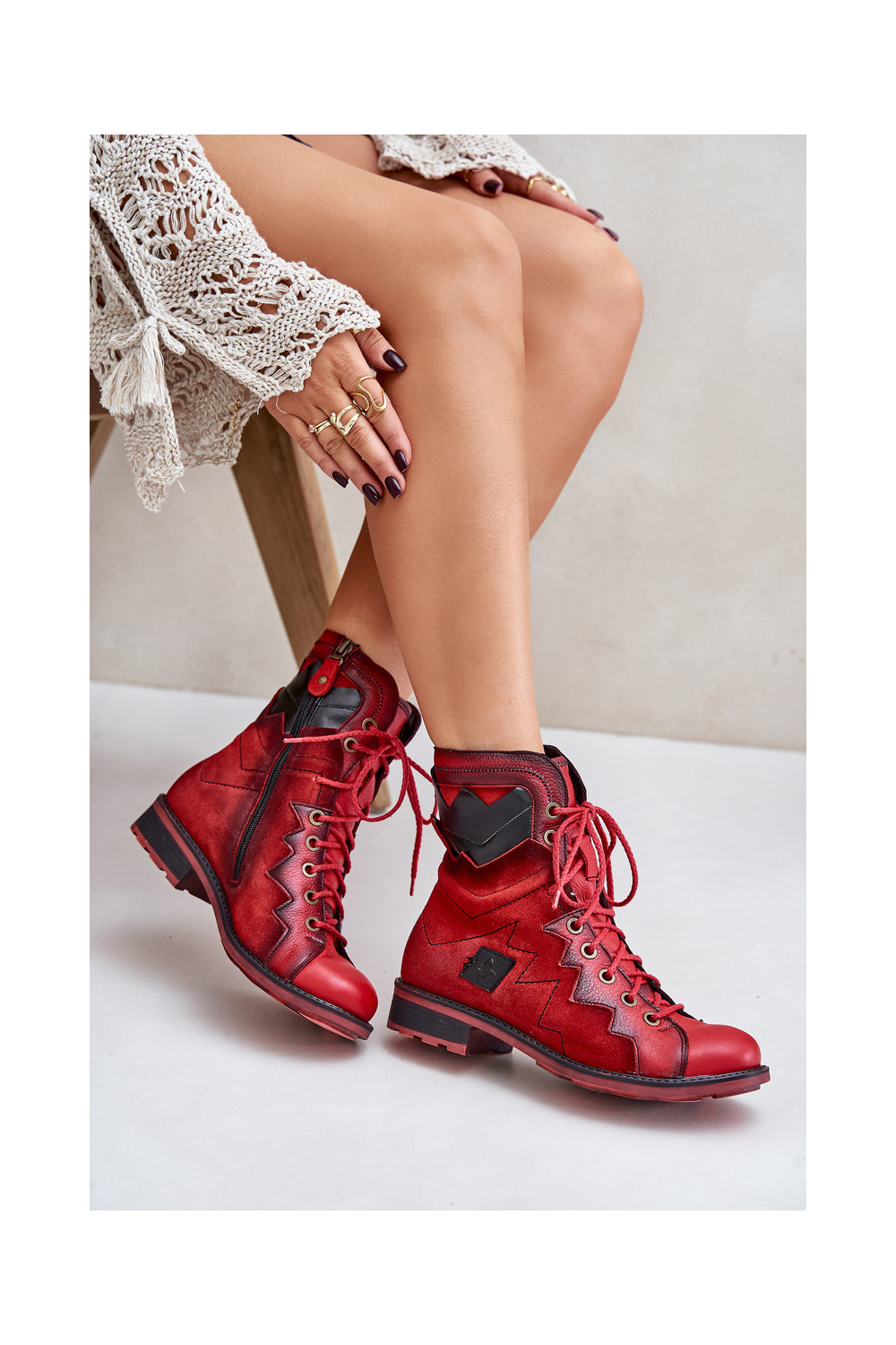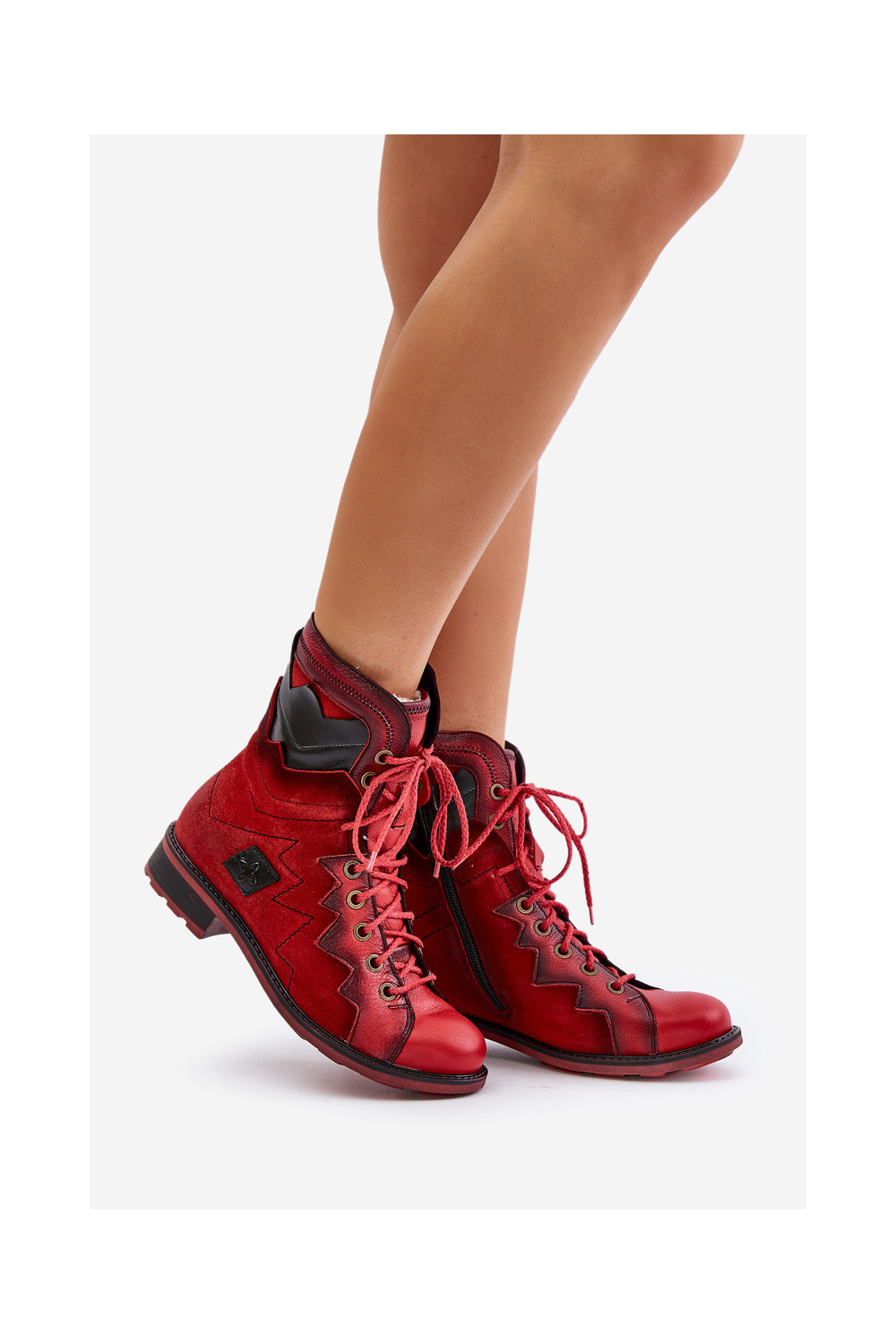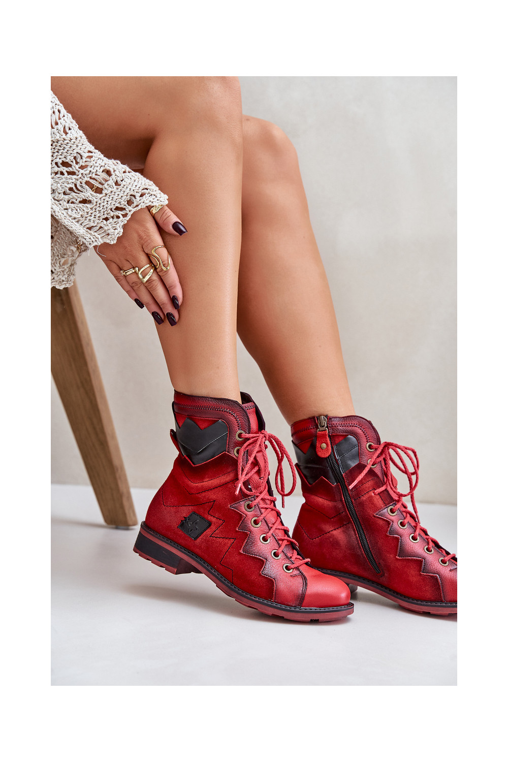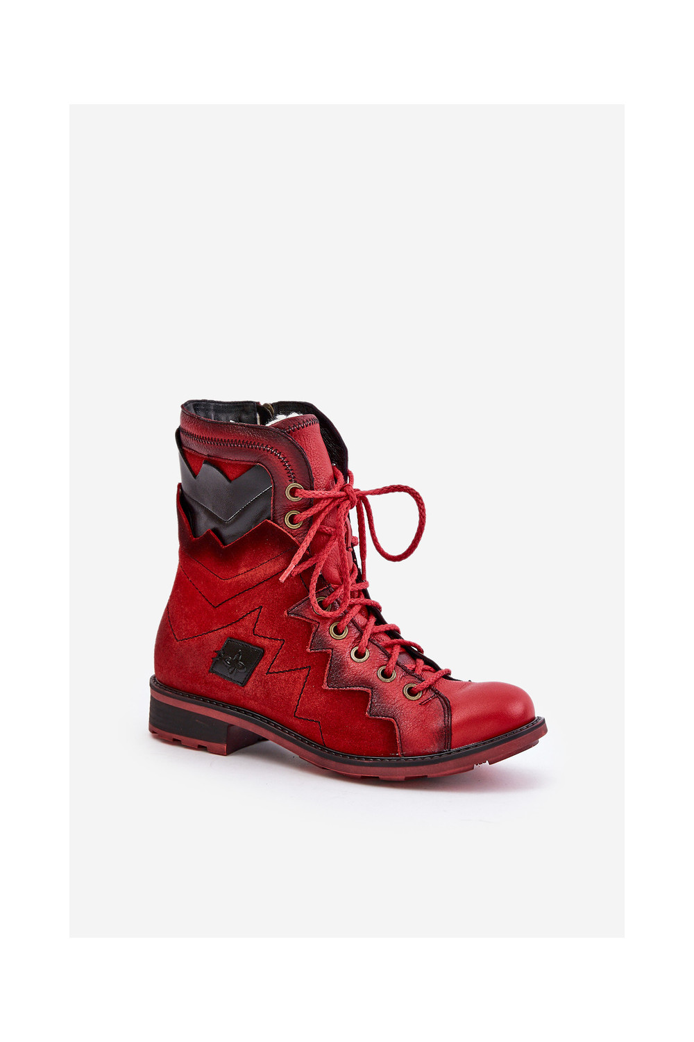 zateplené Dámské podpatky s širokými podpatky 06106-08 červené