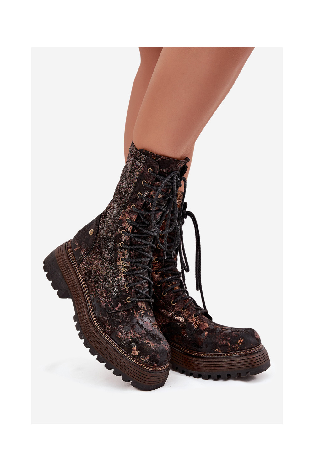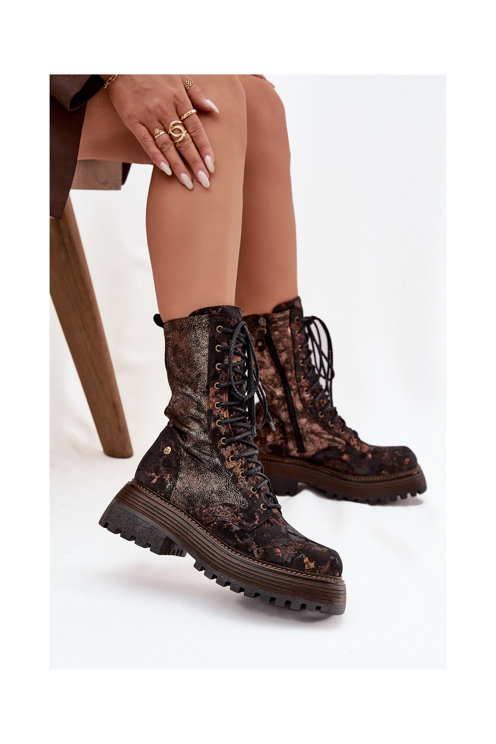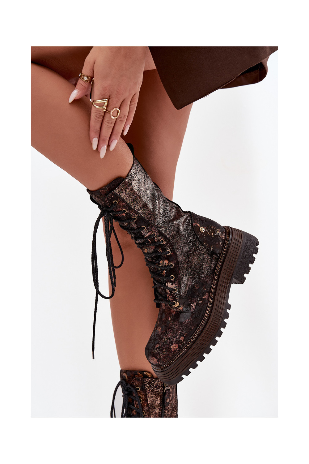 Dámské podpatky Dámské boty 06203-32 hnědá-zlaté barvy