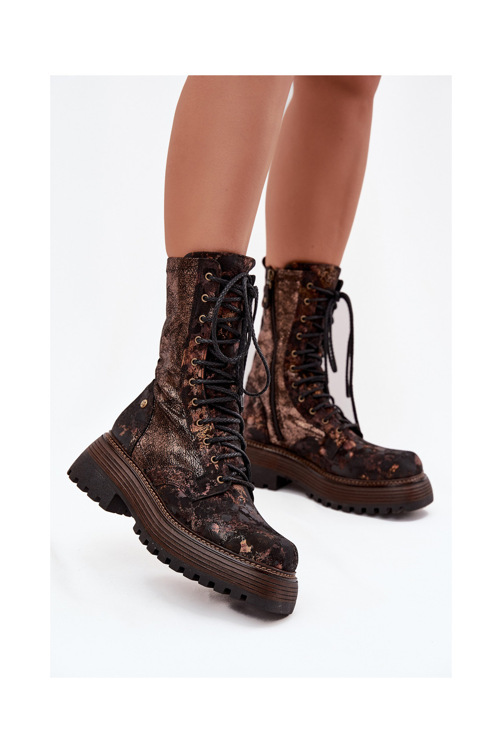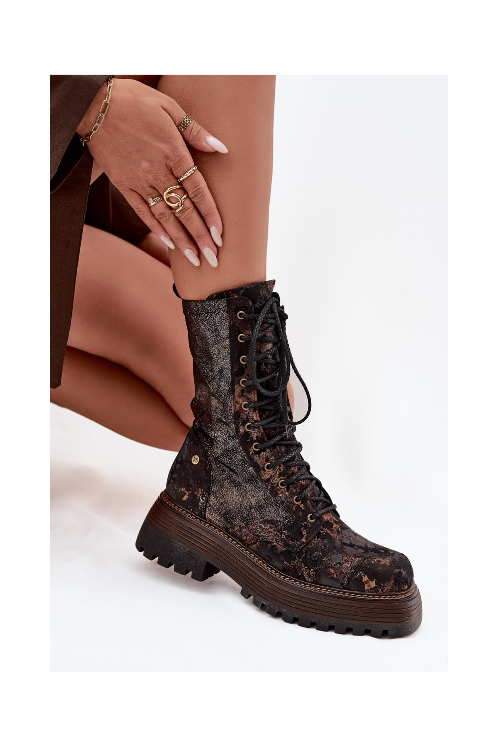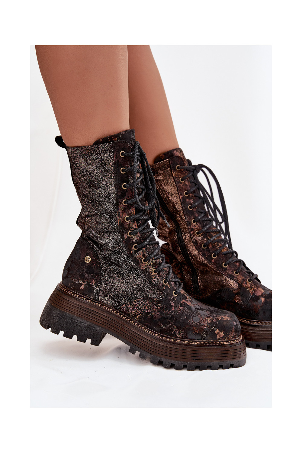 Dámské podpatky Dámské boty 06203-32 hnědá-zlaté barvy