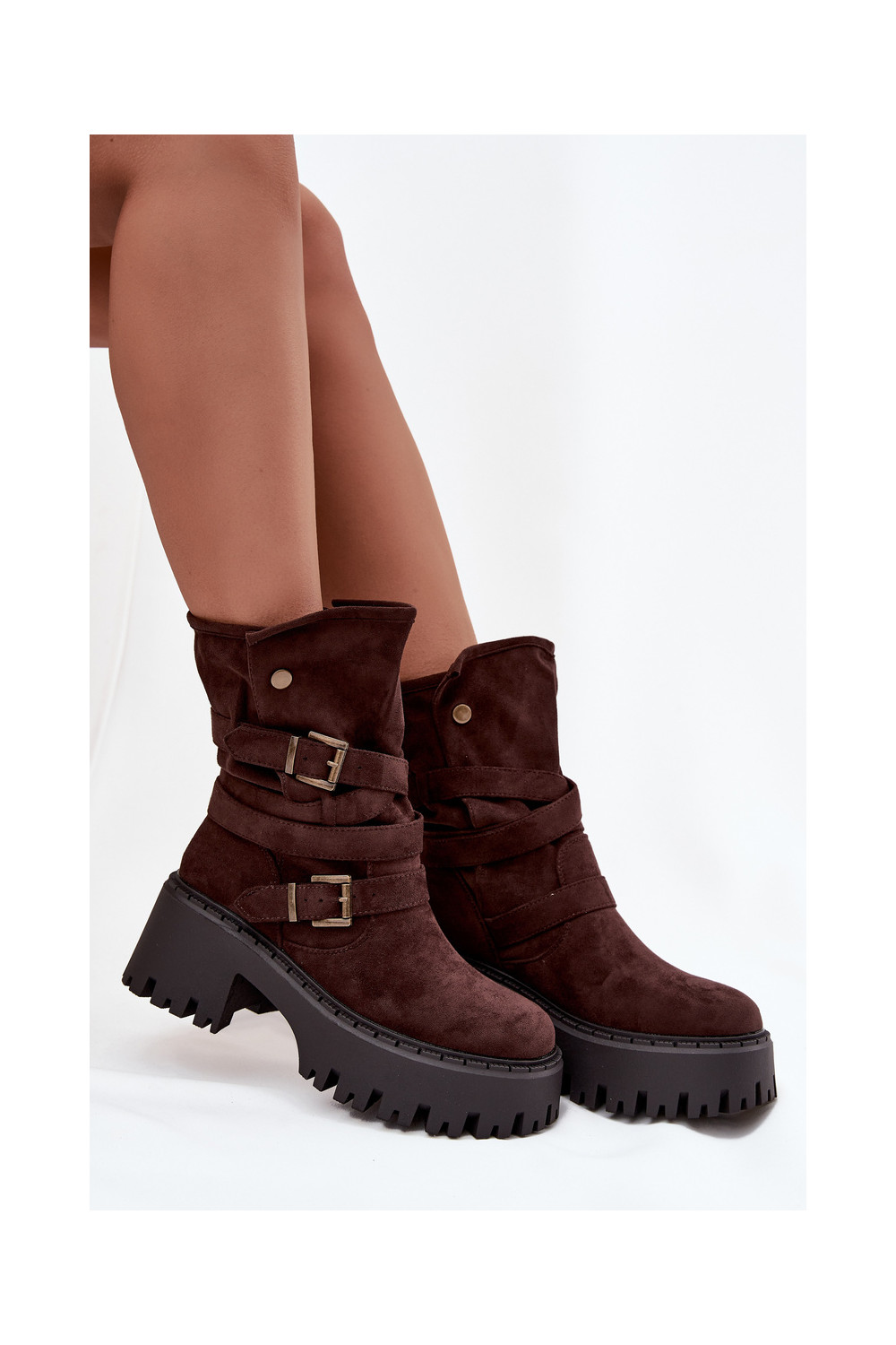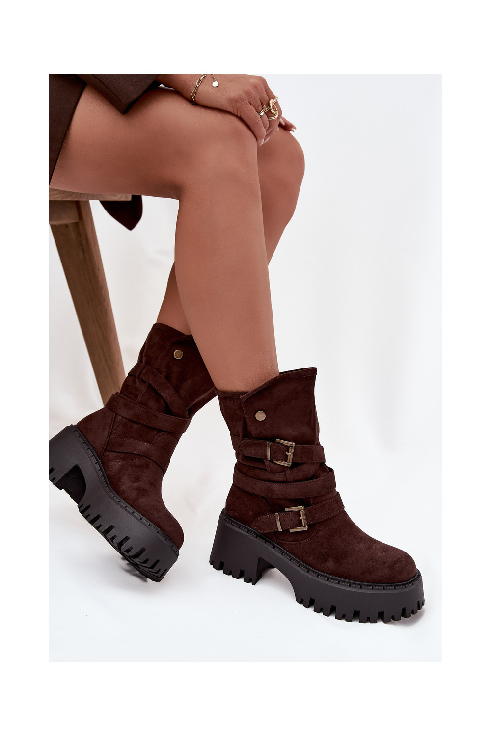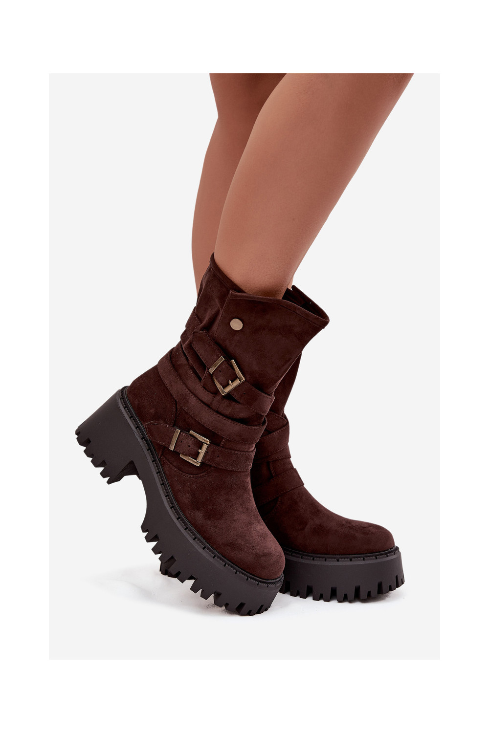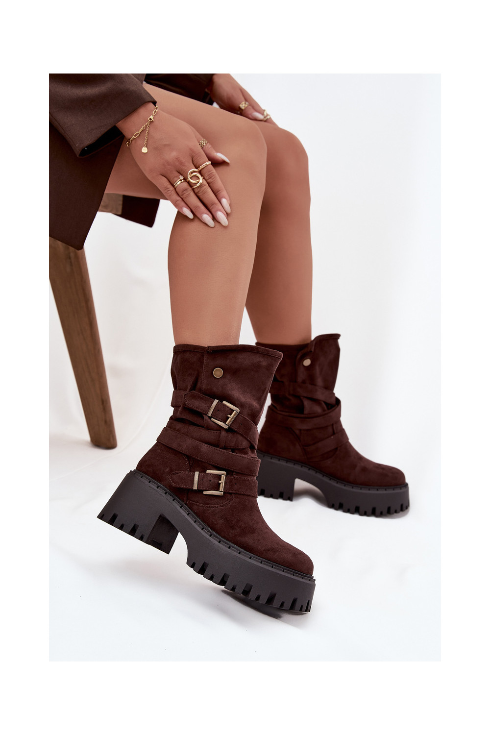 Dámské podpatky se širokým podpatkem s přezkami I em Czekoladowe Nerelisa
