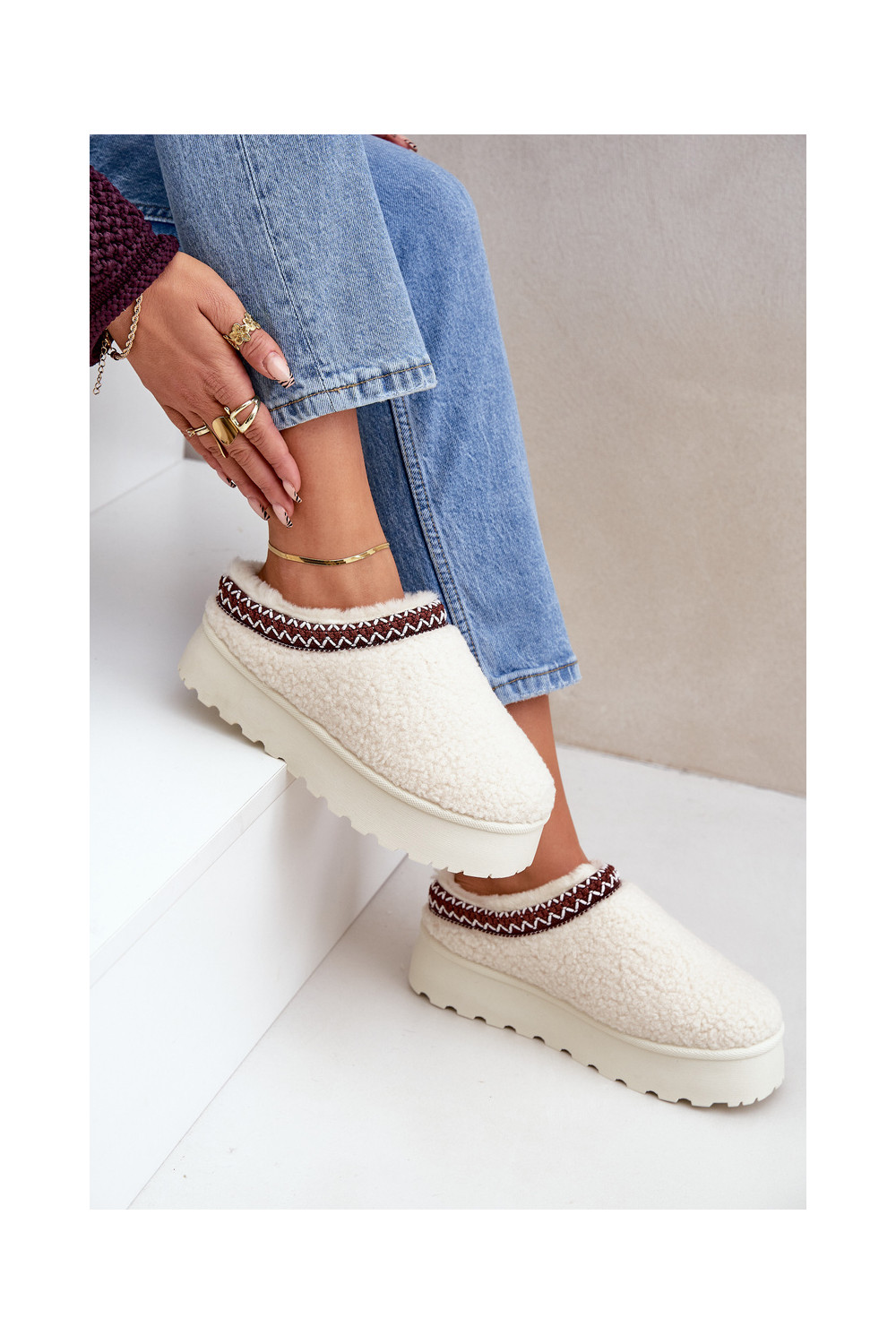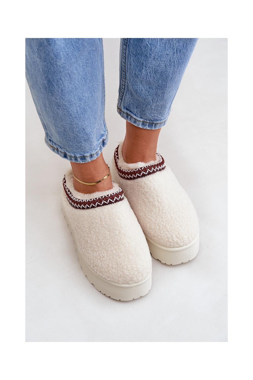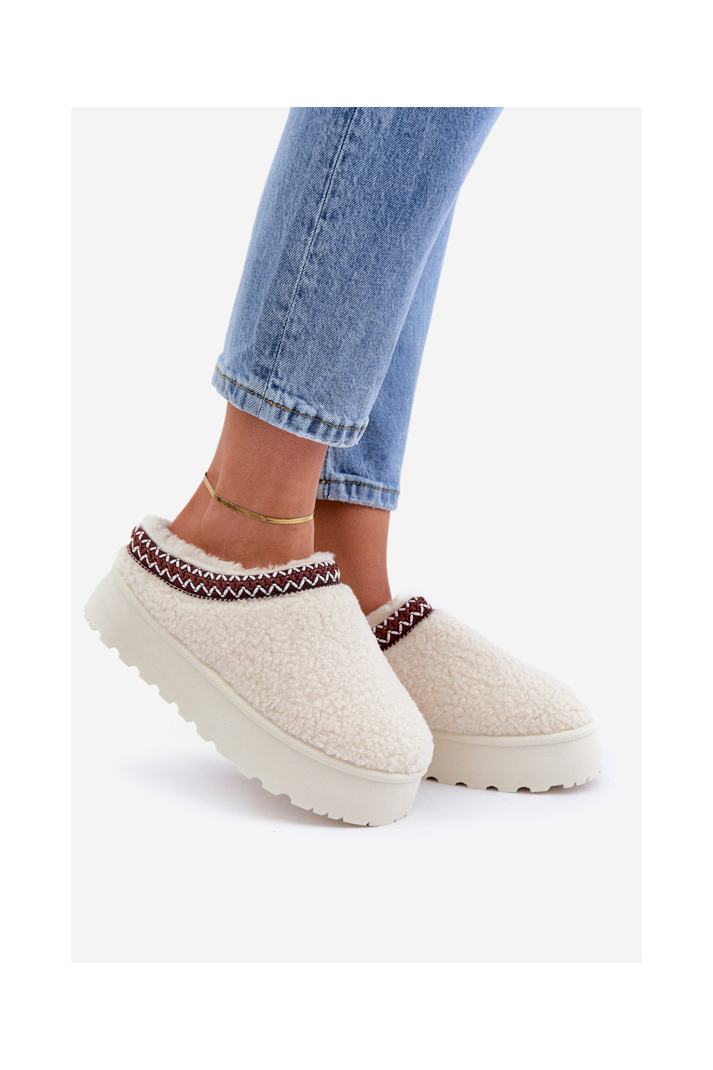 Sněhule Pantofle s platformou s kožešinou Typu Baranek slonová kost Ovirissa