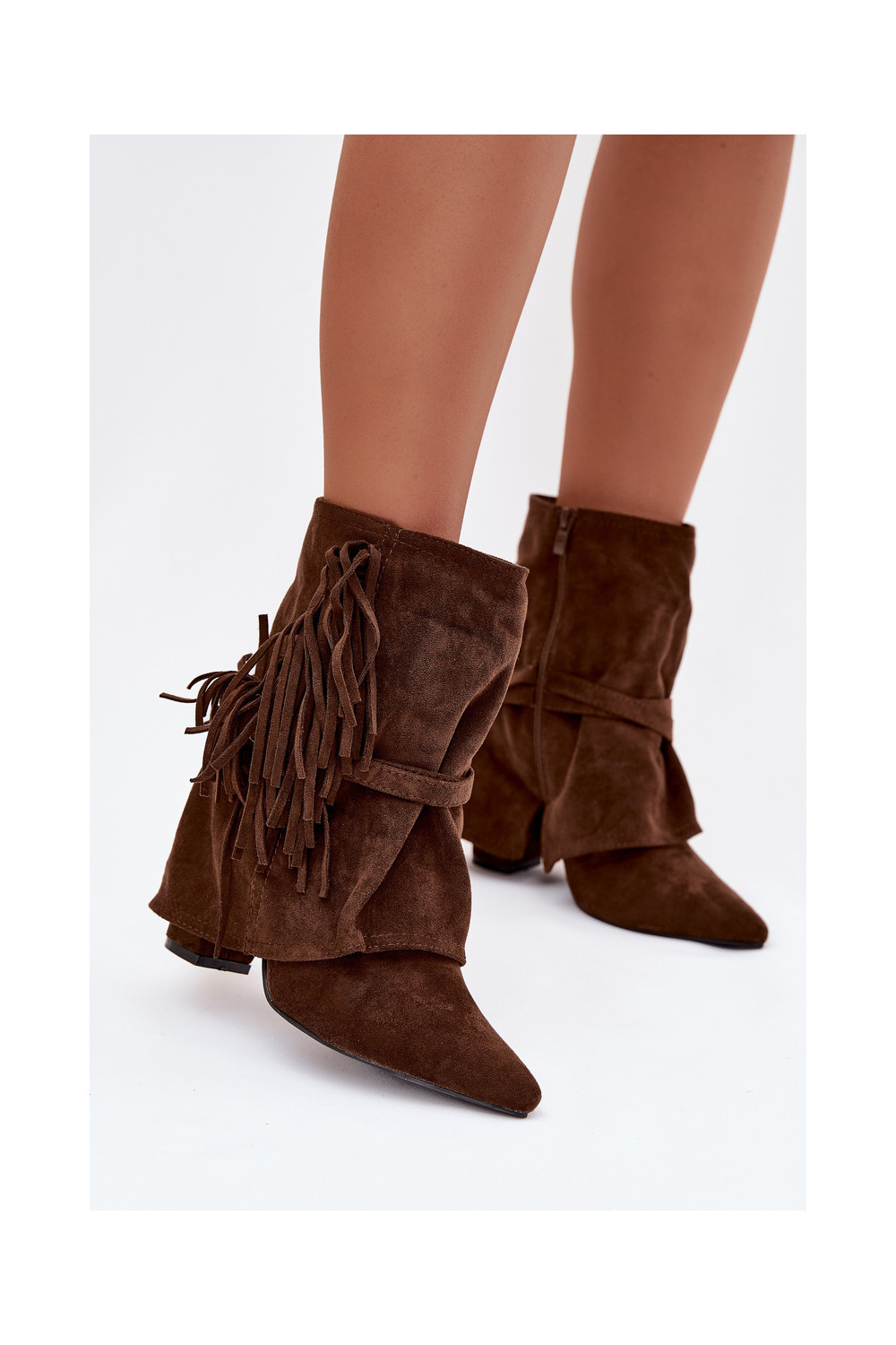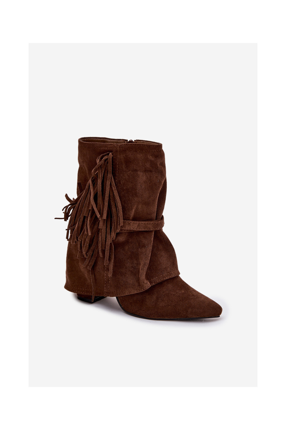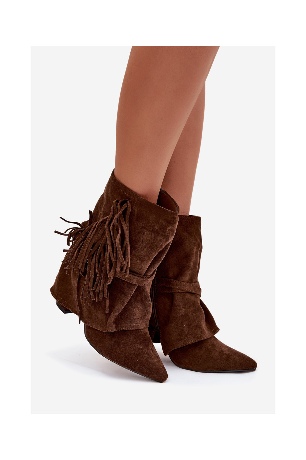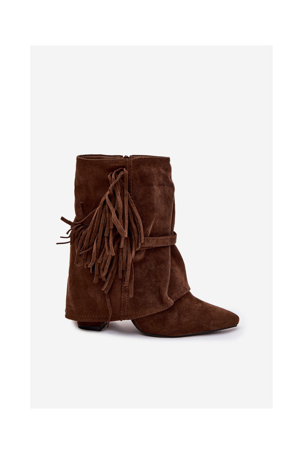 Dámské podpatky se střapci I zlaté barvymi s přezkamimi hnědá Evelisse