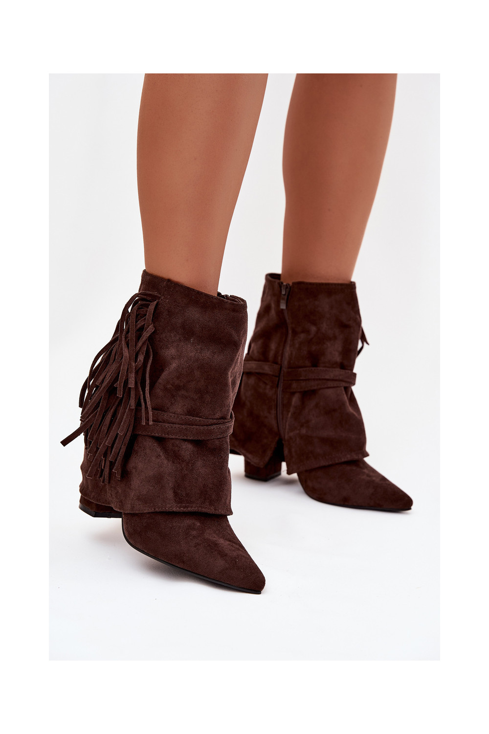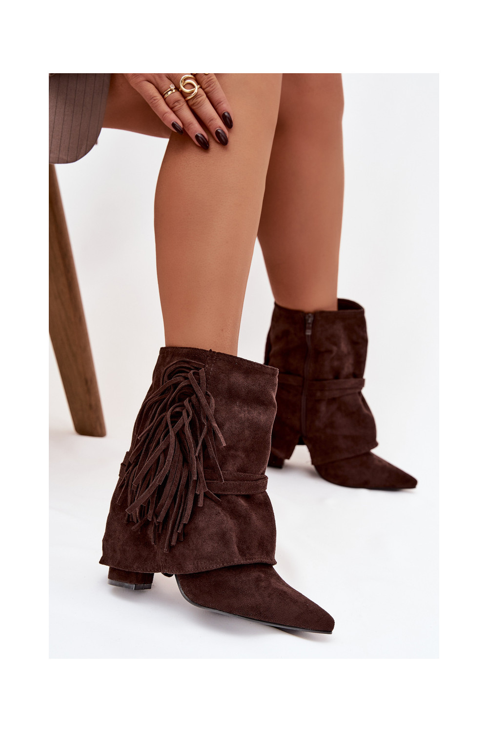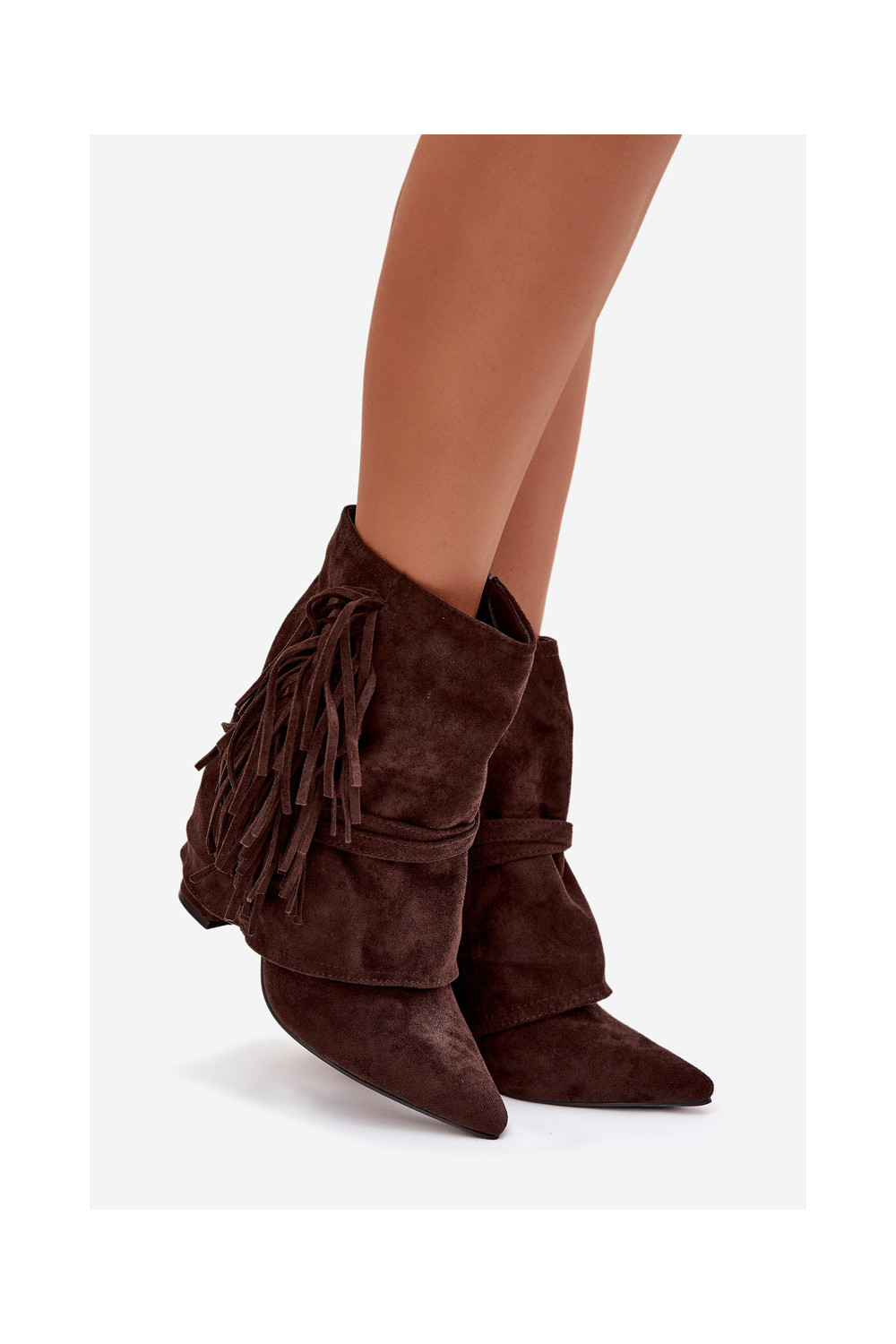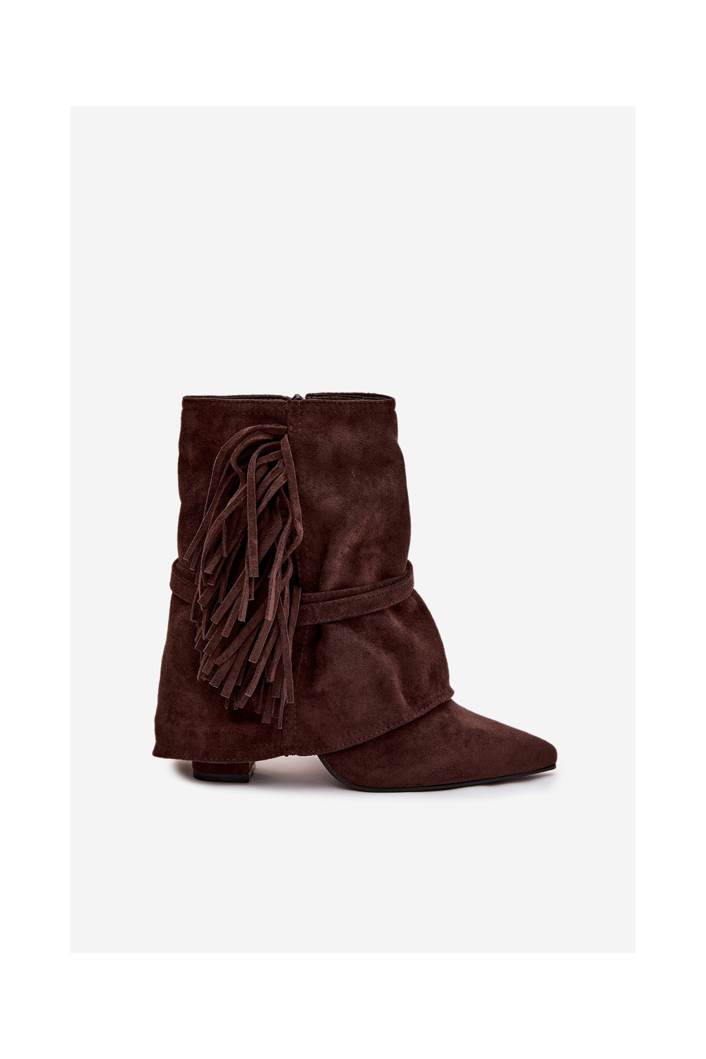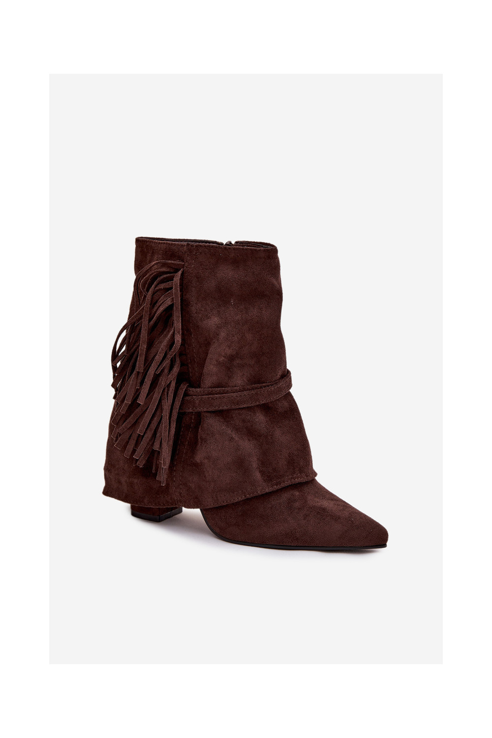 Dámské podpatky se střapci I zlaté barvymi s přezkamimi Czekoladowe Evelisse