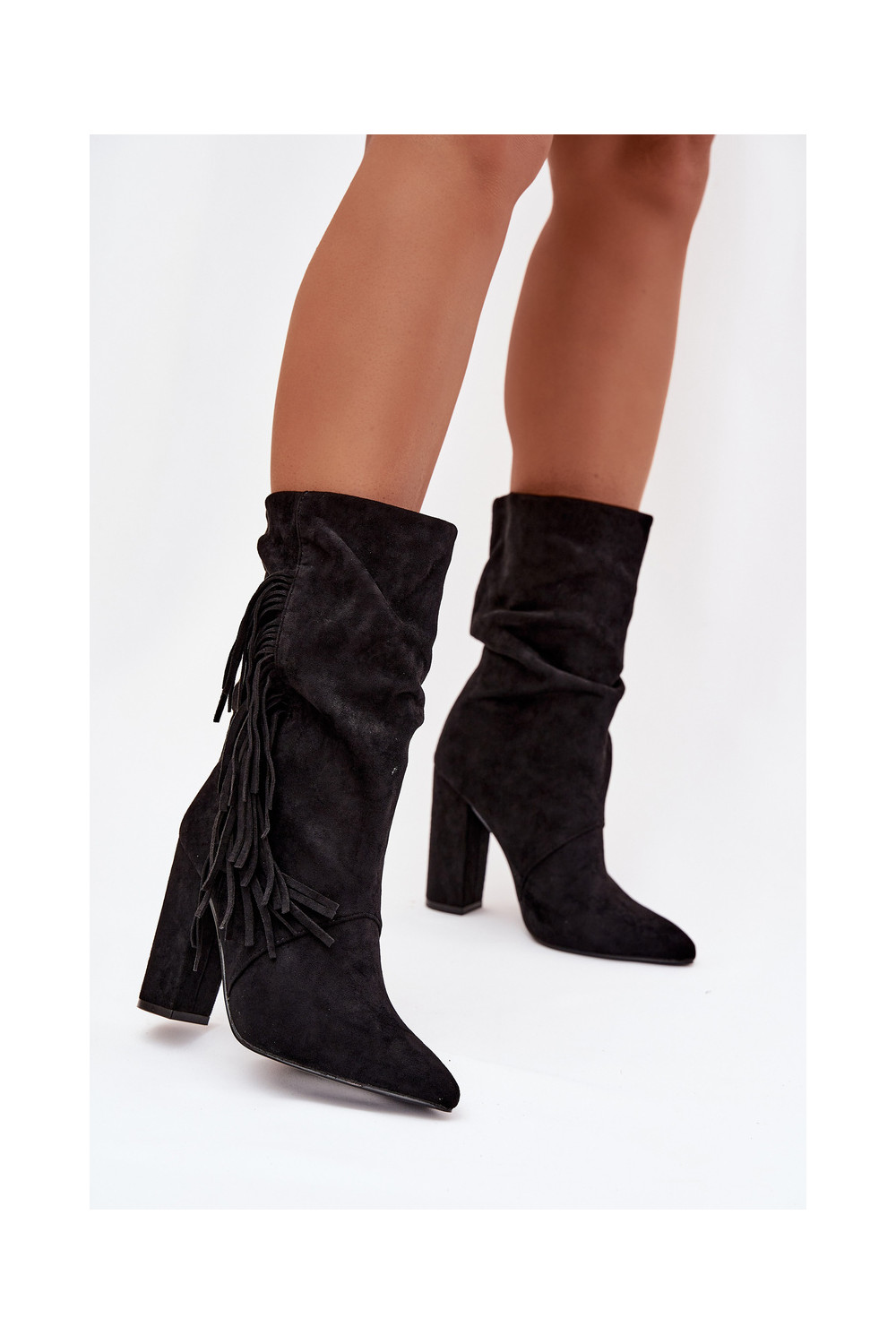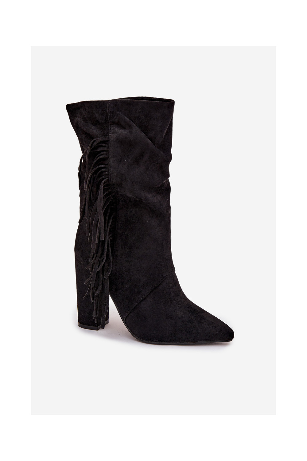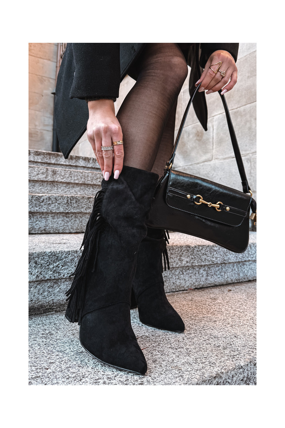 Dámské podpatky se střapci I Marszczeniem zateplené Černé Darlina