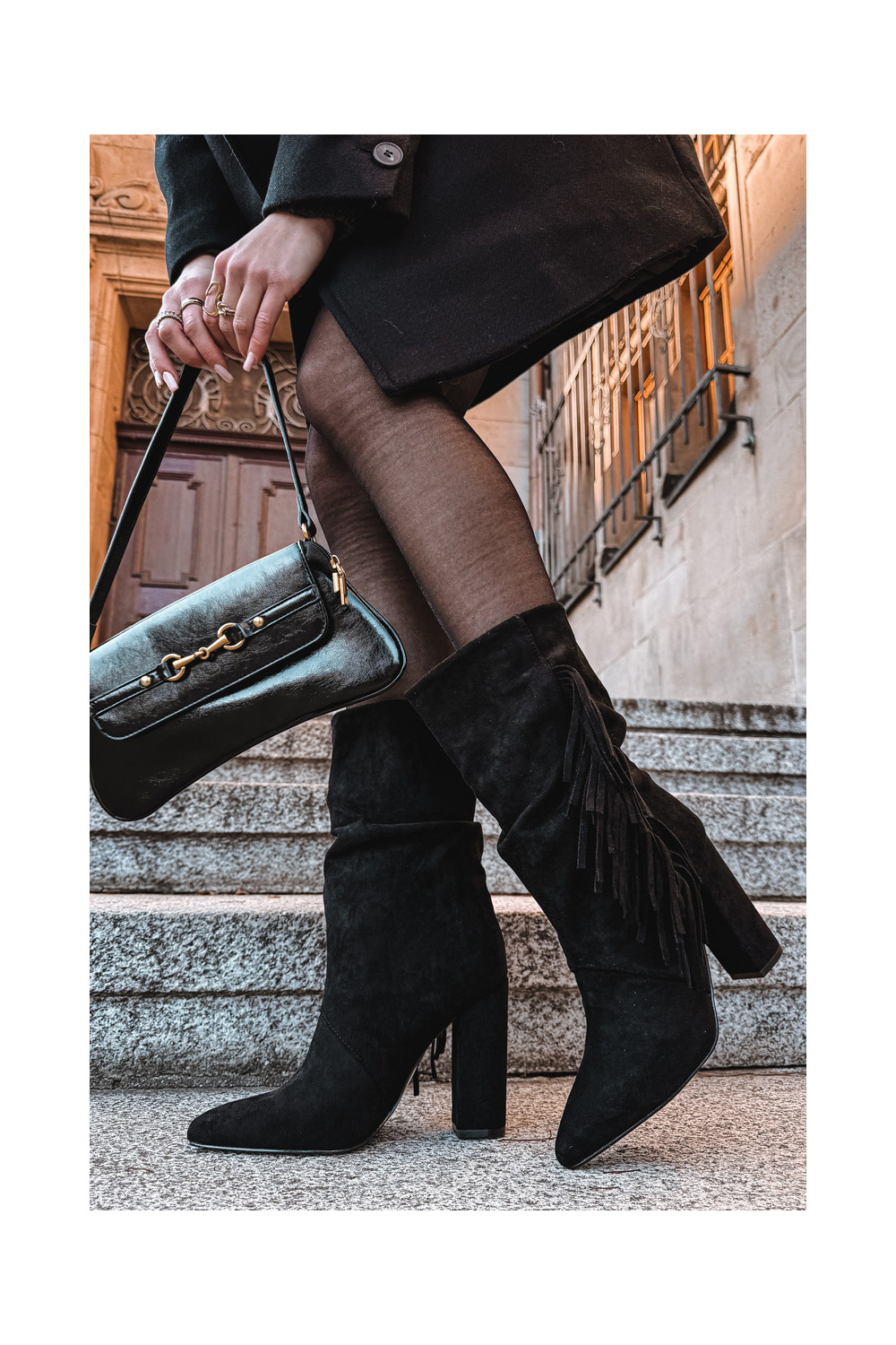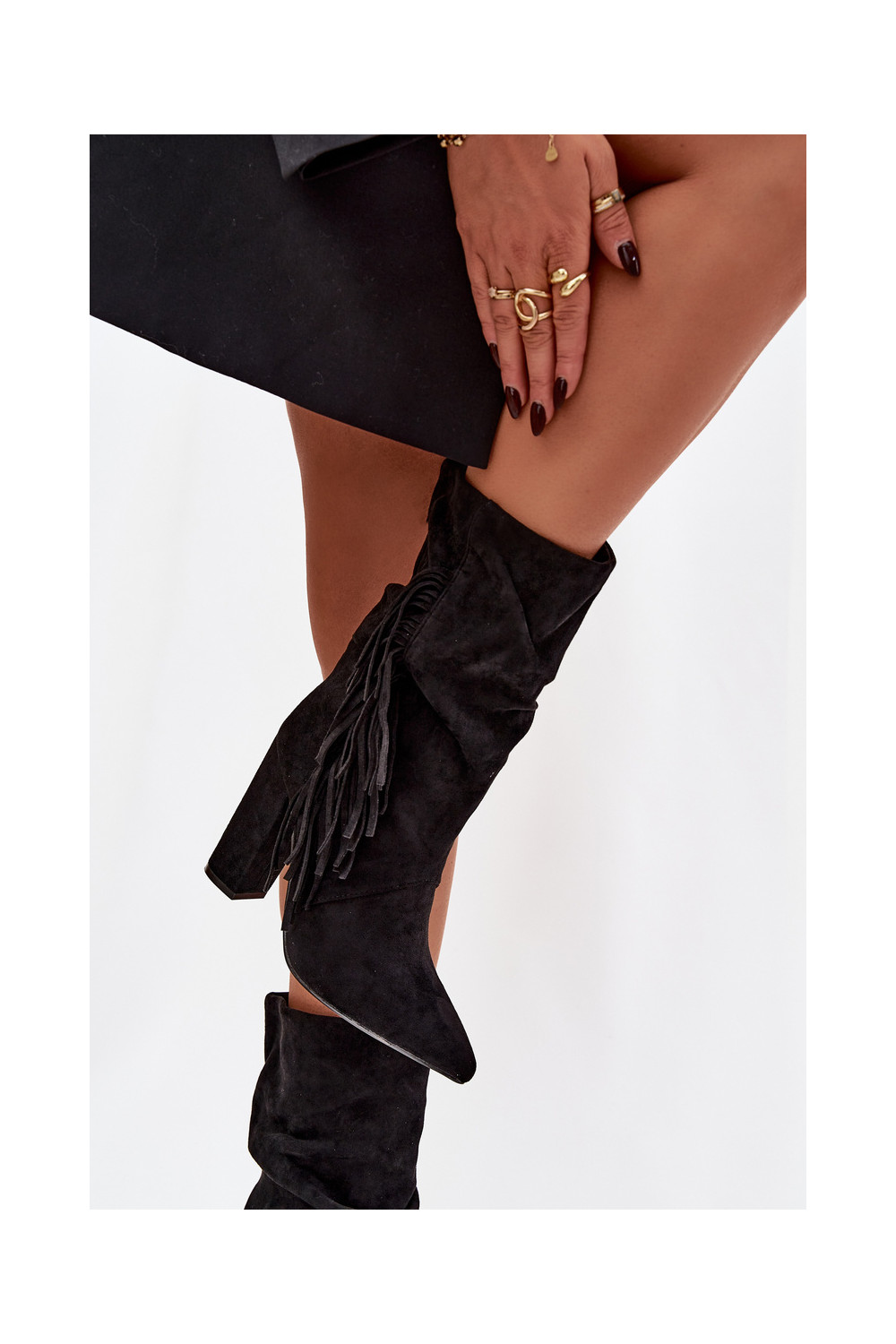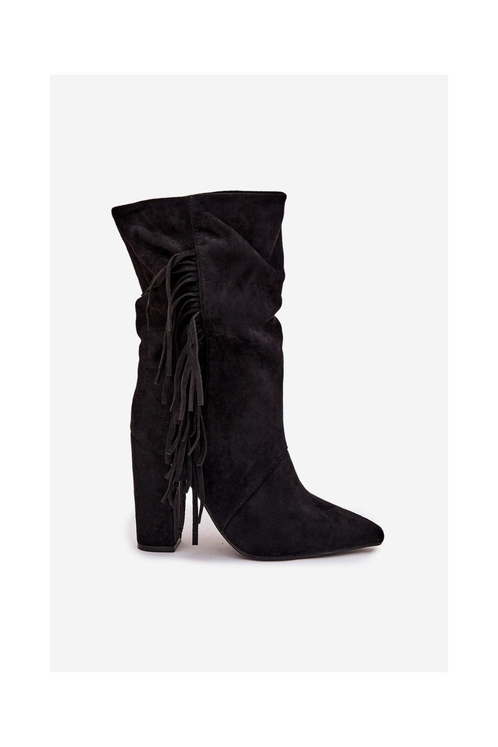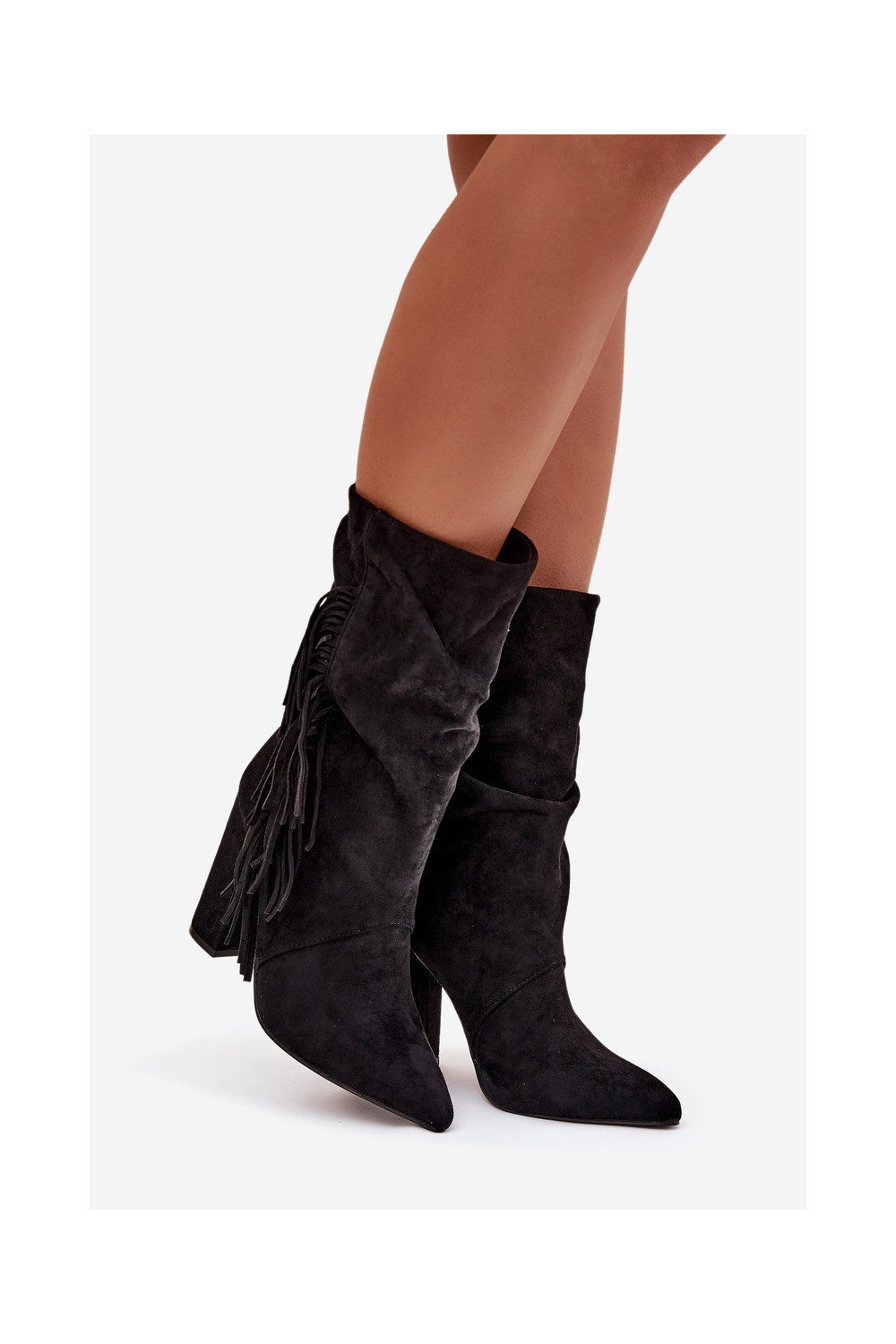 Dámské podpatky se střapci I Marszczeniem zateplené Černé Darlina