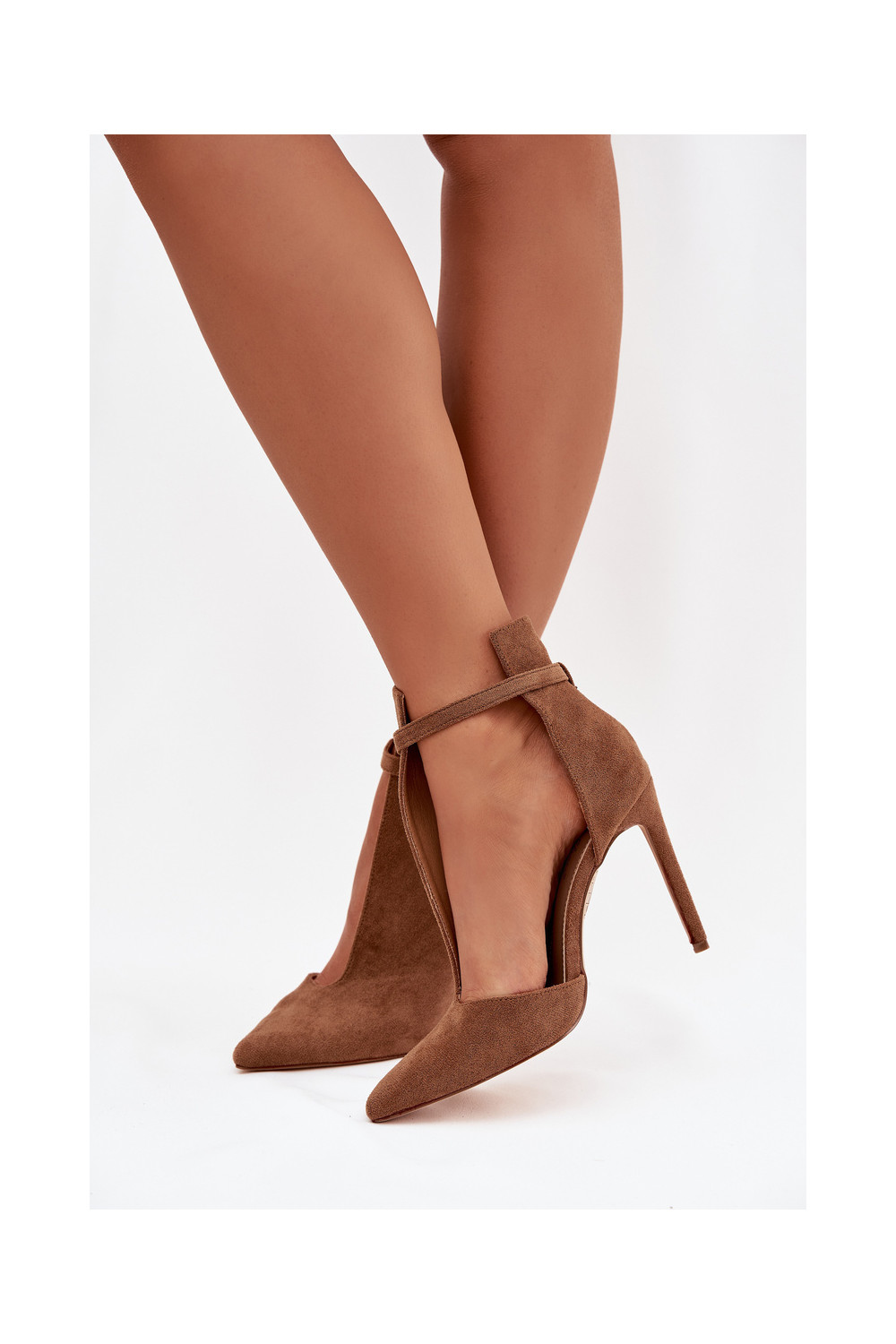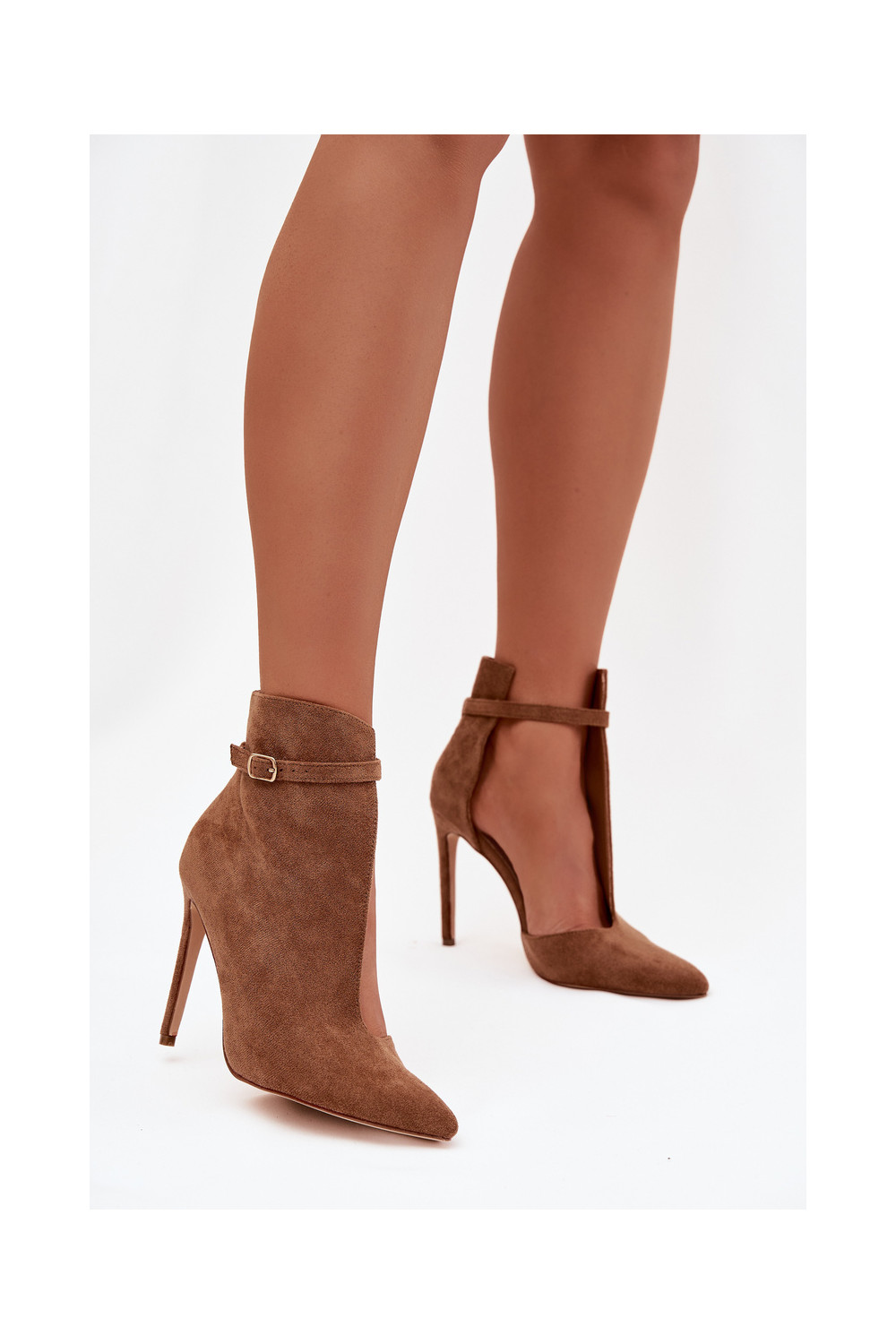 Dámské podpatky s tenkými podpatky Z z eko semišeu béžové Amalundi