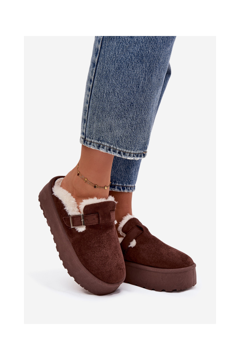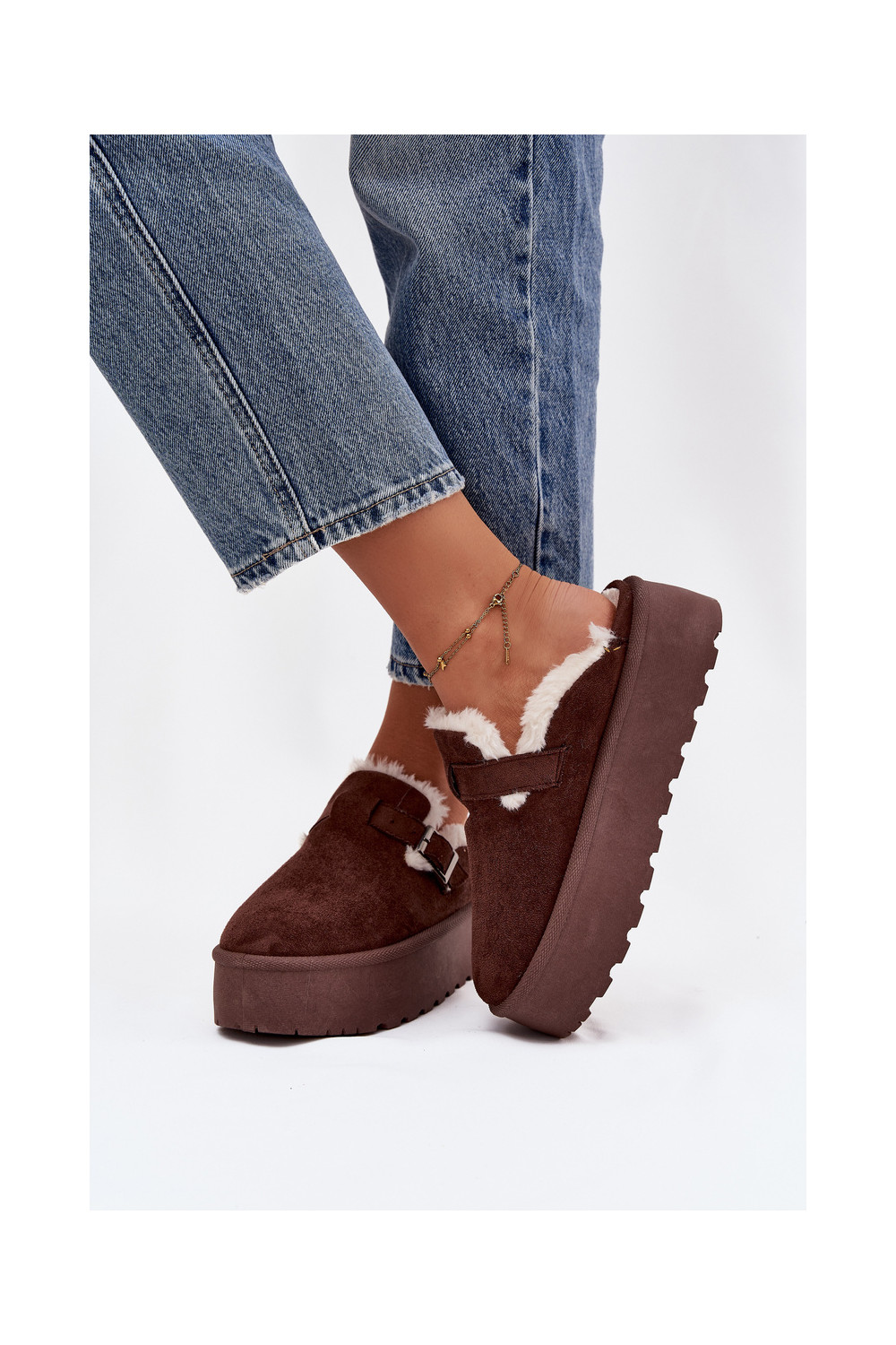 Sněhule s kožešinou I s přezkami s platformou Czekoladowe Jessina