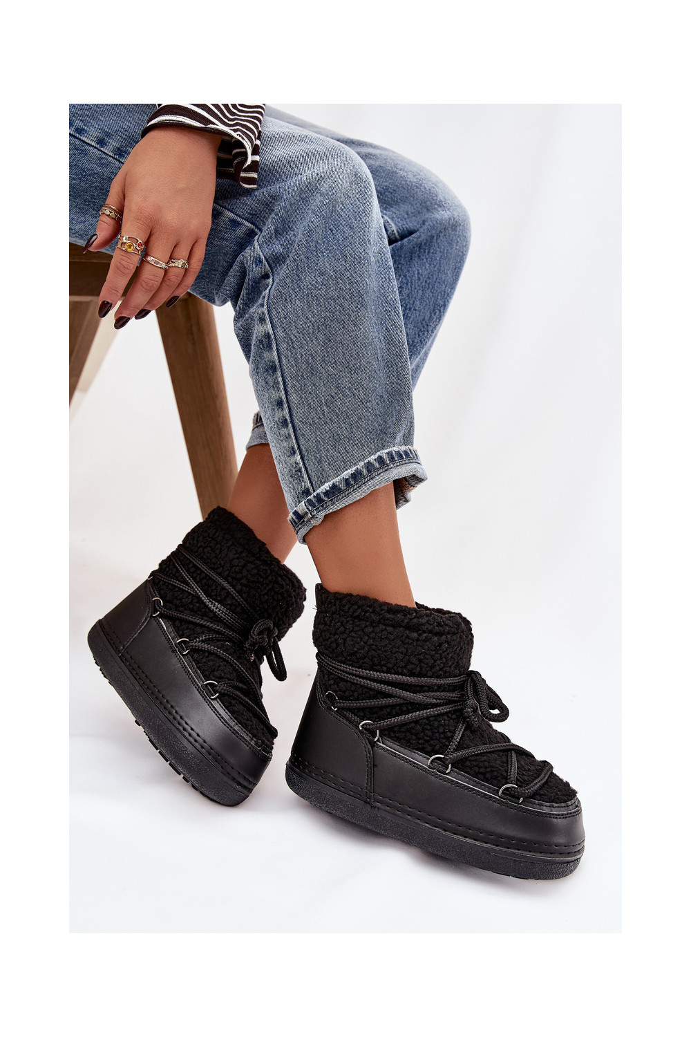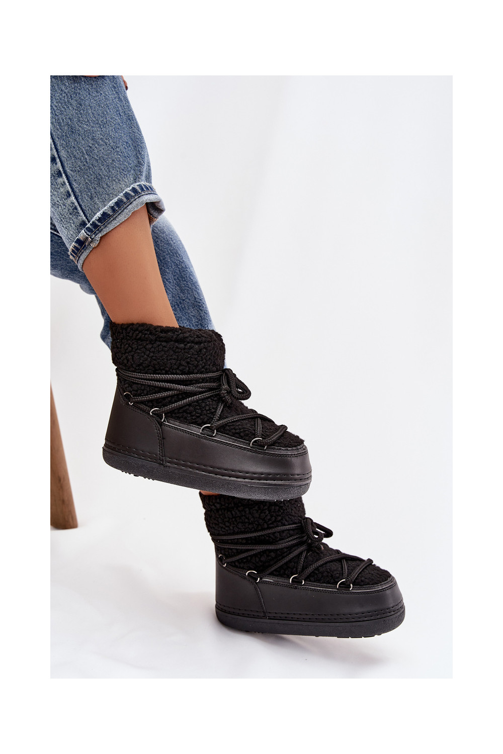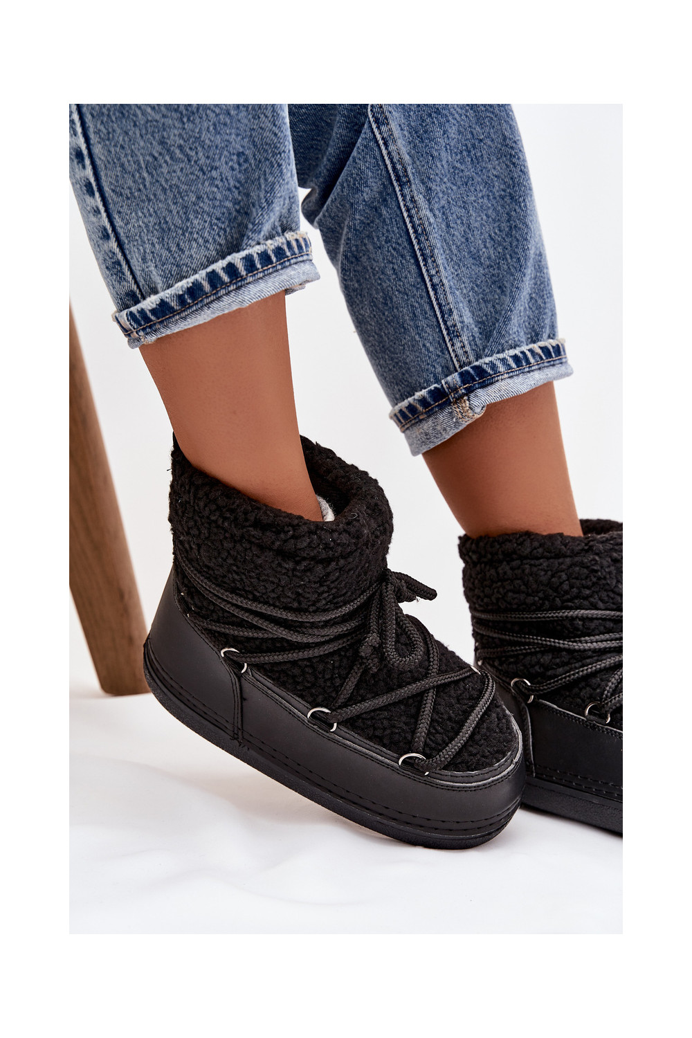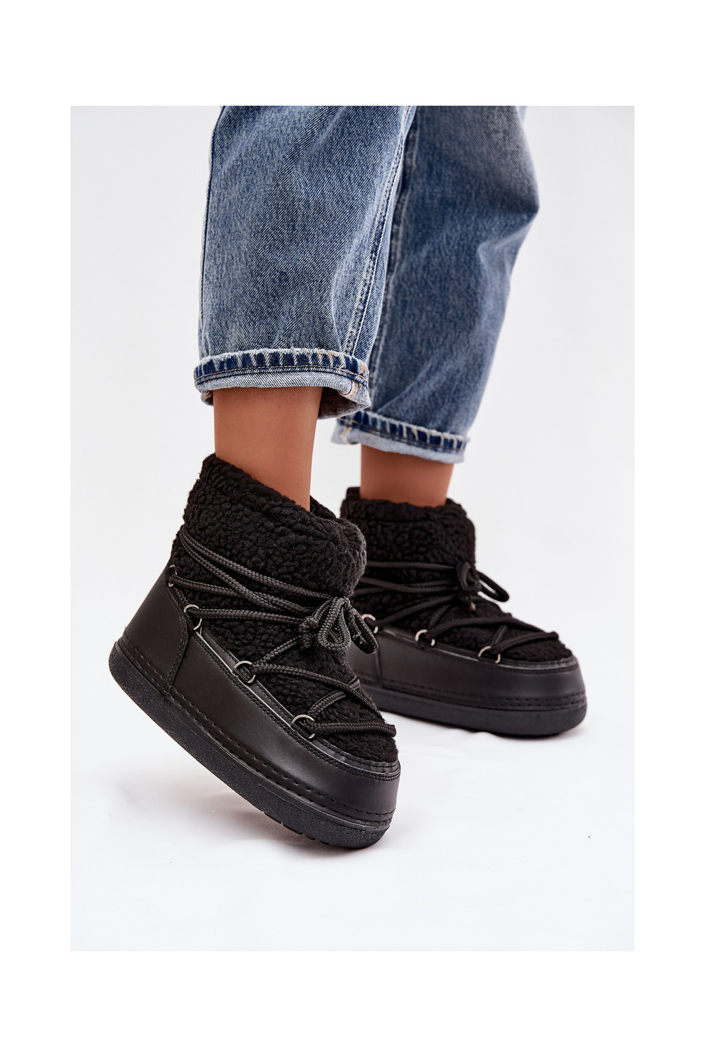 Sněhule s kožešinou Typu Baranek s popruhy Černé Belira
