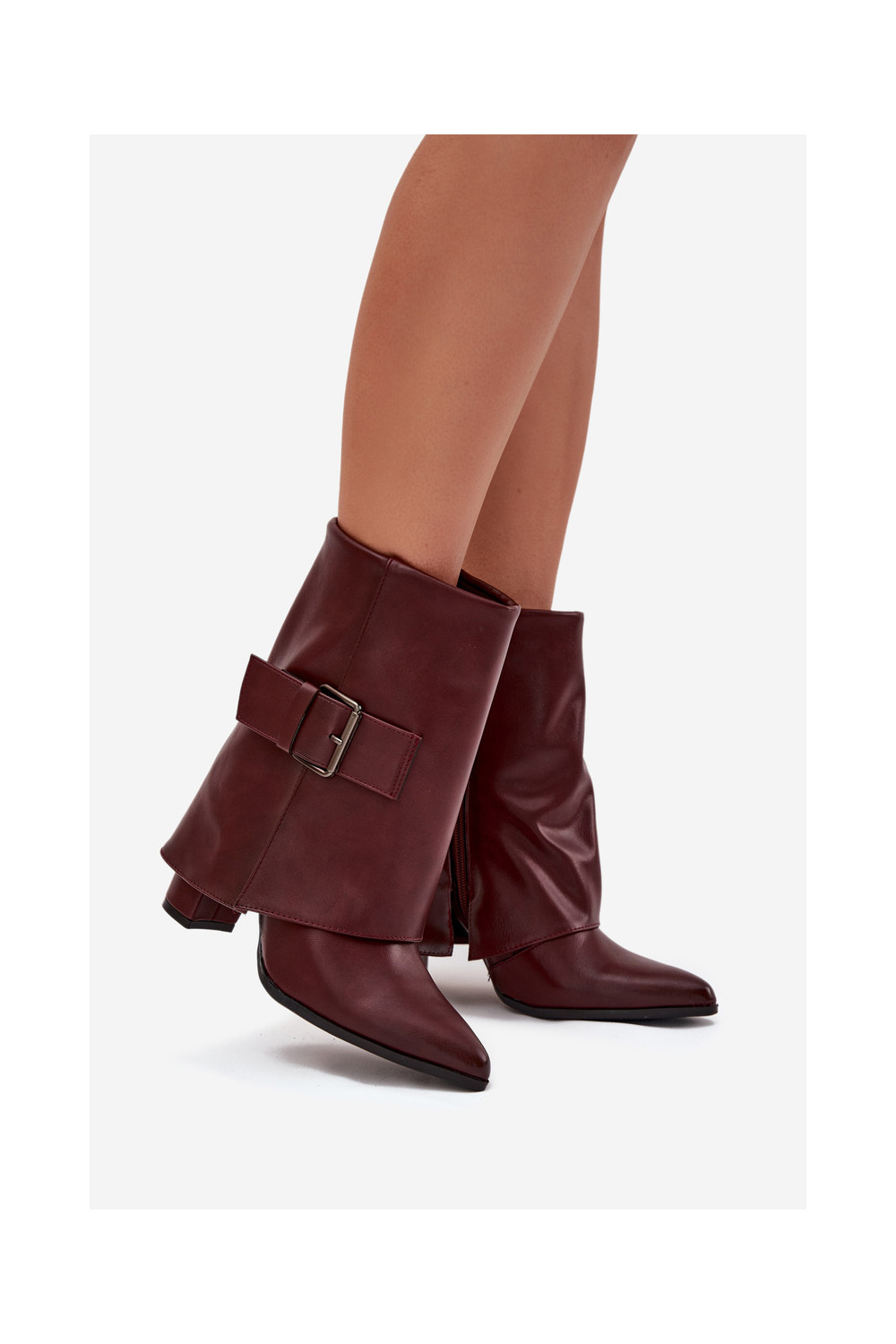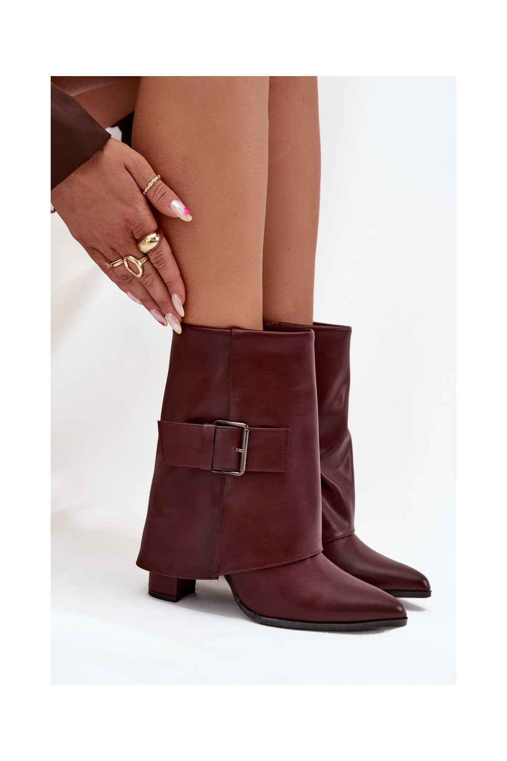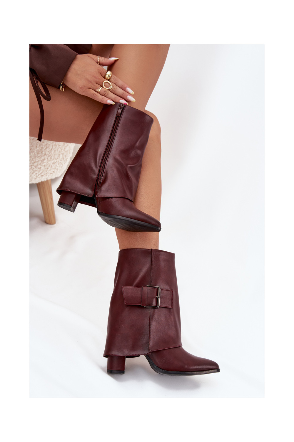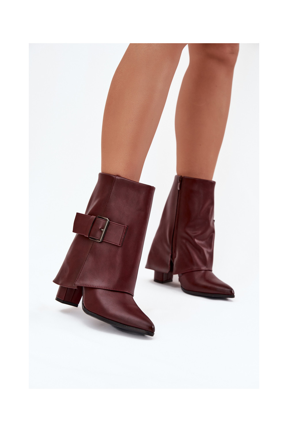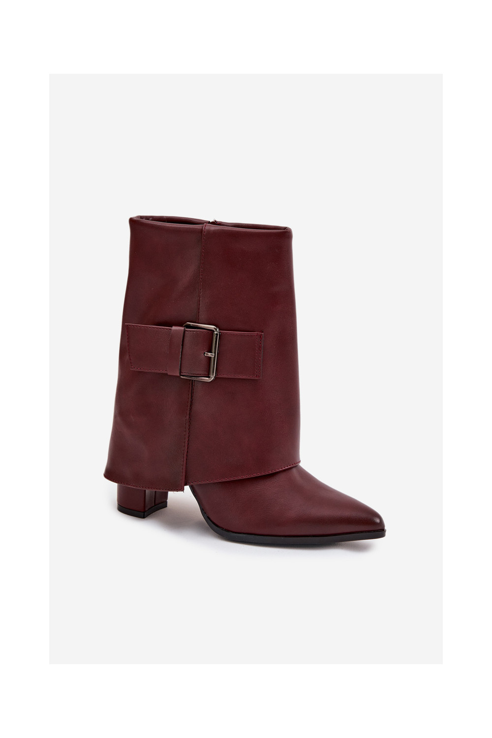 zateplené Dřeváky s podpatky Z Wywiniętą Cholewką I s přezkami vínová Ylenara