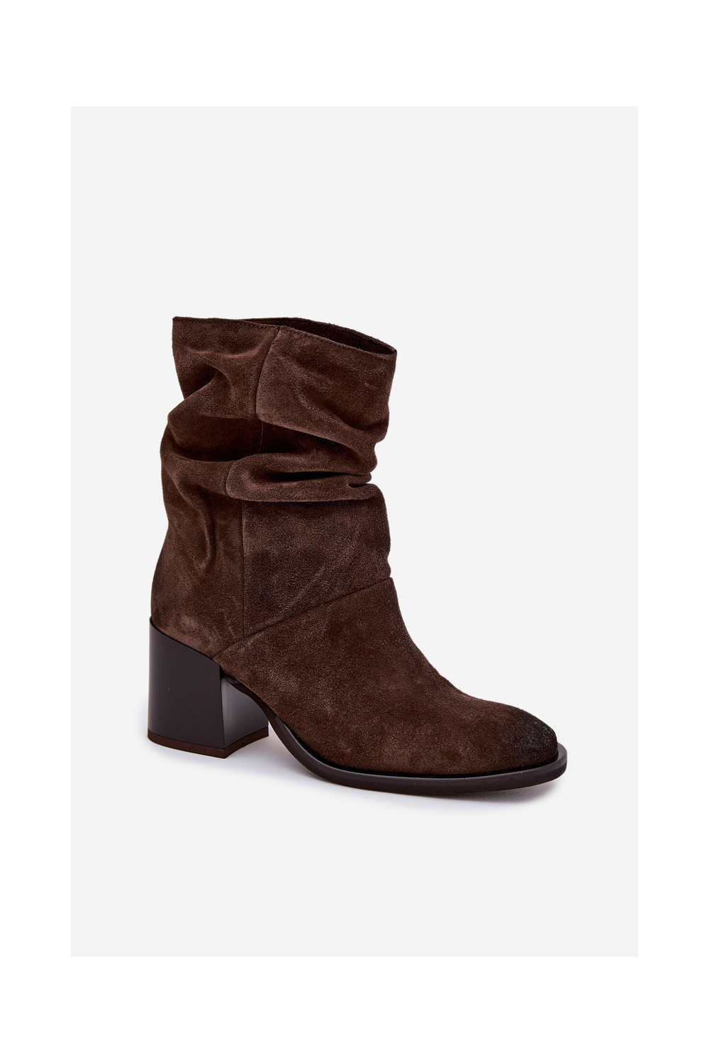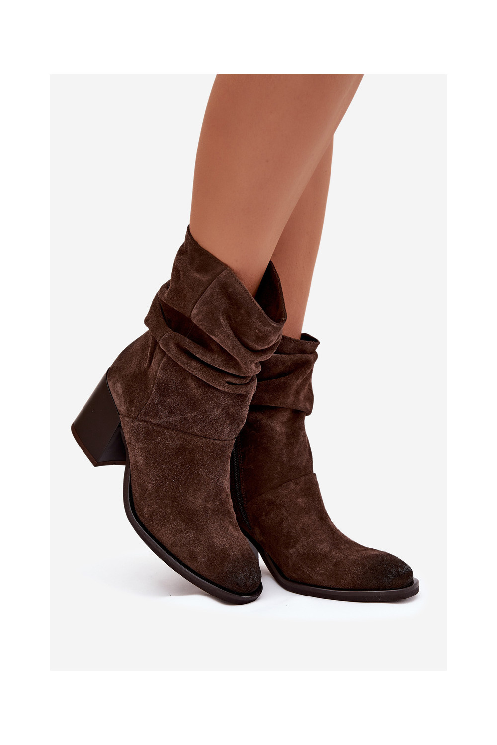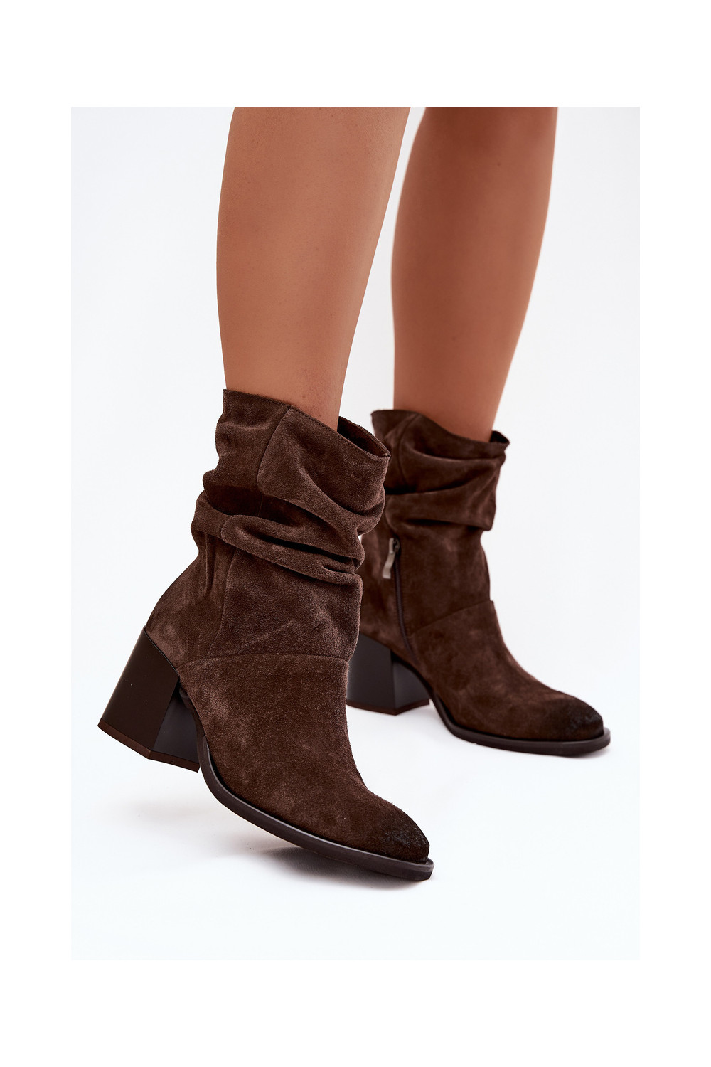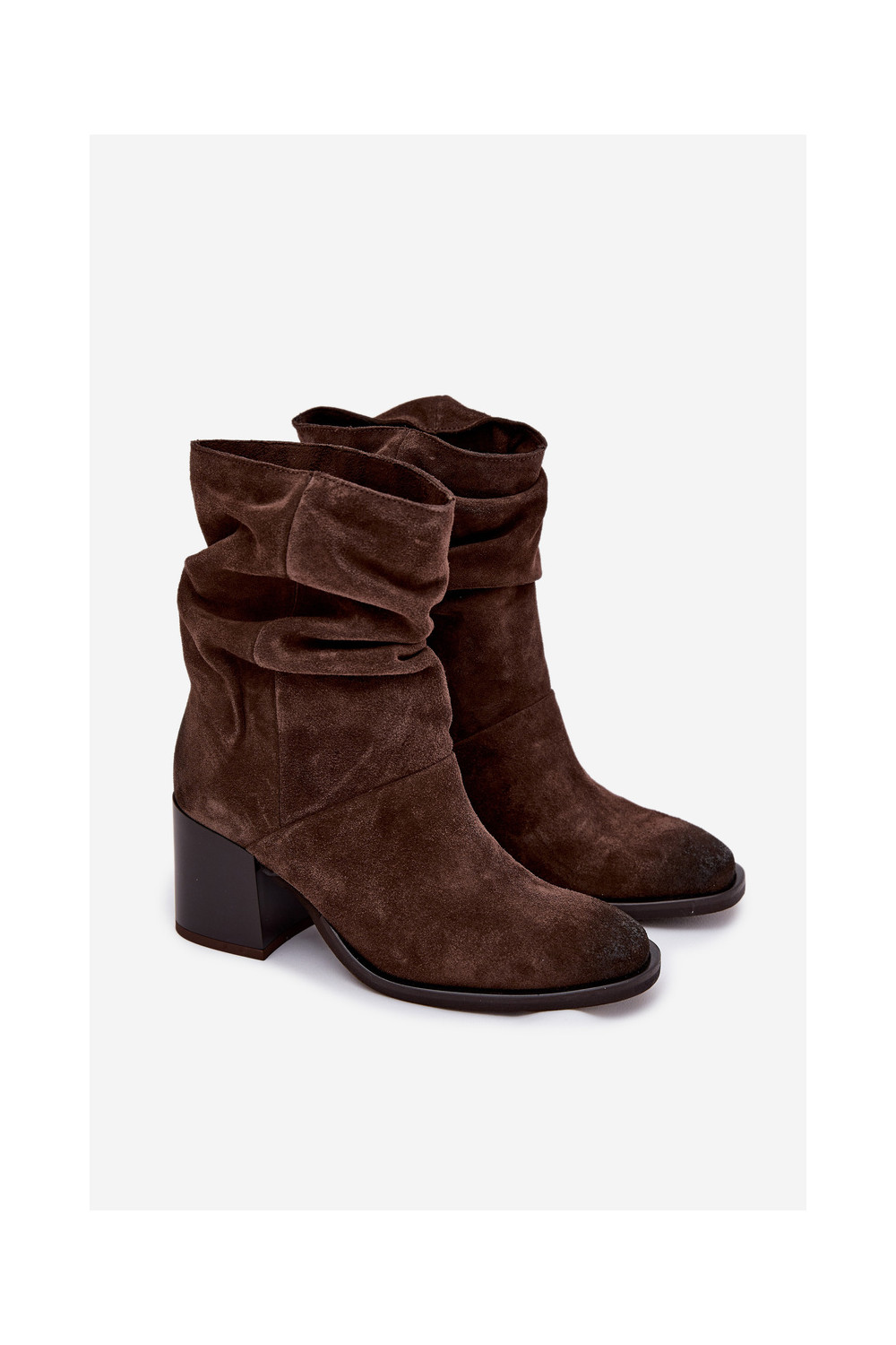 Semišové boty s podpatky Zazoo 1127 Czekoladowe