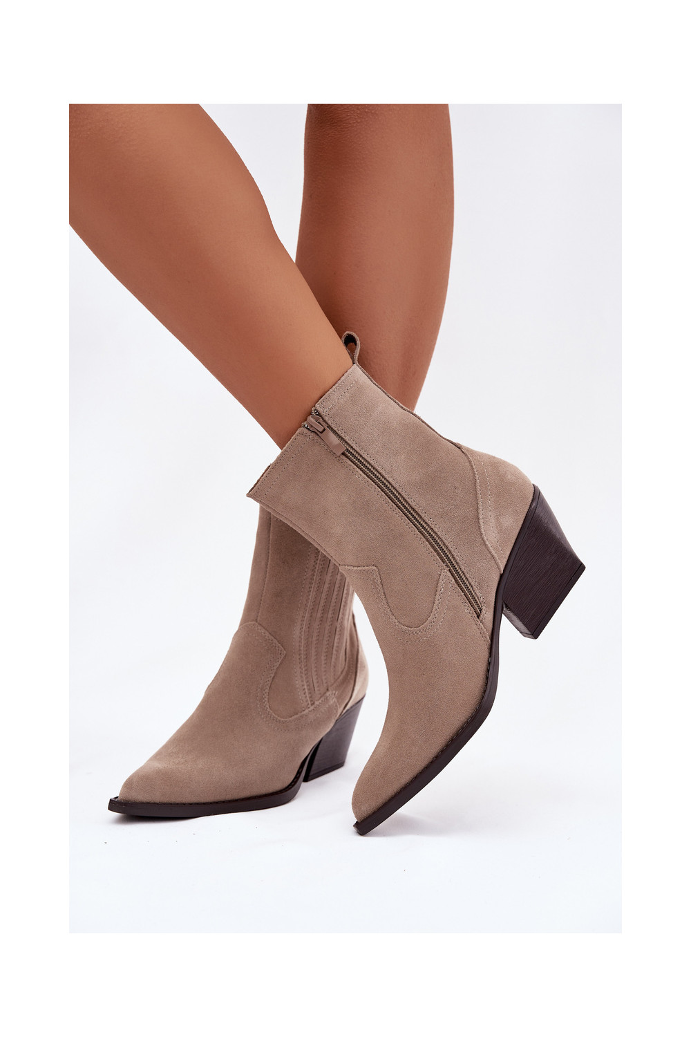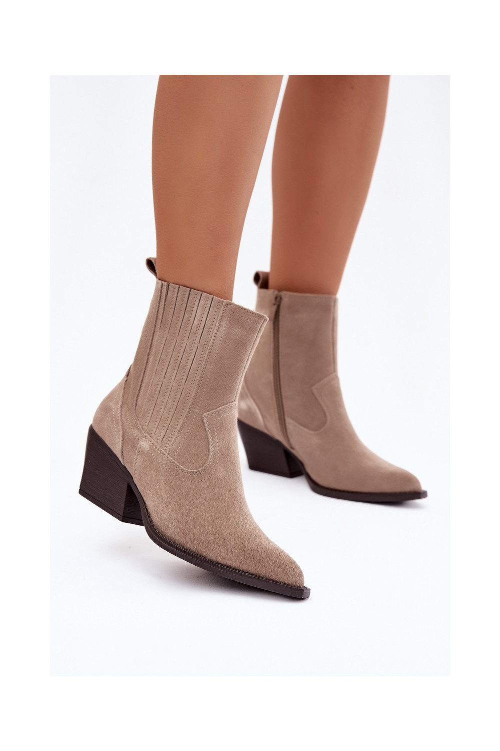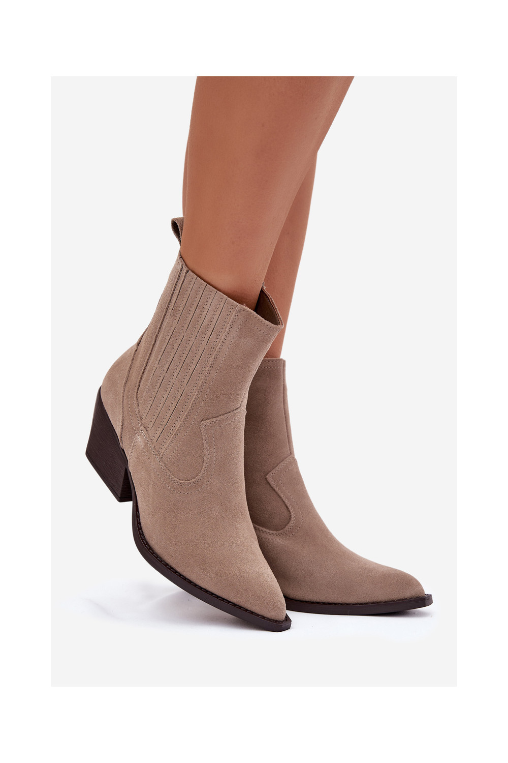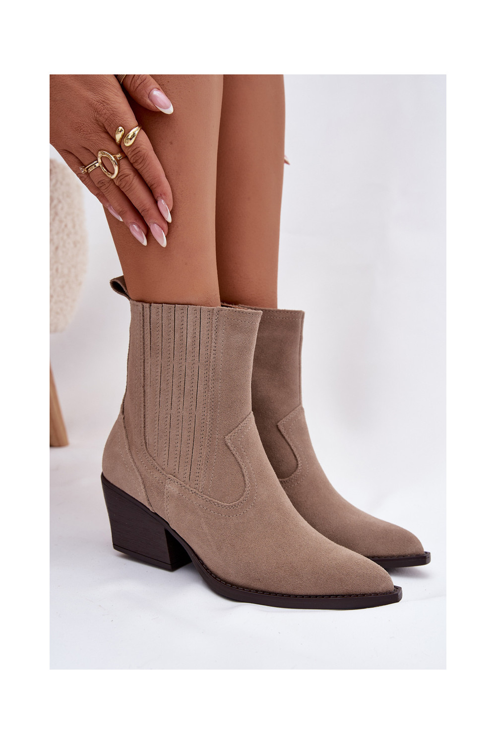 ze semiše Boty v kovbojském stylu s podpatky zateplené béžové Dylira