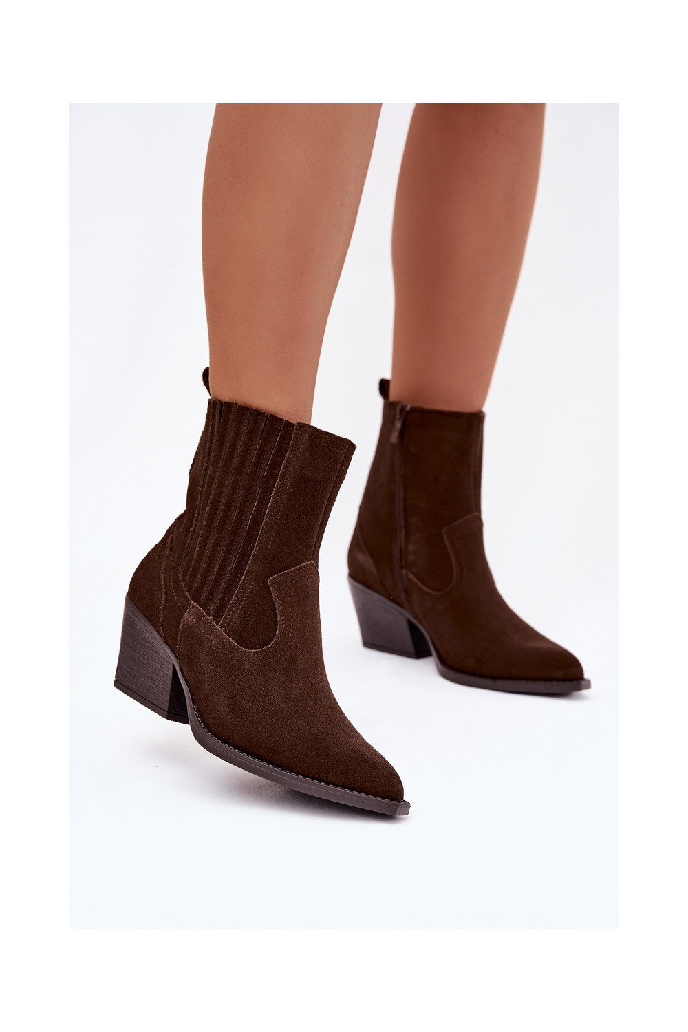 ze semiše Boty v kovbojském stylu s podpatky zateplené Czekoladowe Dylira