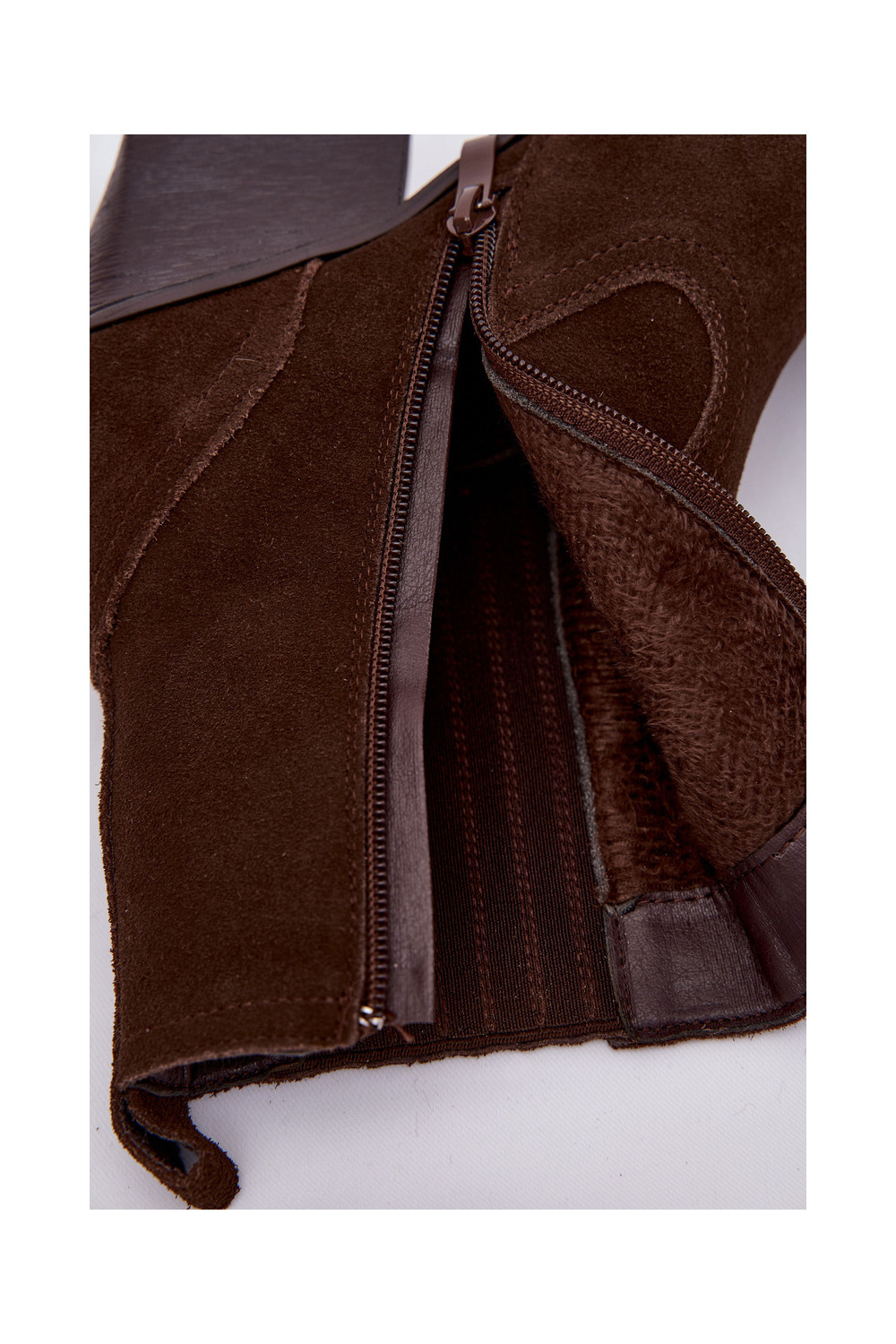 ze semiše Boty v kovbojském stylu  s podpatky zateplené Czekoladowe Dylira