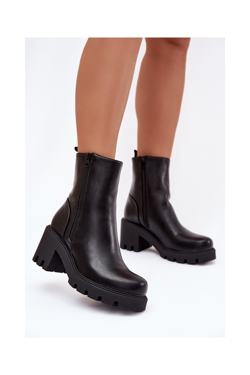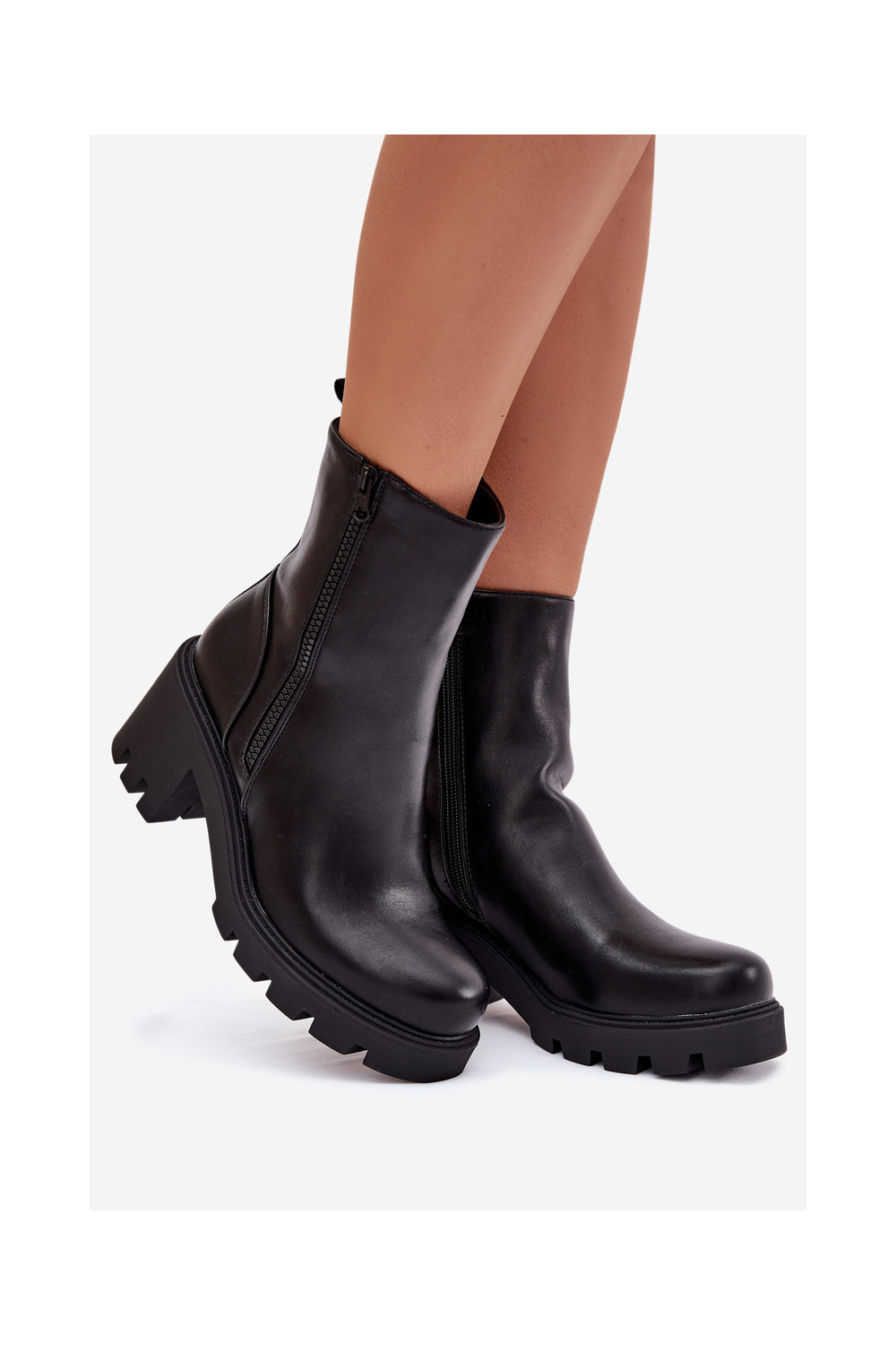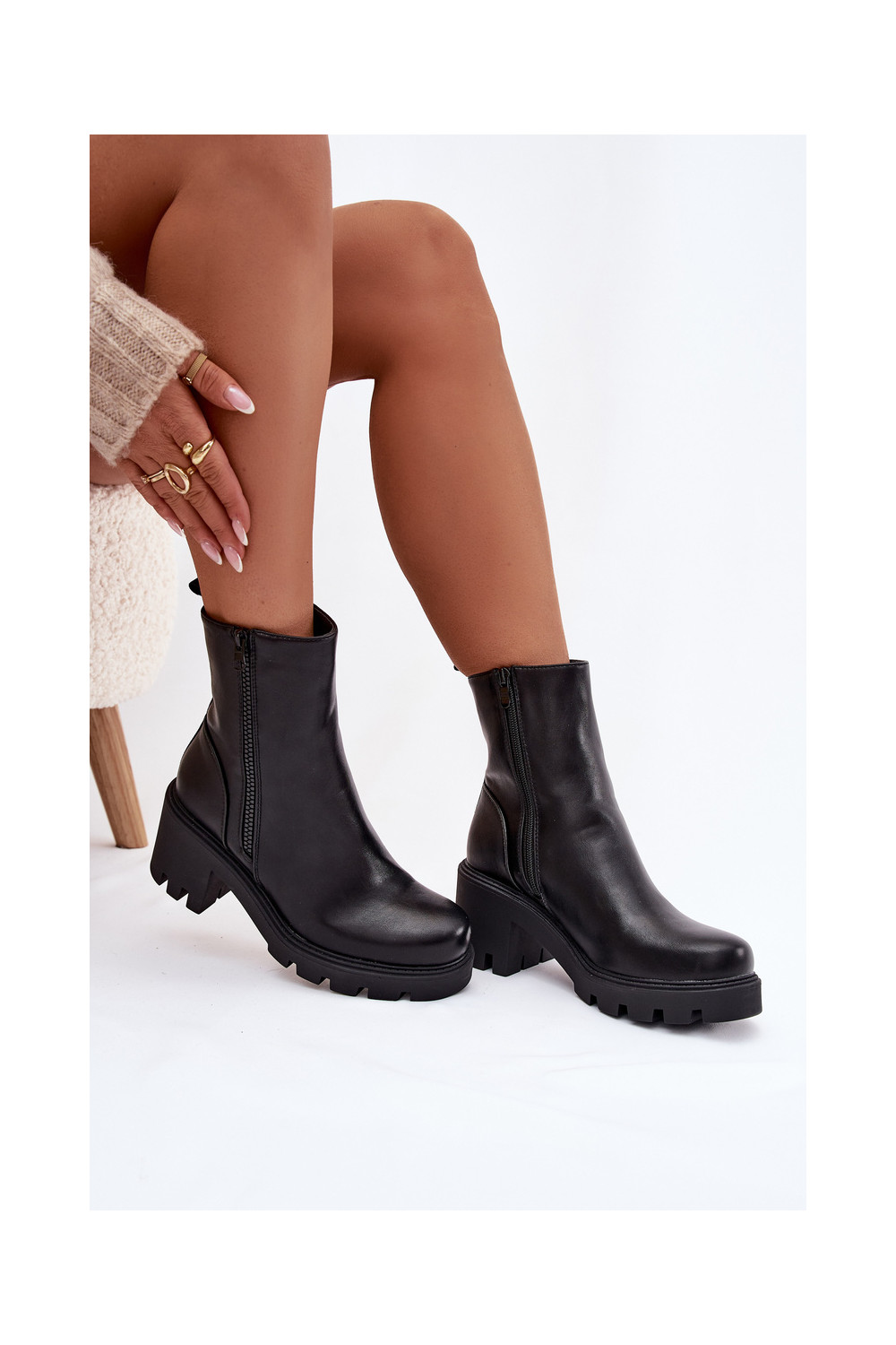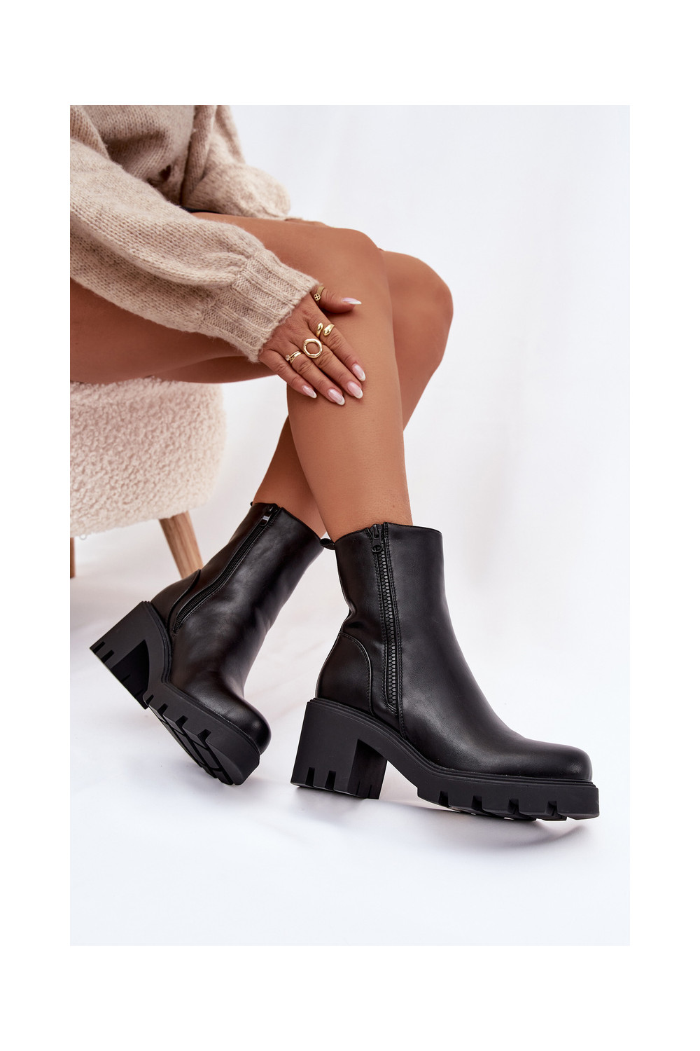 Dámské podpatky zateplené silný podpatek Černé Ameliane