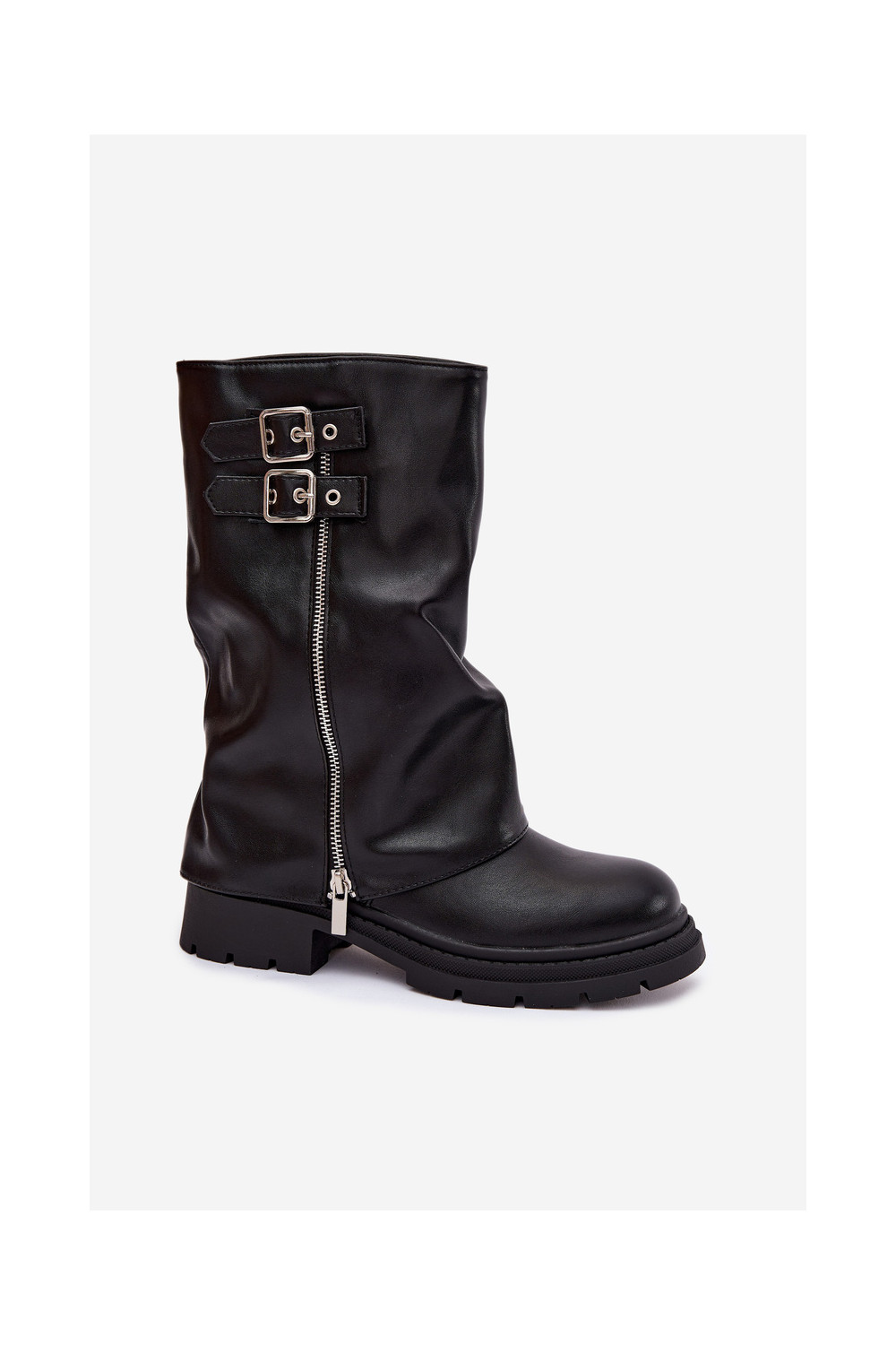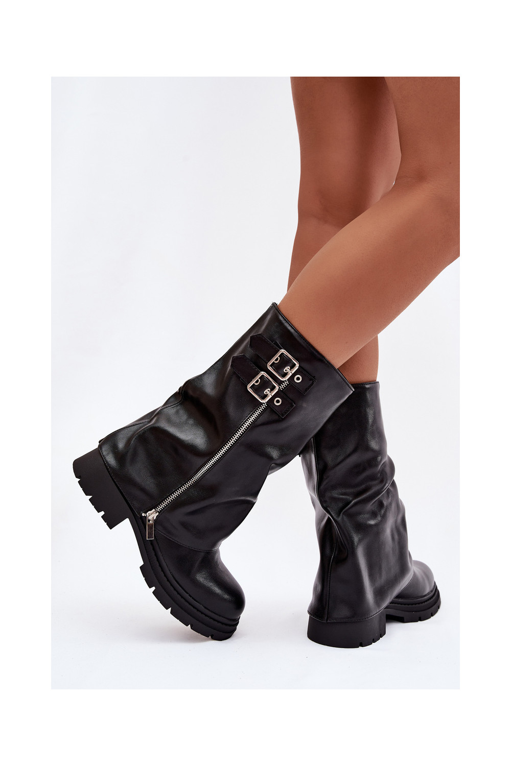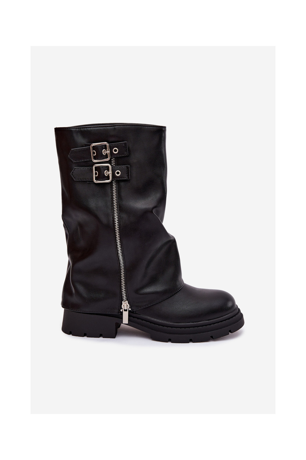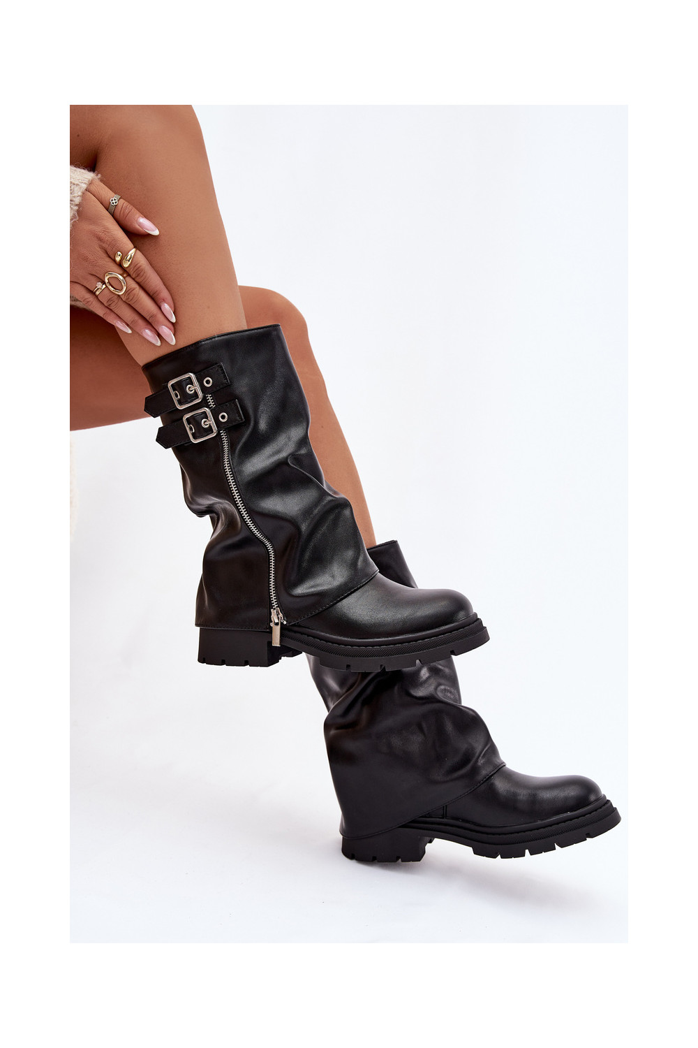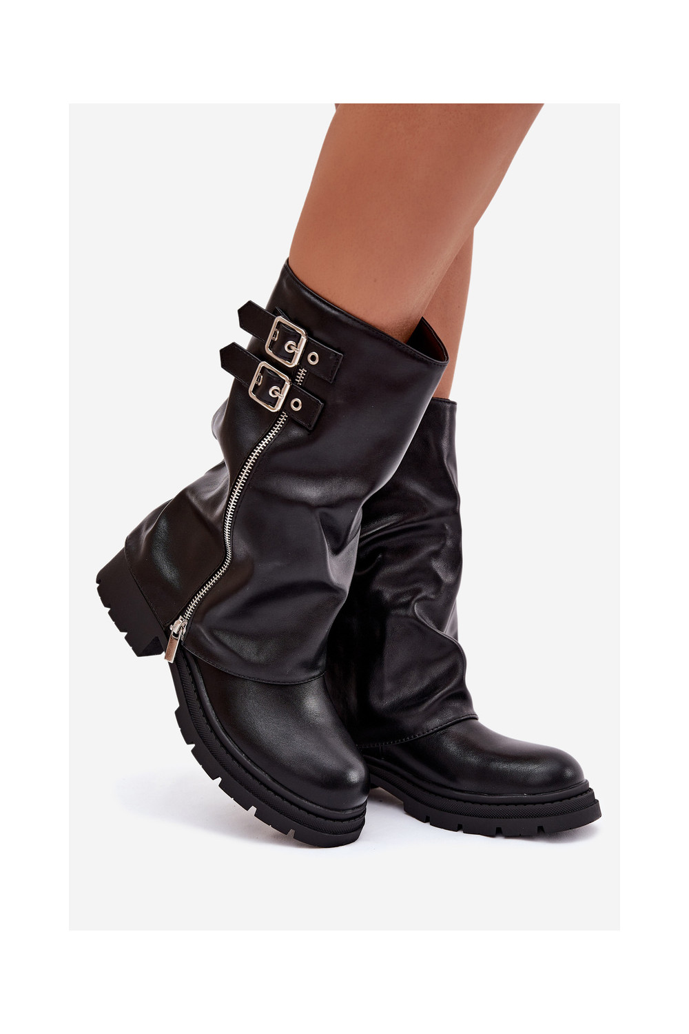 Dámské podpatky Z Wywiniętą Cholewką zateplené s přezkami Černé Salarie