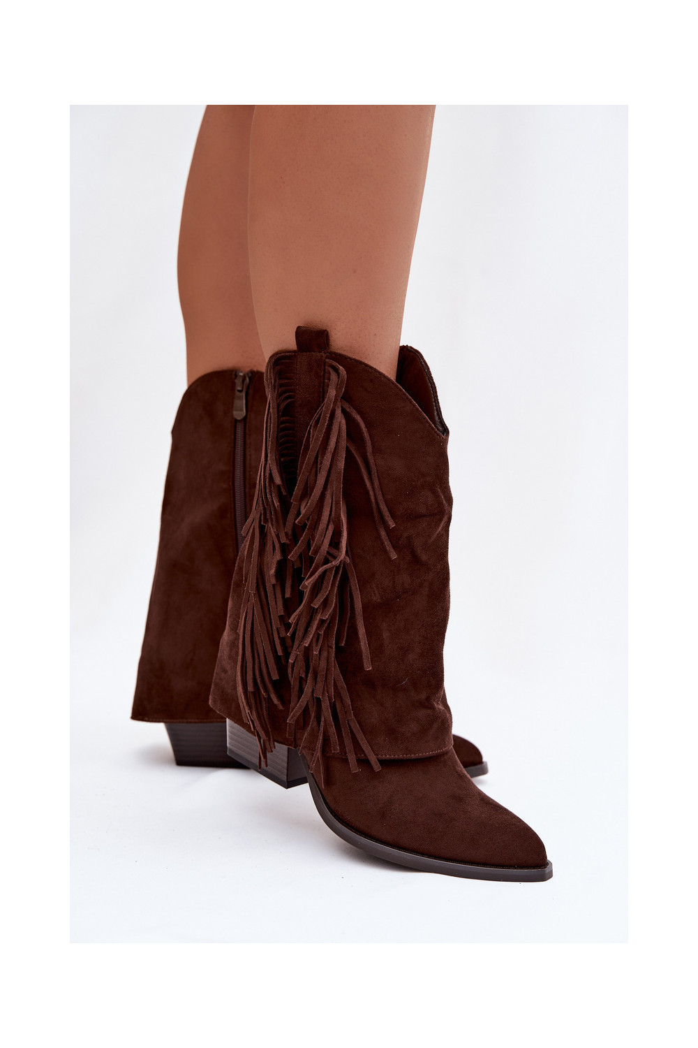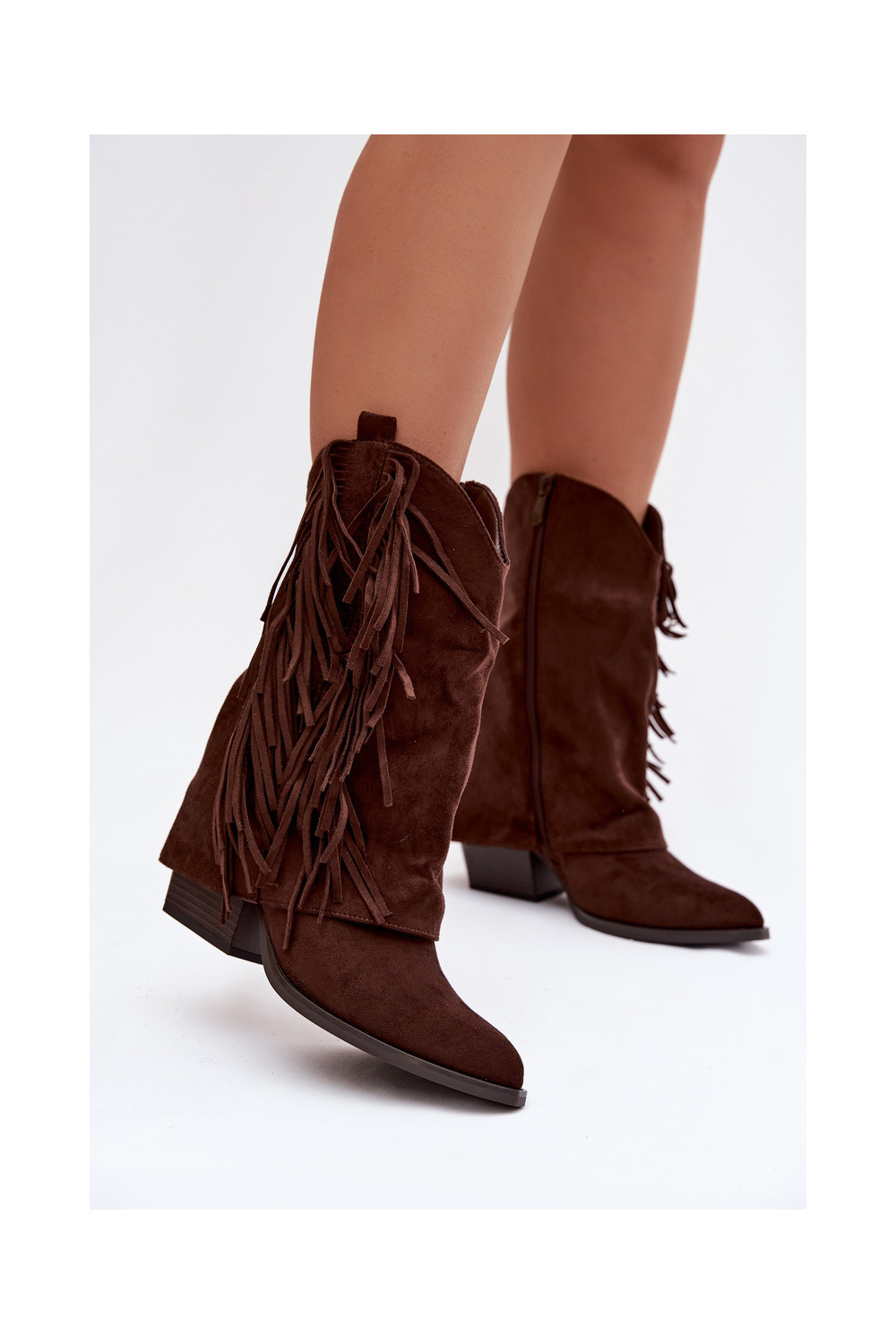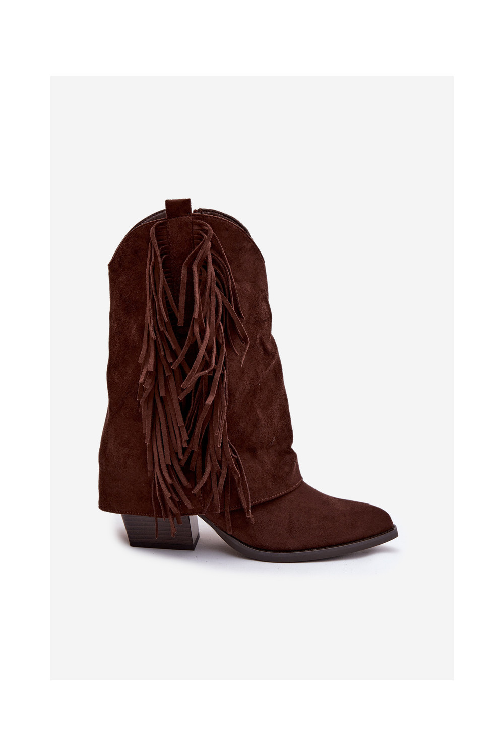 Boty v kovbojském stylu se střapci s podpatky Czekoladowe Gralina