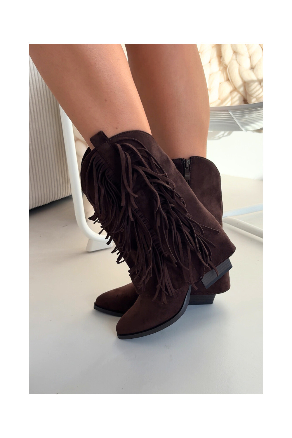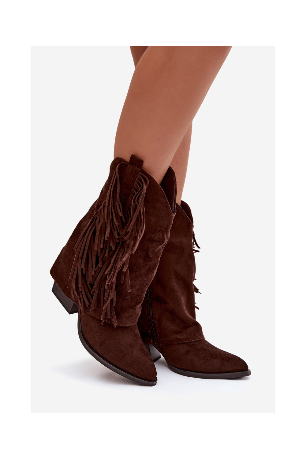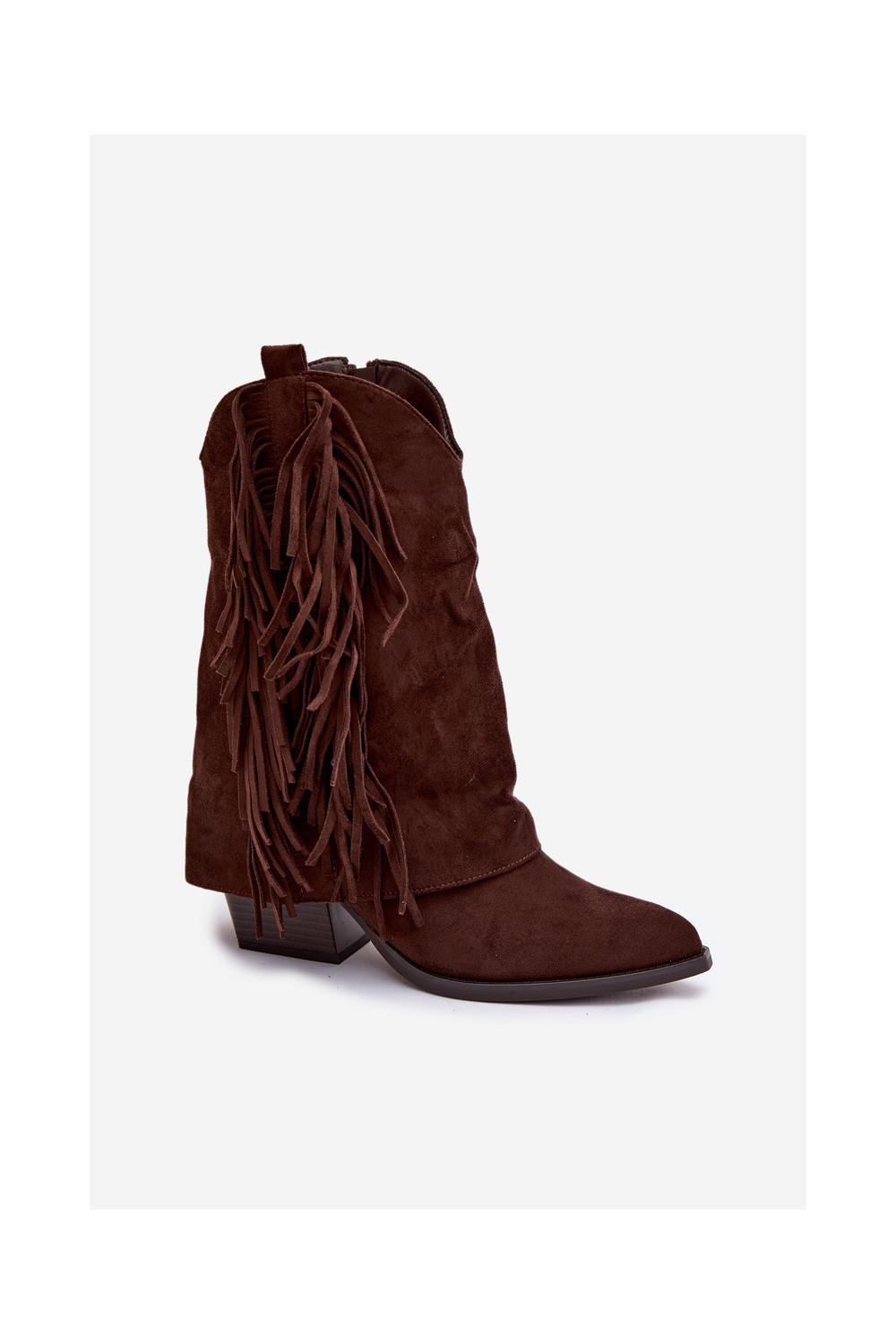 Boty v kovbojském stylu se střapci s podpatky Czekoladowe Gralina