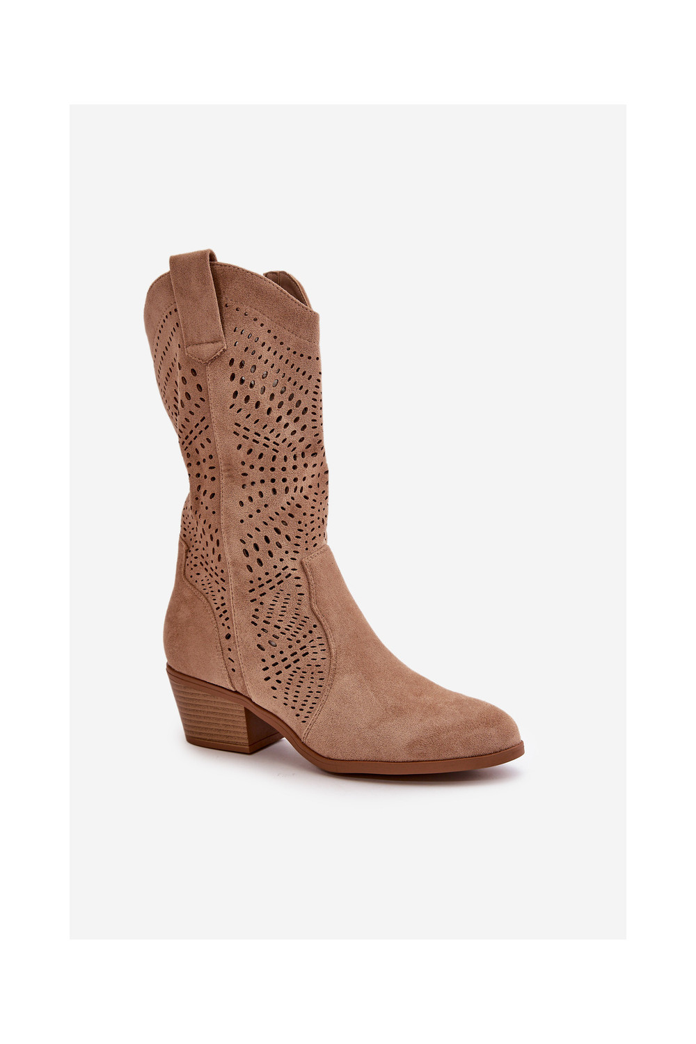 s ažurovými prvky Boty v kovbojském stylu s podpatky hnědá Iceda