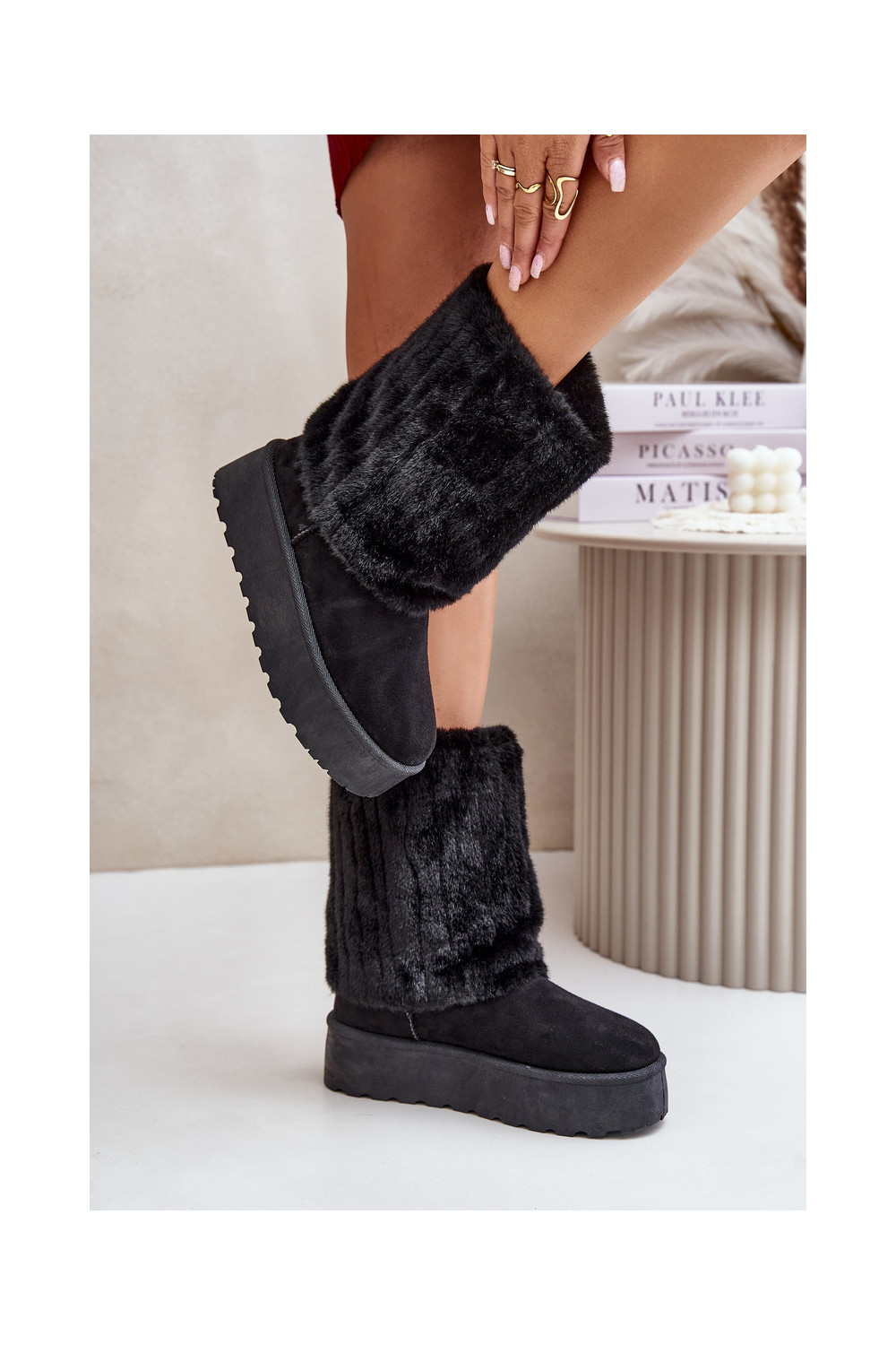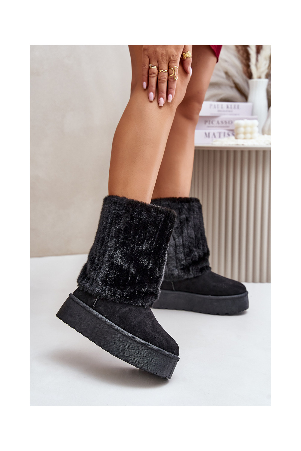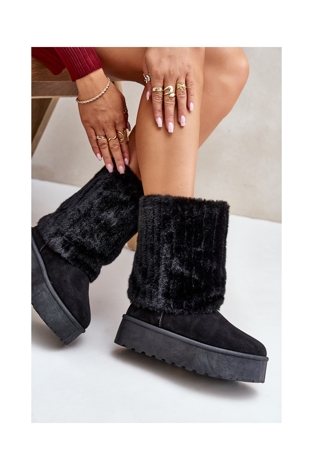Sněhule s platformou Z Wywiniętą Cholewką Černé Lisonea