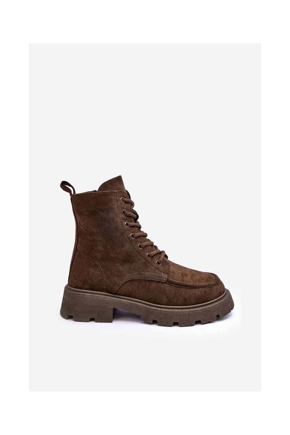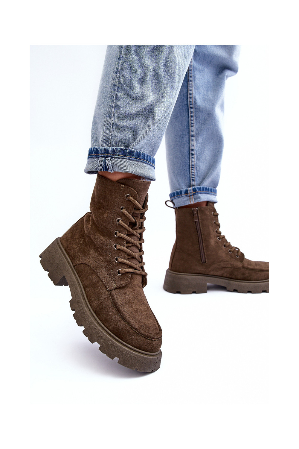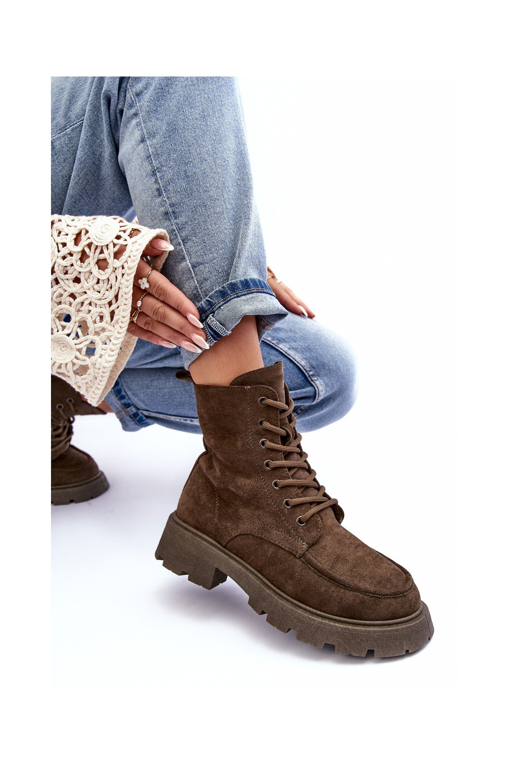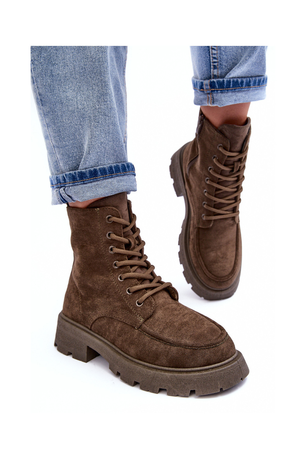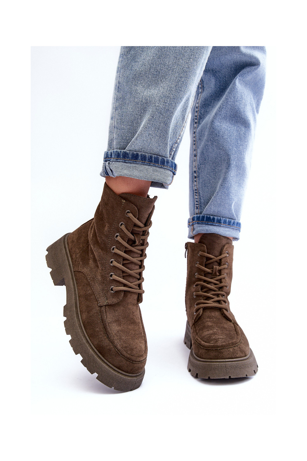 Semišové boty boty zateplené s širokými podpatky khaki Zikey