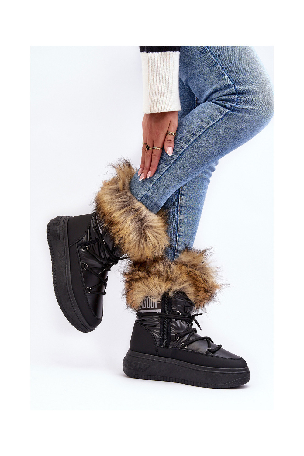 Sněhule s kožešinou s platformou Černé Nabilla