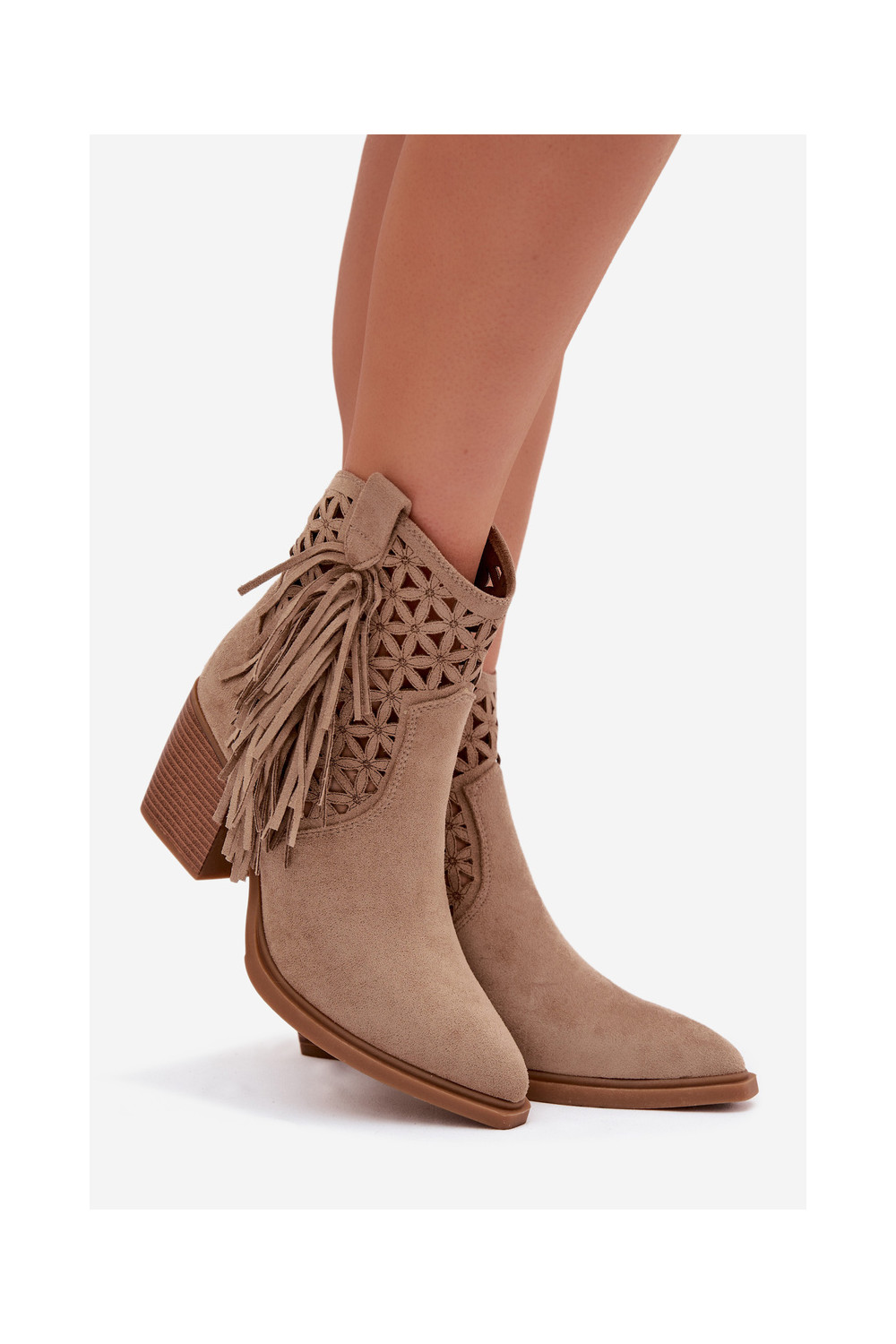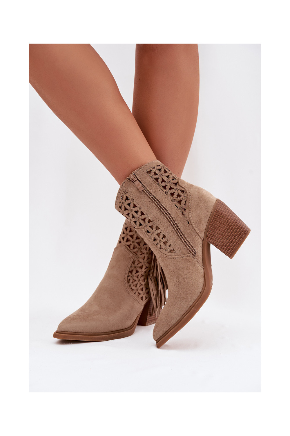 s ažurovými prvky Boty v kovbojském stylu s podpatky se střapci béžové Calissey
