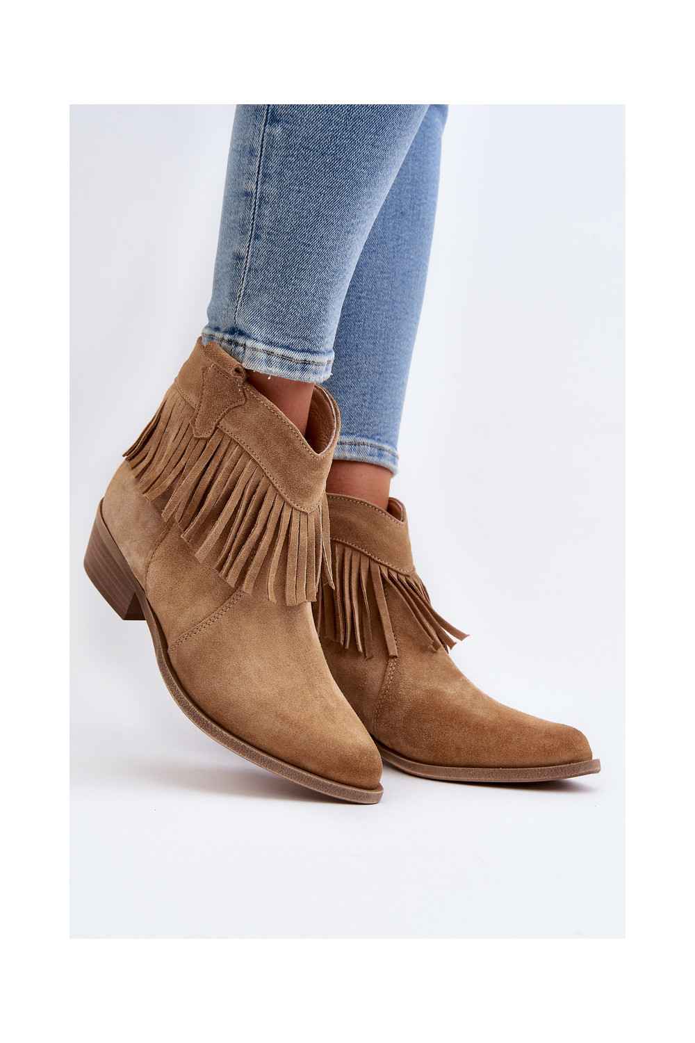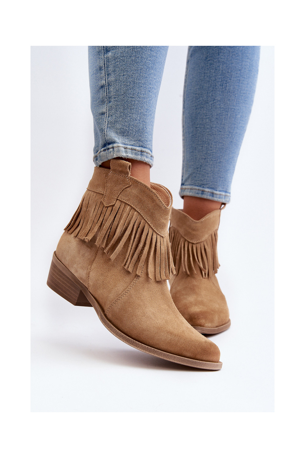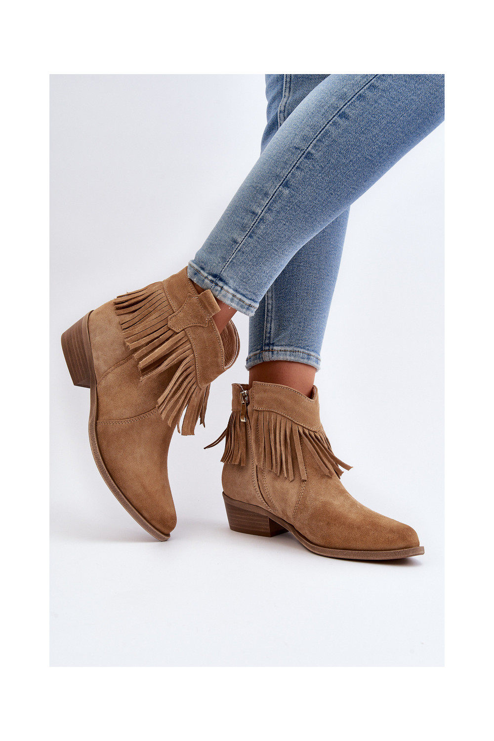 Zazoo 3430 Semišové boty se střapci béžové