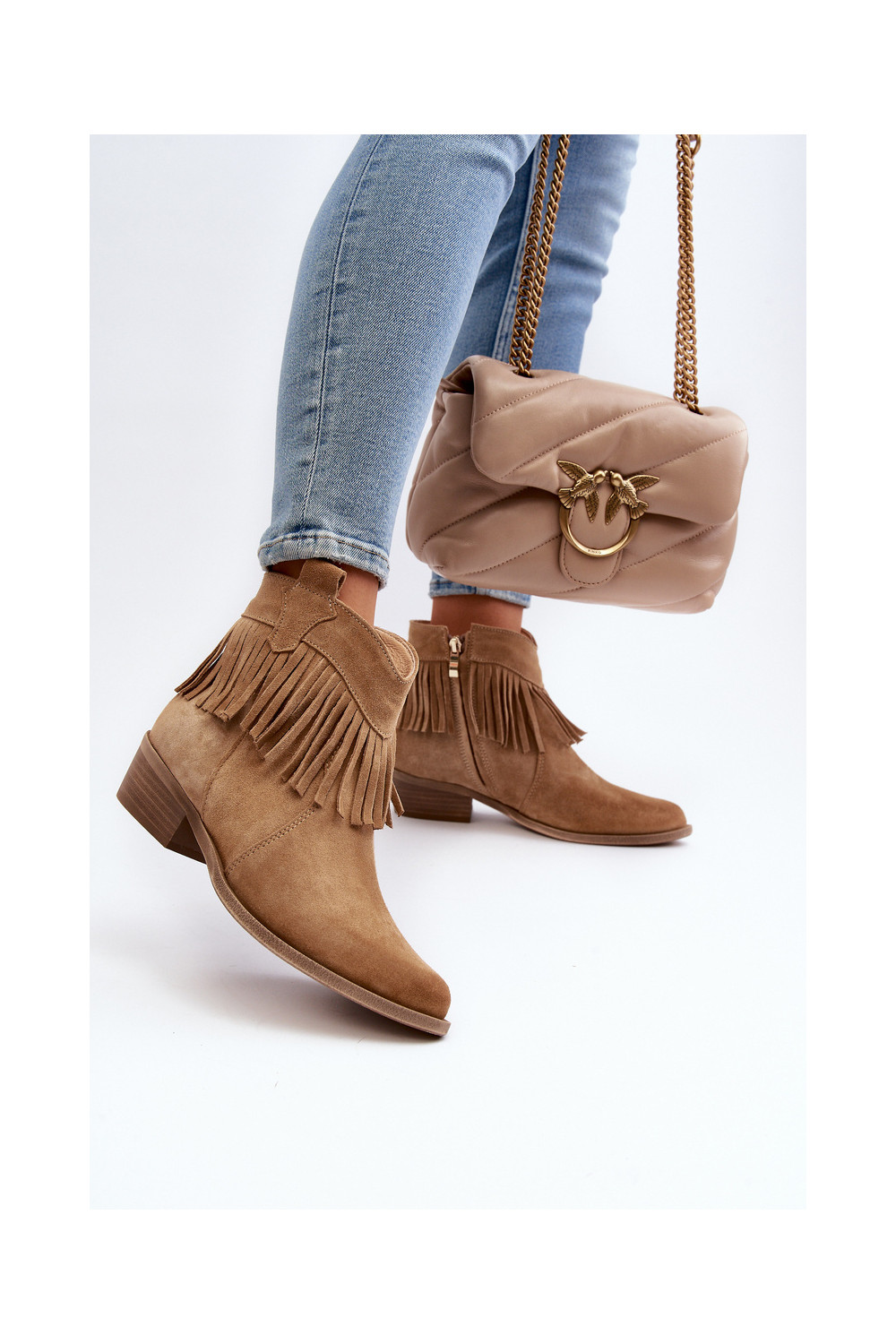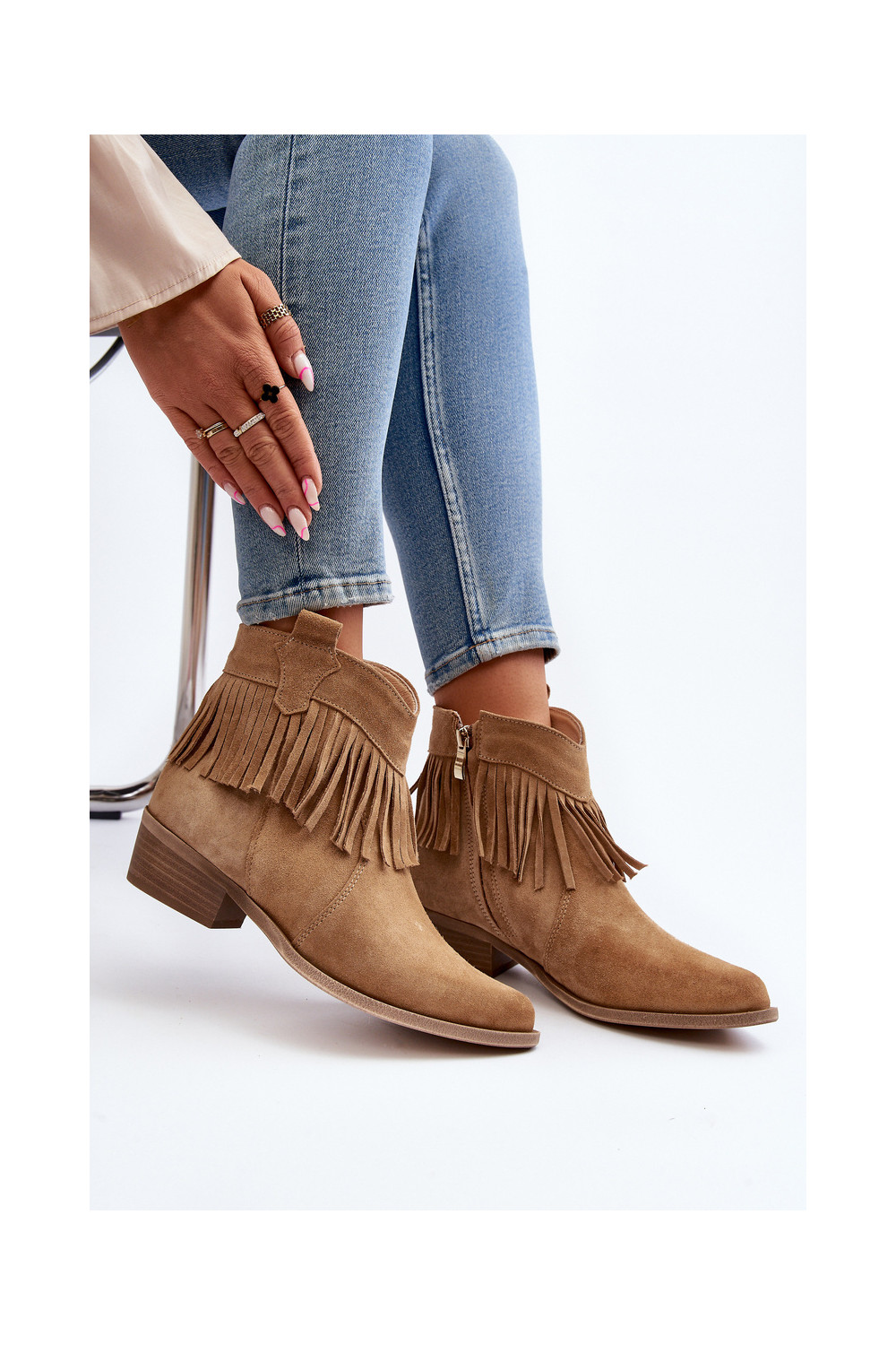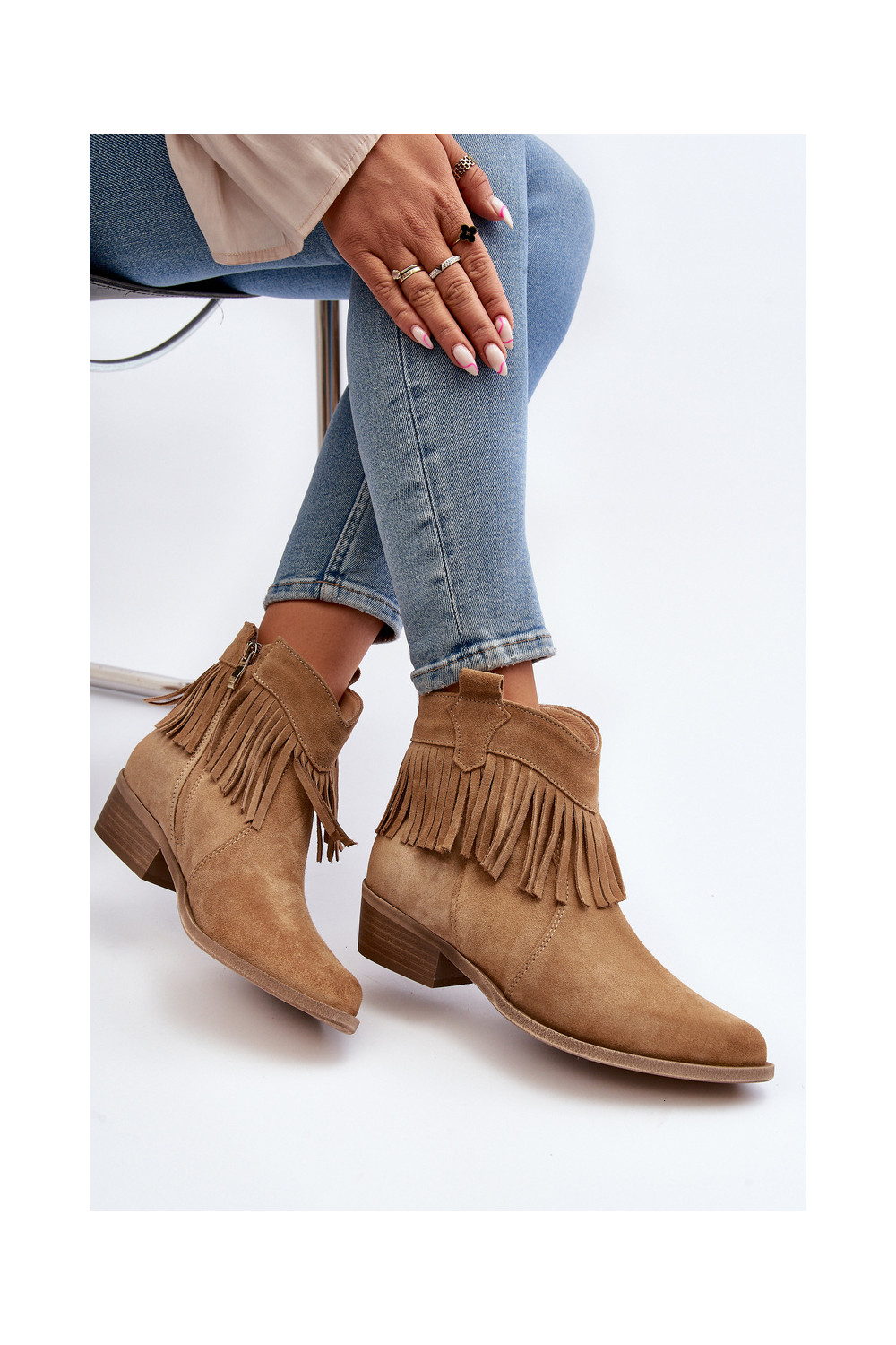 Zazoo 3430 Semišové boty se střapci béžové