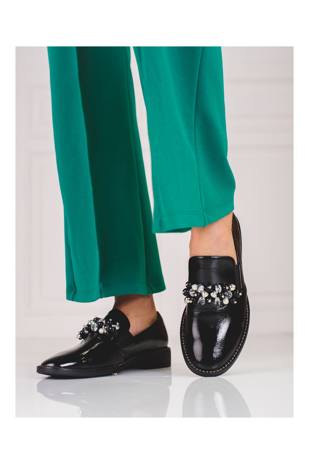 Dámské lakované lordsy s ornamentem Shelovet černé