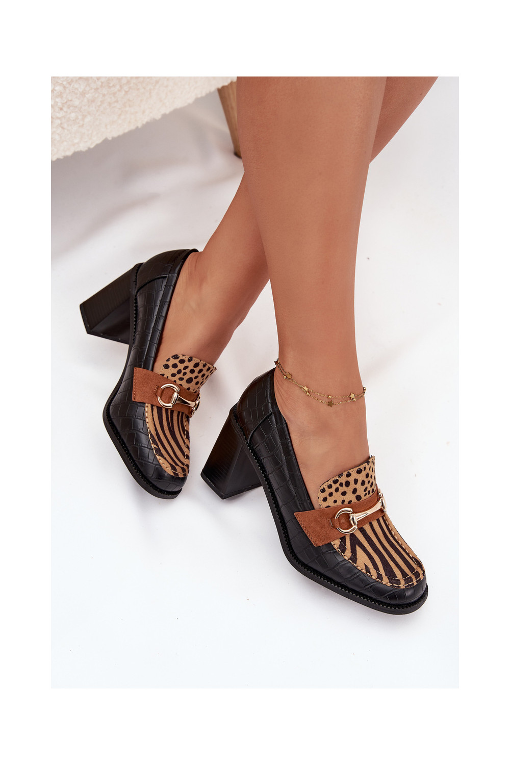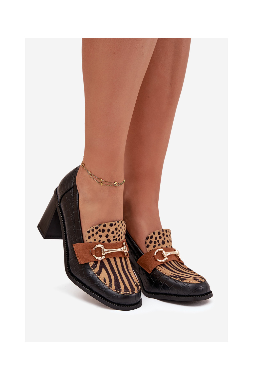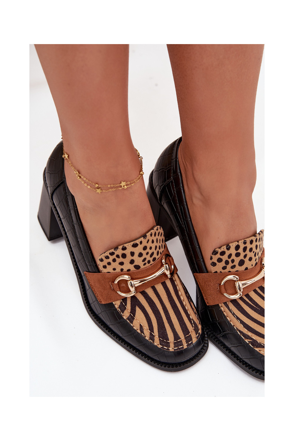 boty s podpatky s potiskem I zlaté barvym Detalem Černé a-béžové Novella