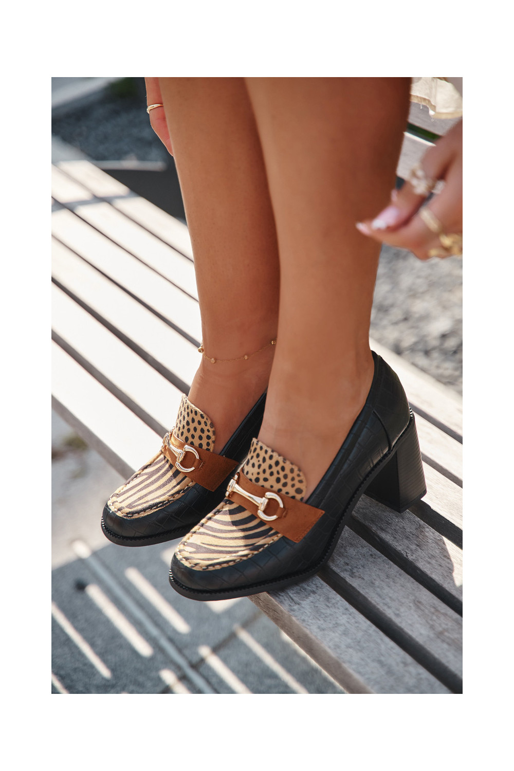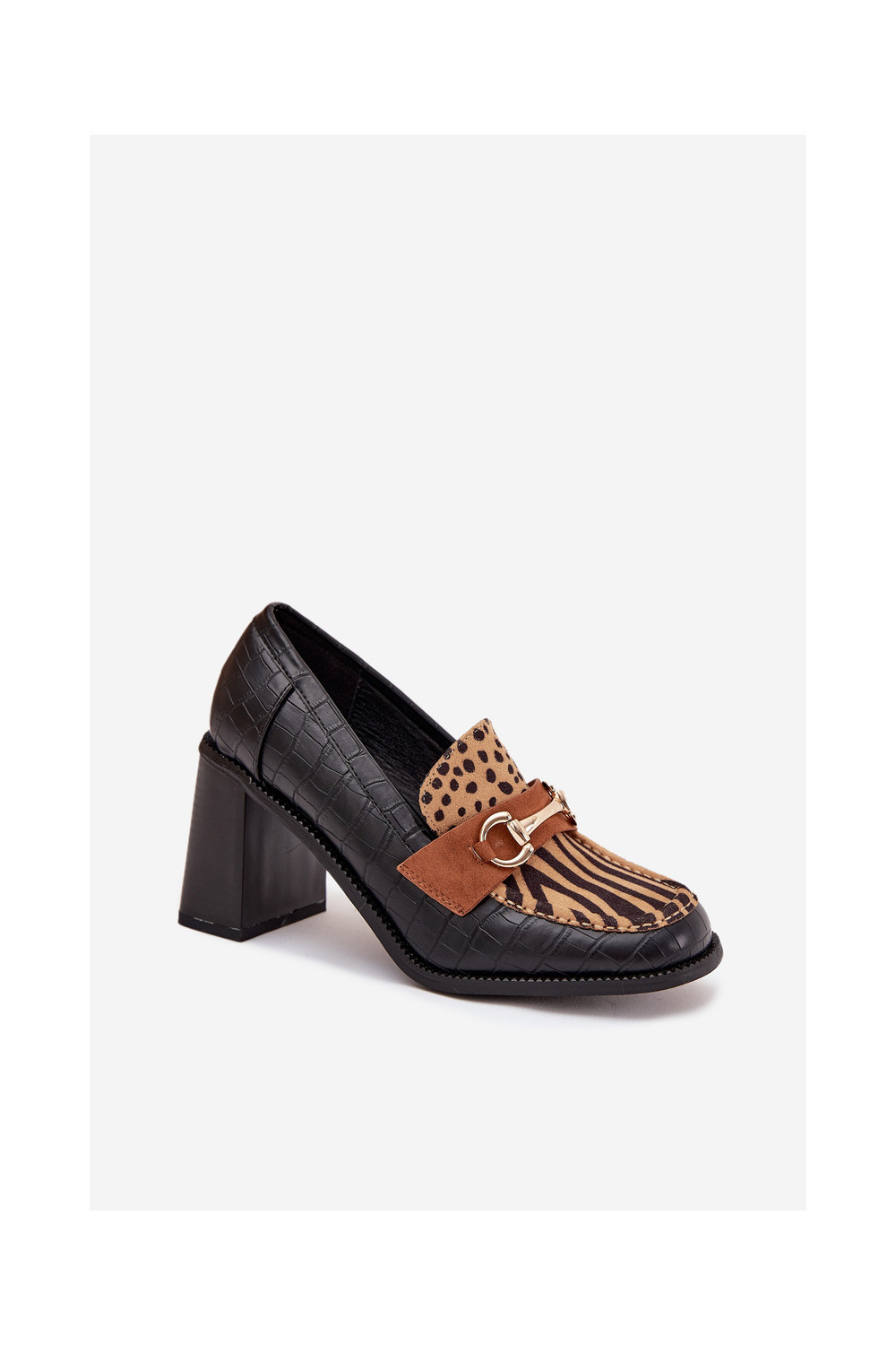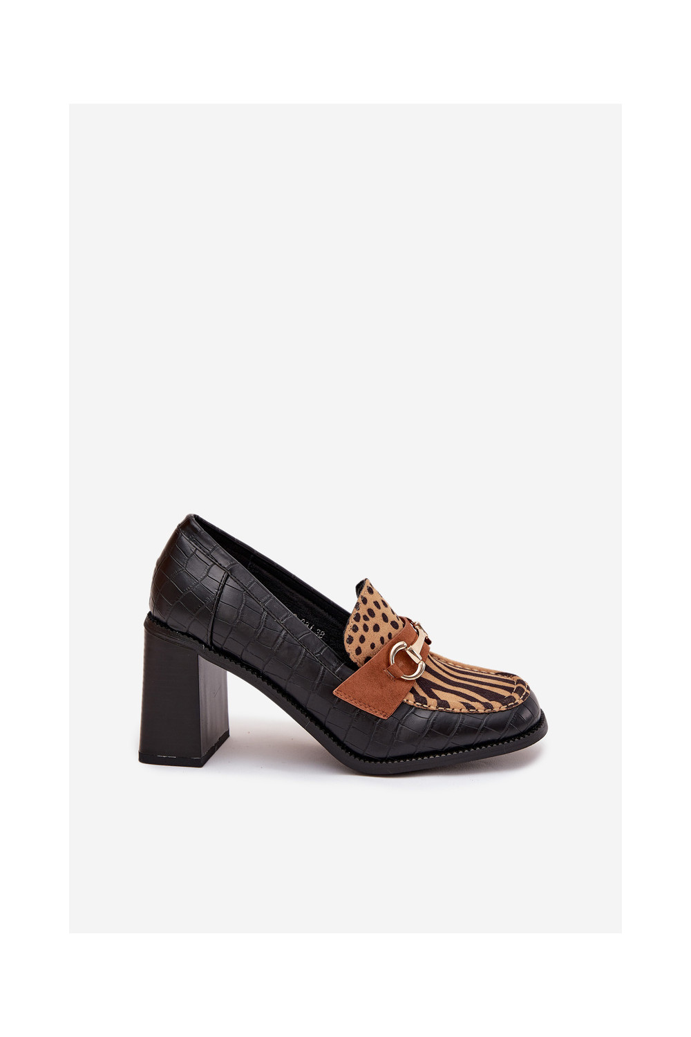boty s podpatky s potiskem I zlaté barvym Detalem Černé a-béžové Novella