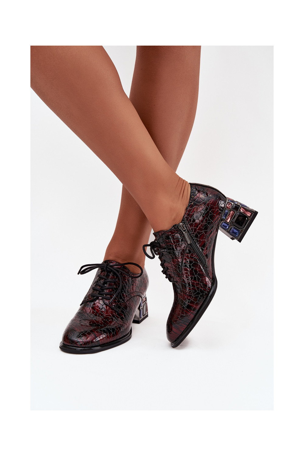 Lakované kožené tenisky s podpatky s třpytivýma očima Artiker 57C0073 vínová