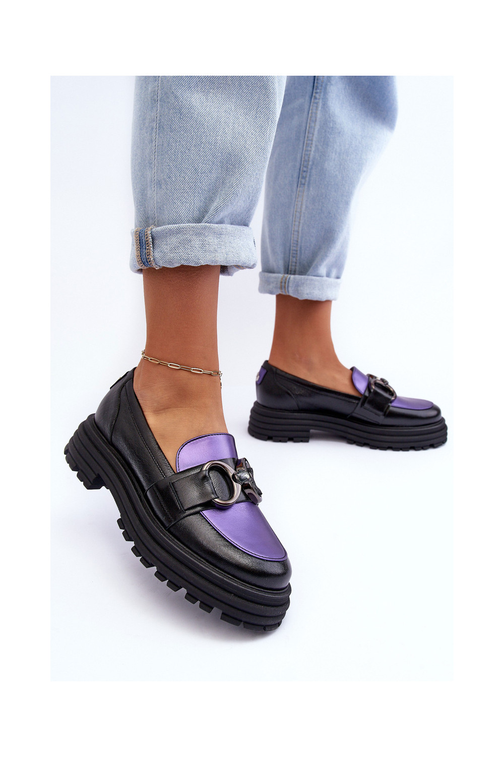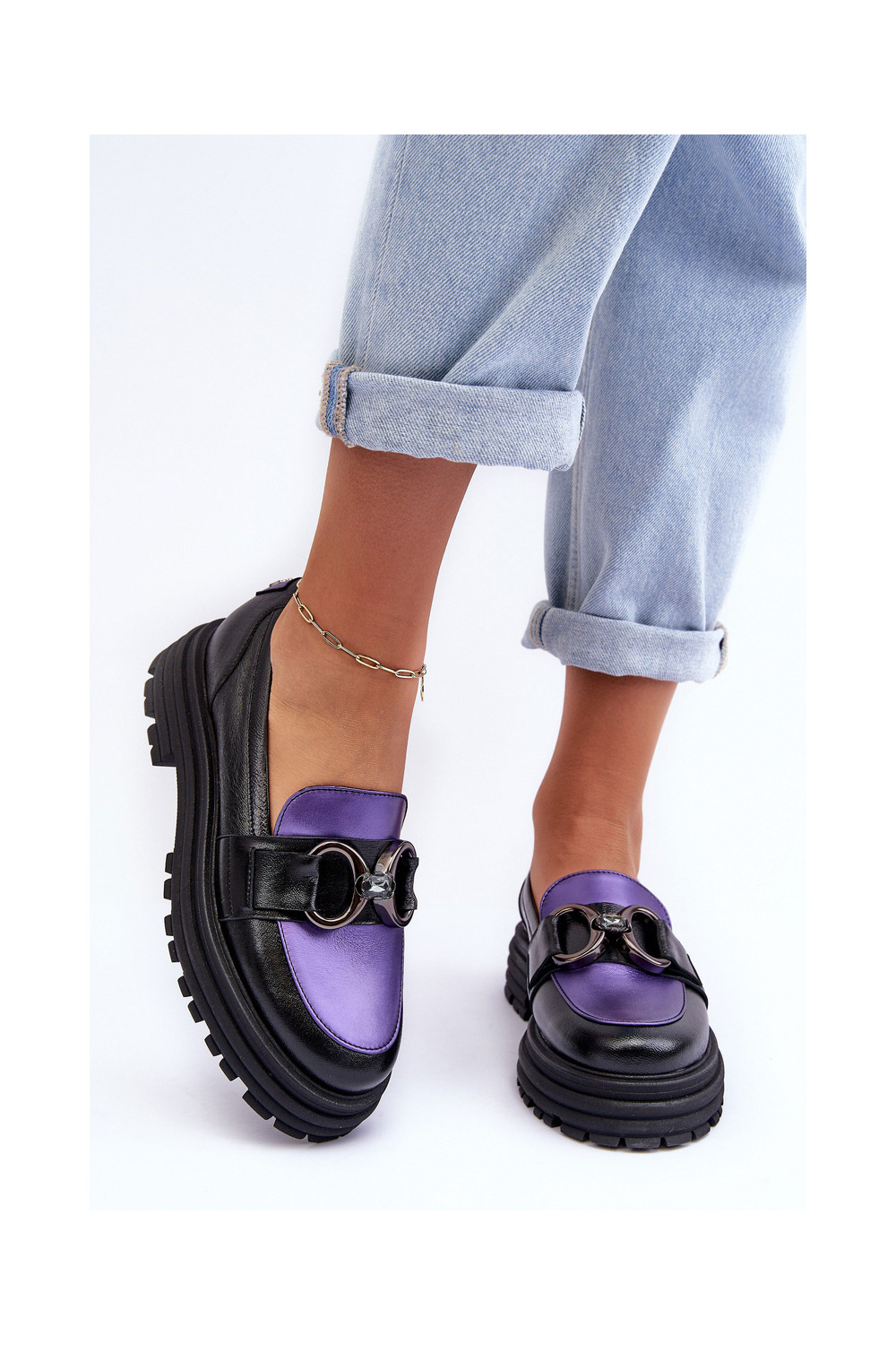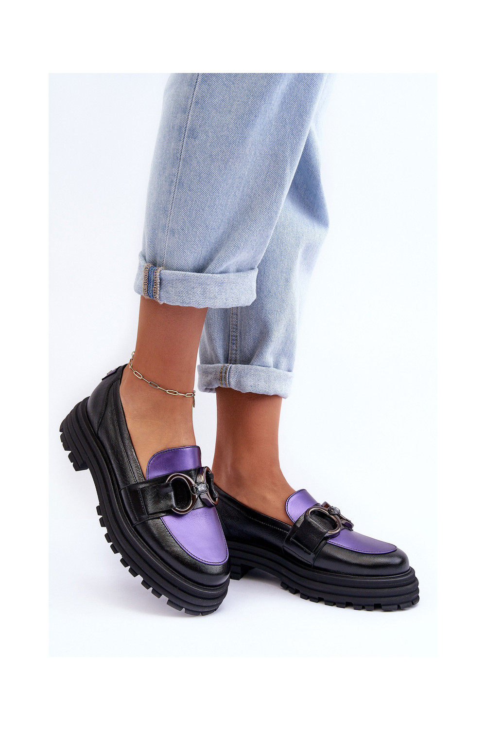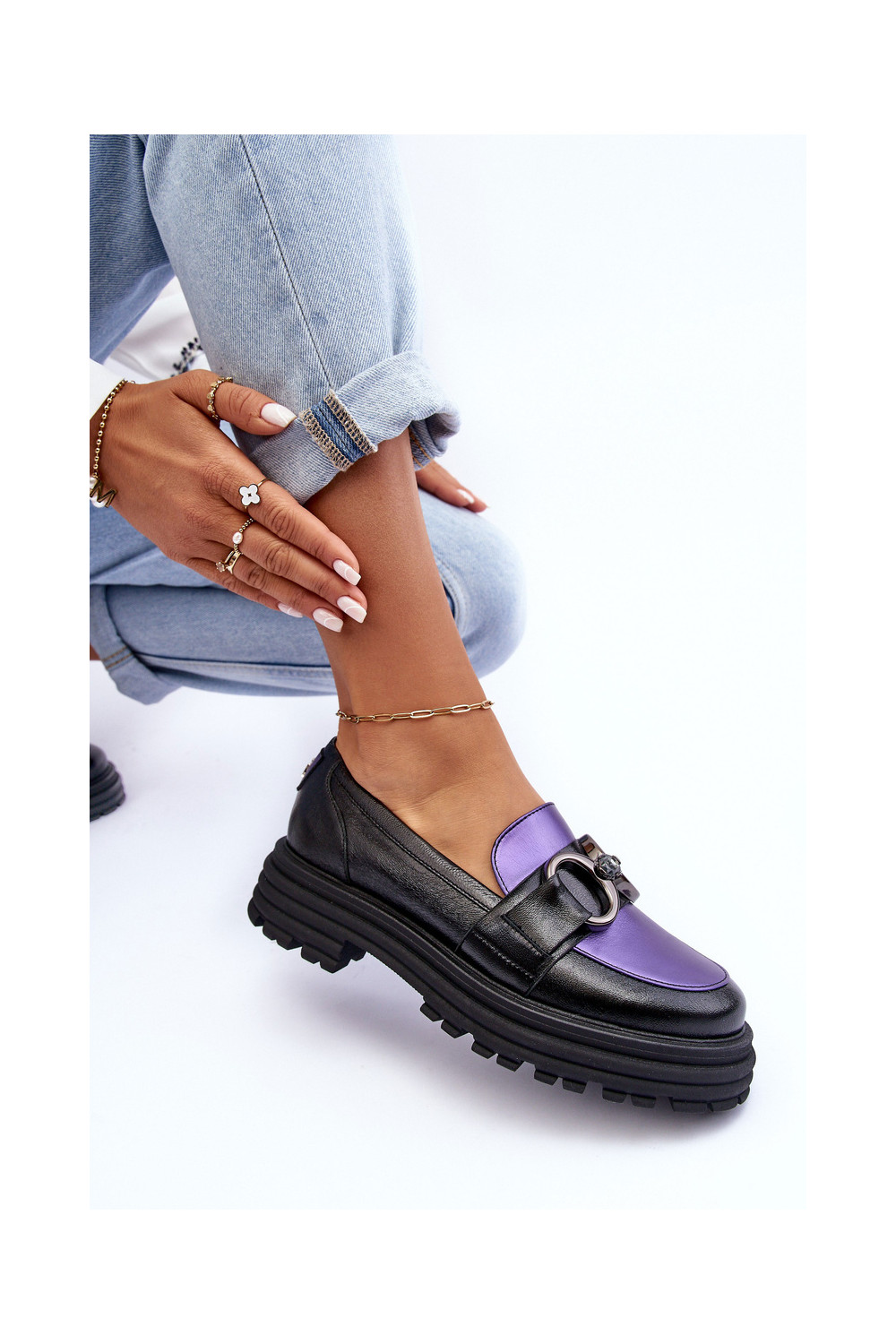 Kožené kotníkové boty s masivní podrážkou Černé a-Barva fialová Elkiza