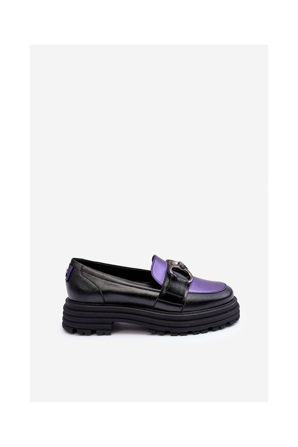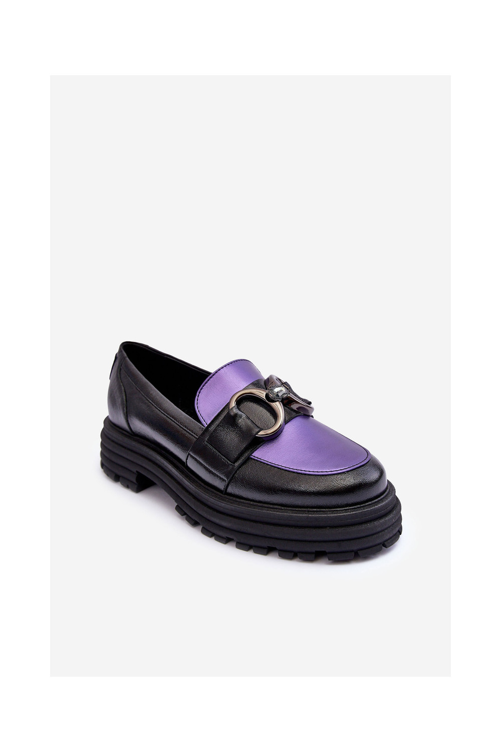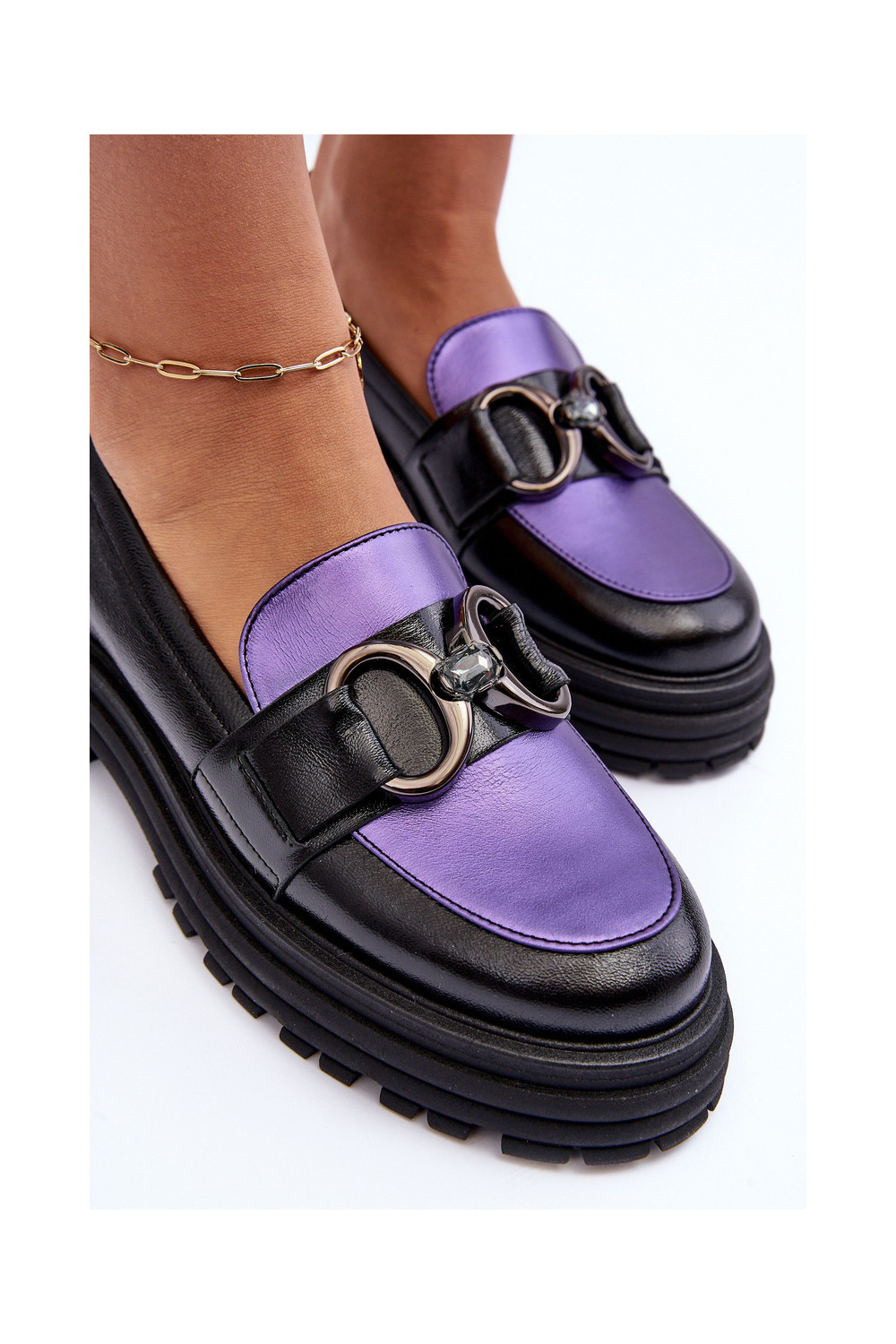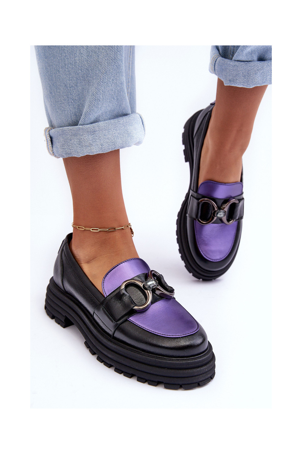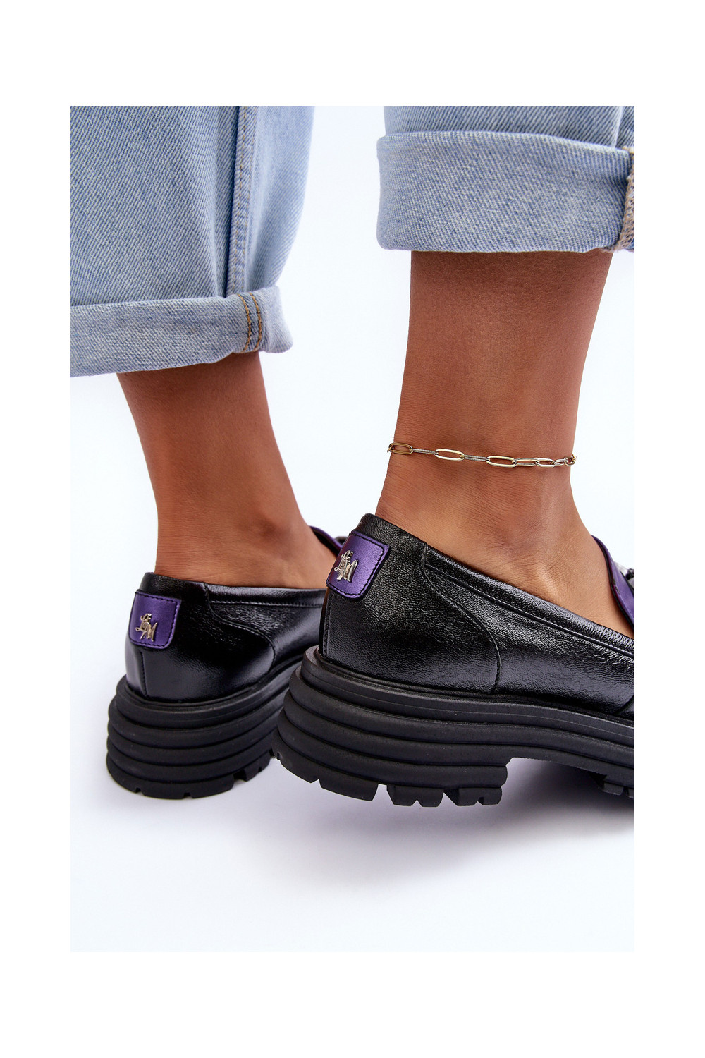 Kožené kotníkové boty s masivní podrážkou Černé a-Barva fialová Elkiza