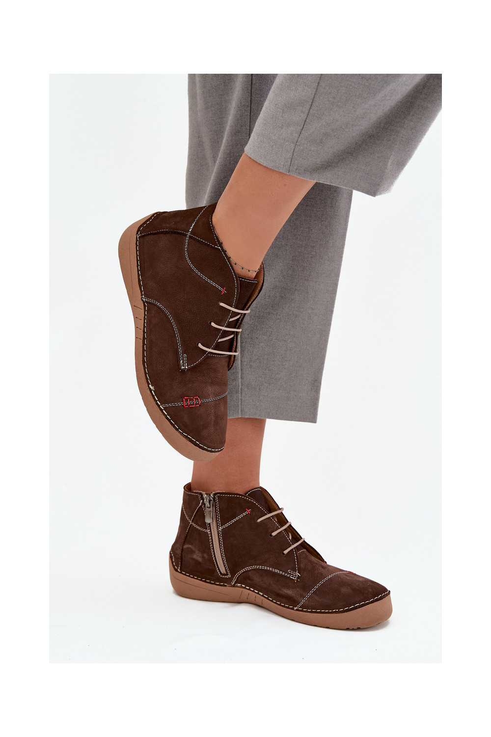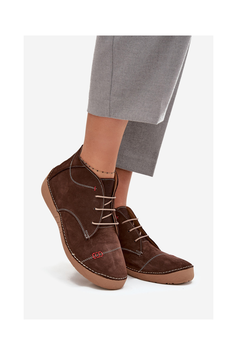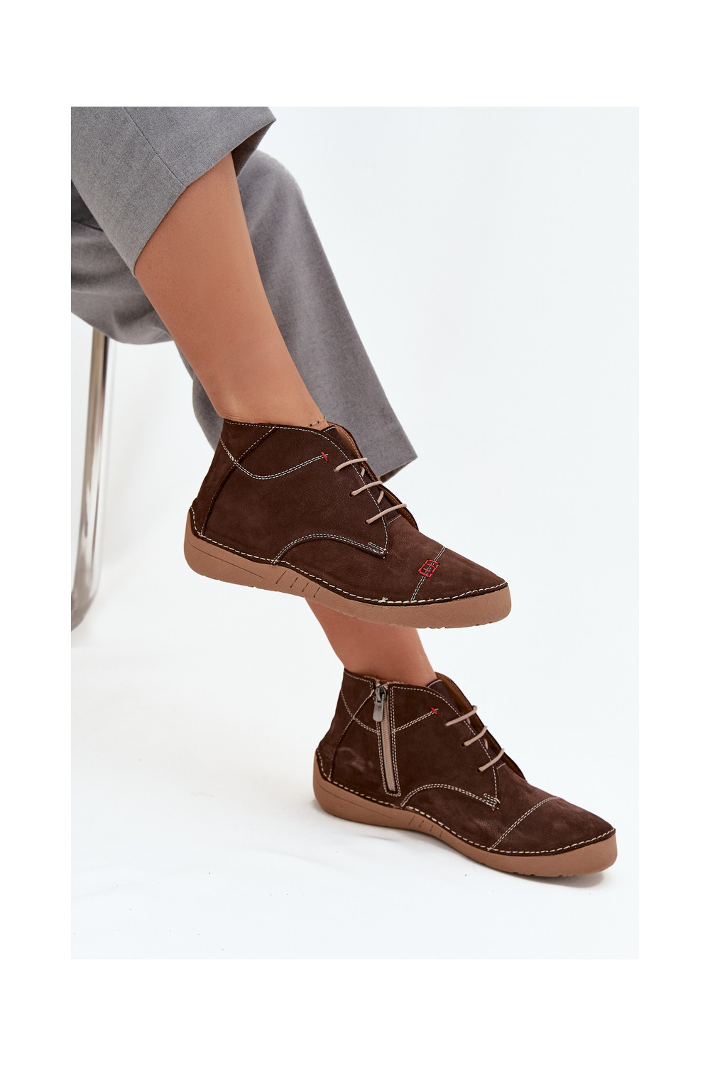 boty Z Przeszyciami Artiker 57C2117 hnědá