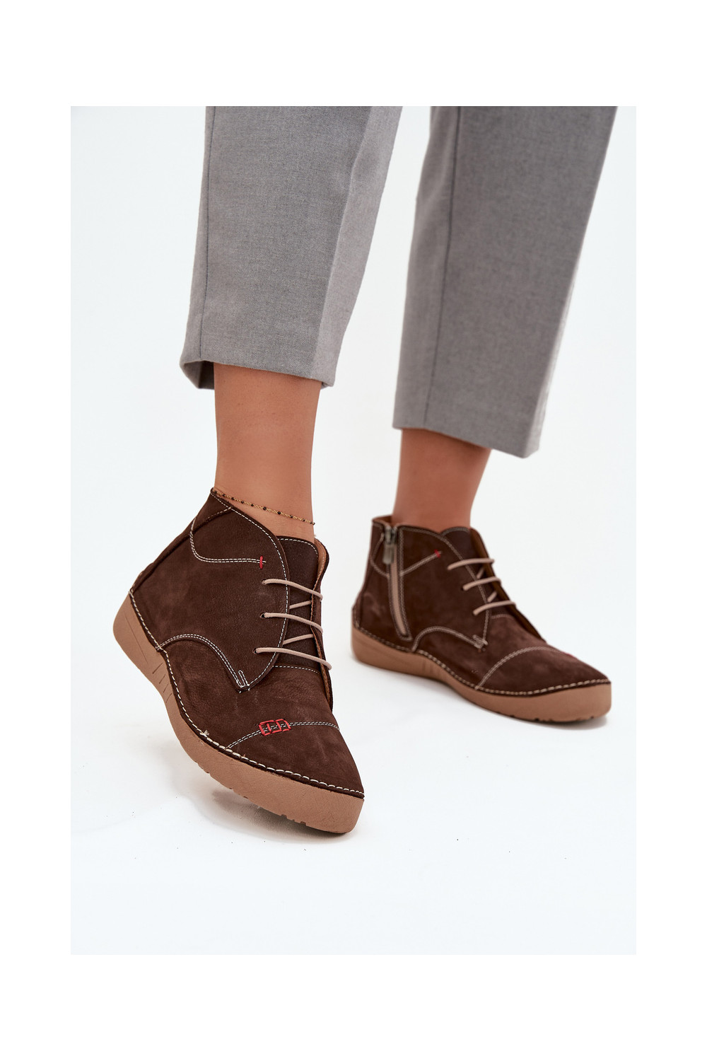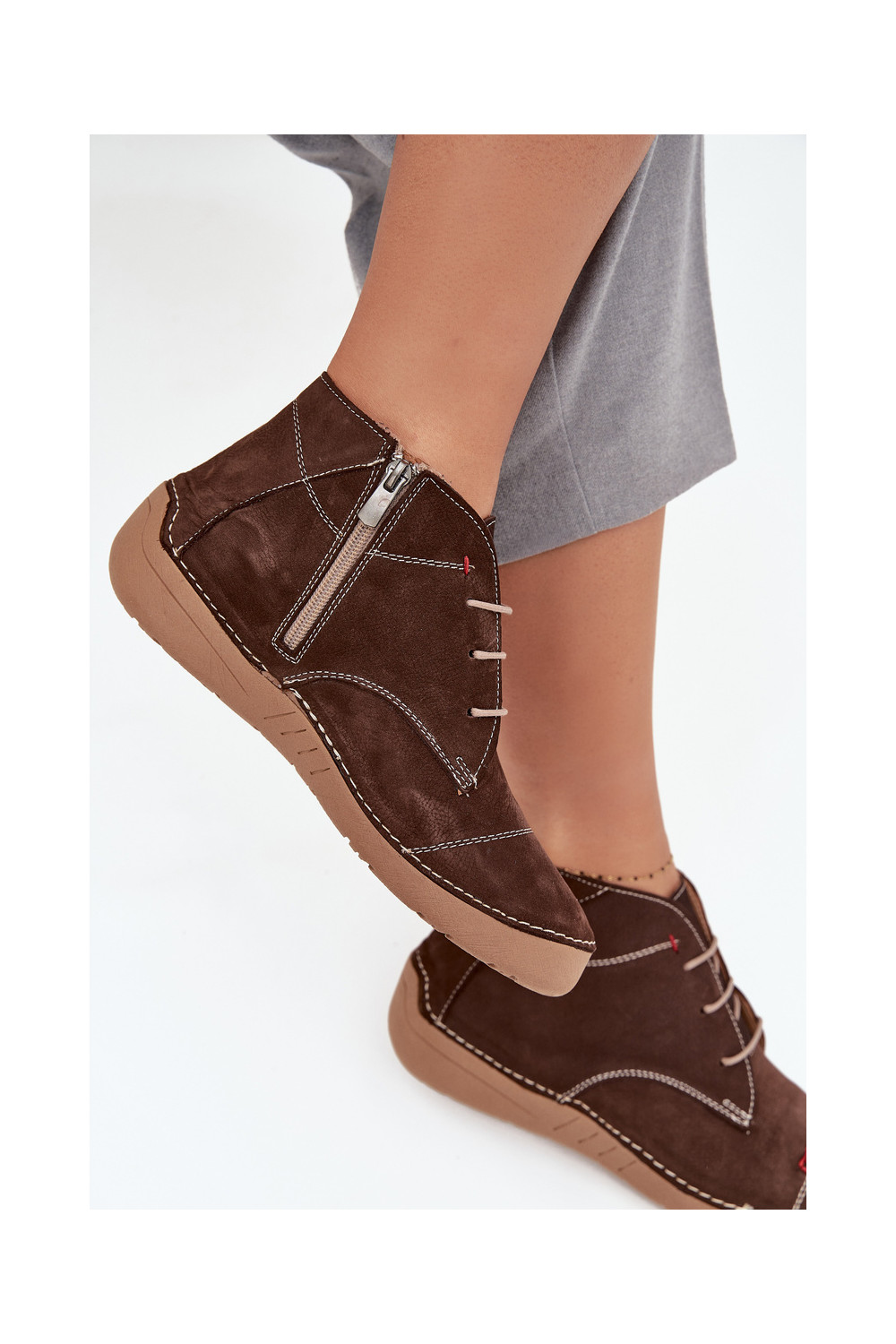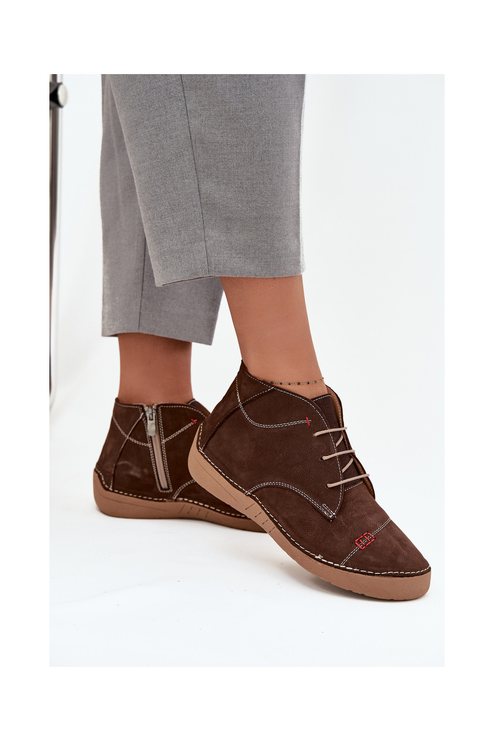 boty Z Przeszyciami Artiker 57C2117 hnědá