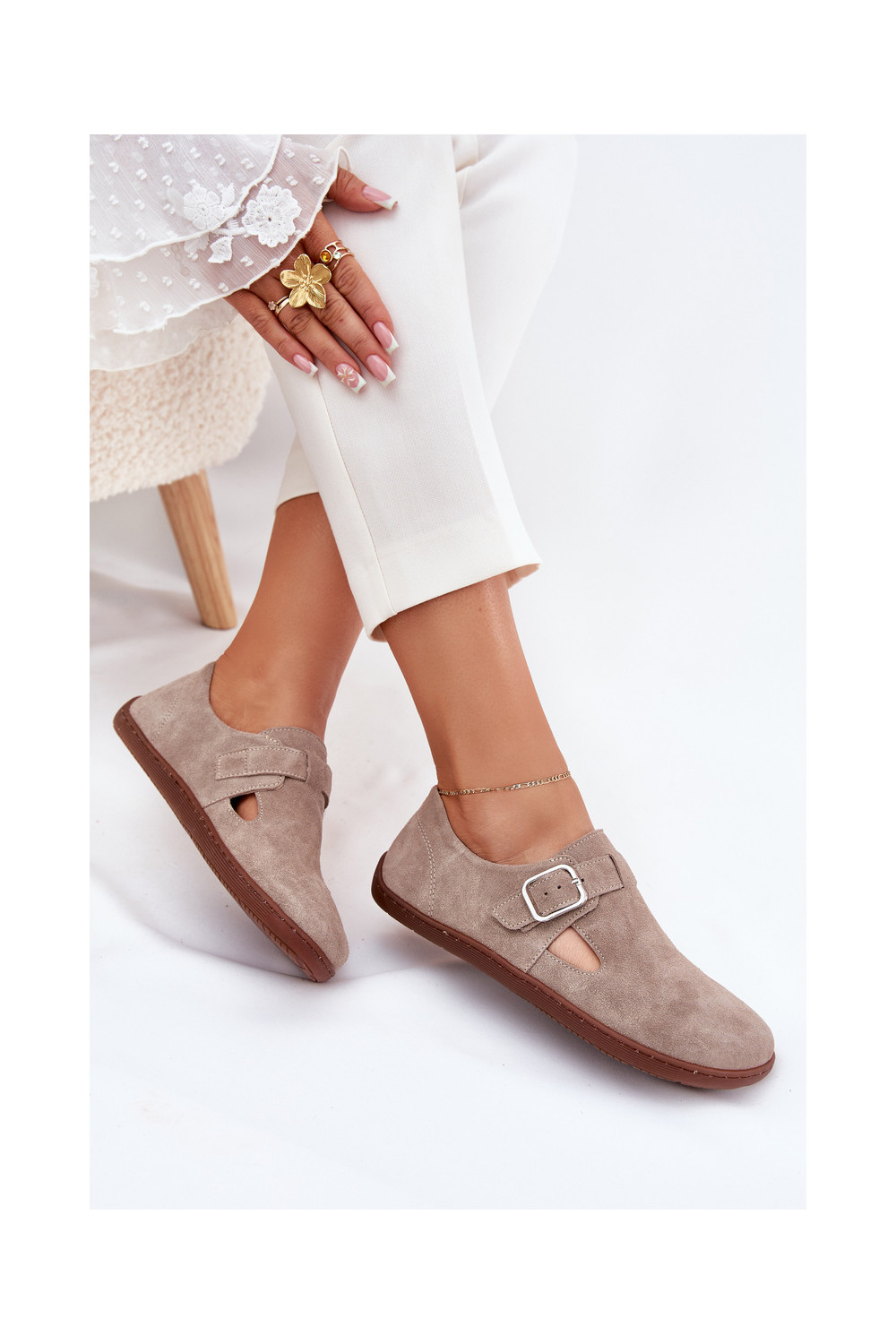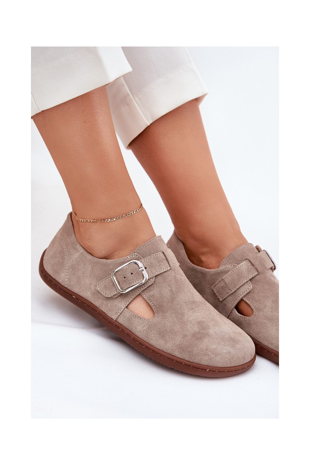 ze semiše boty Barefoot s přezkami Zazoo N1261 béžové
