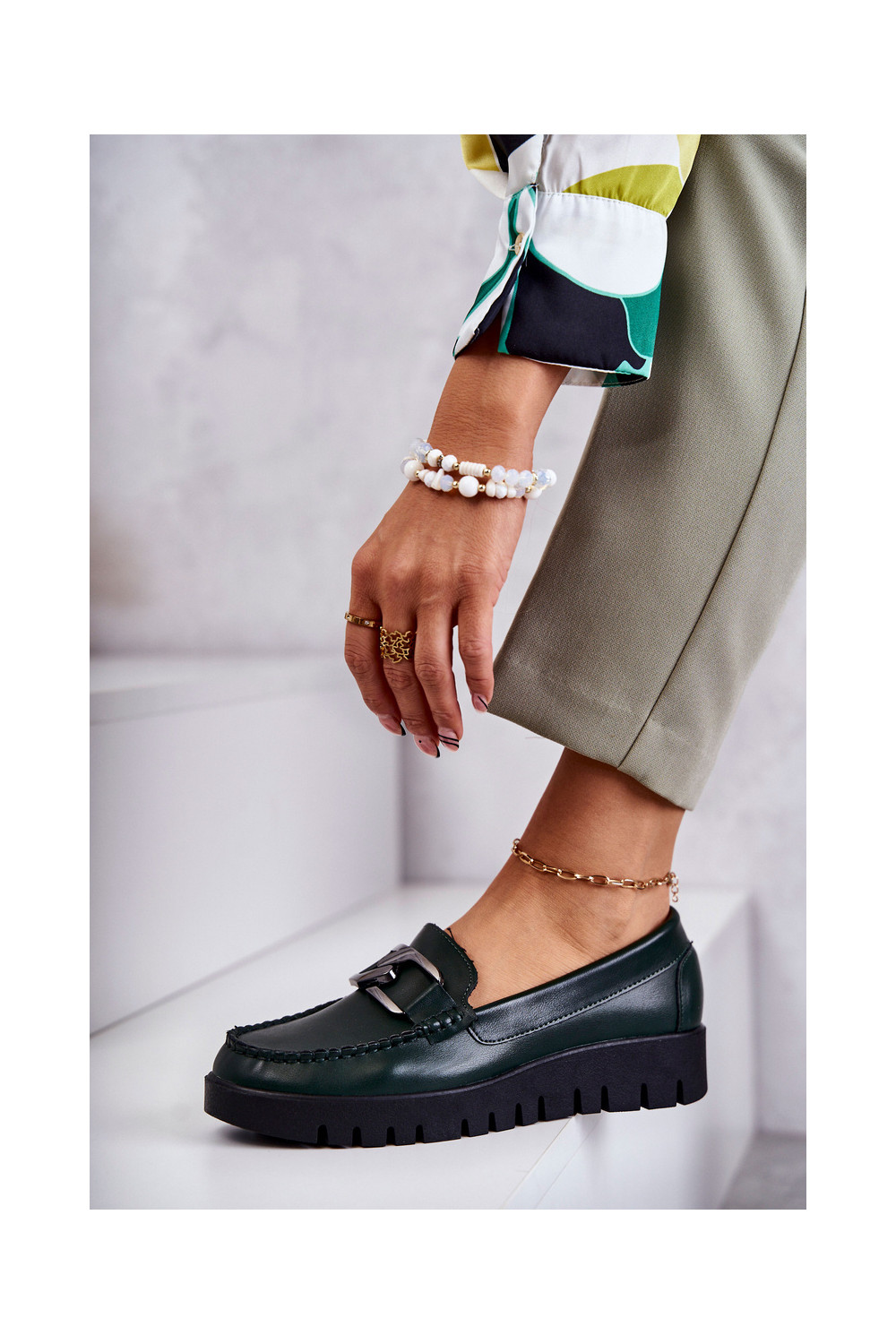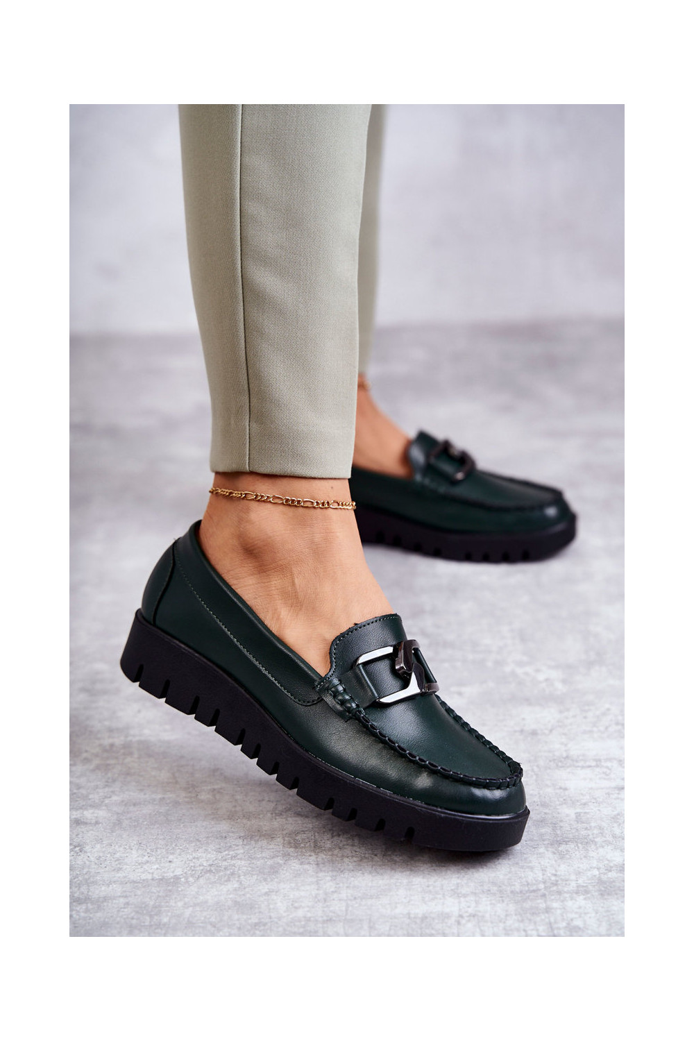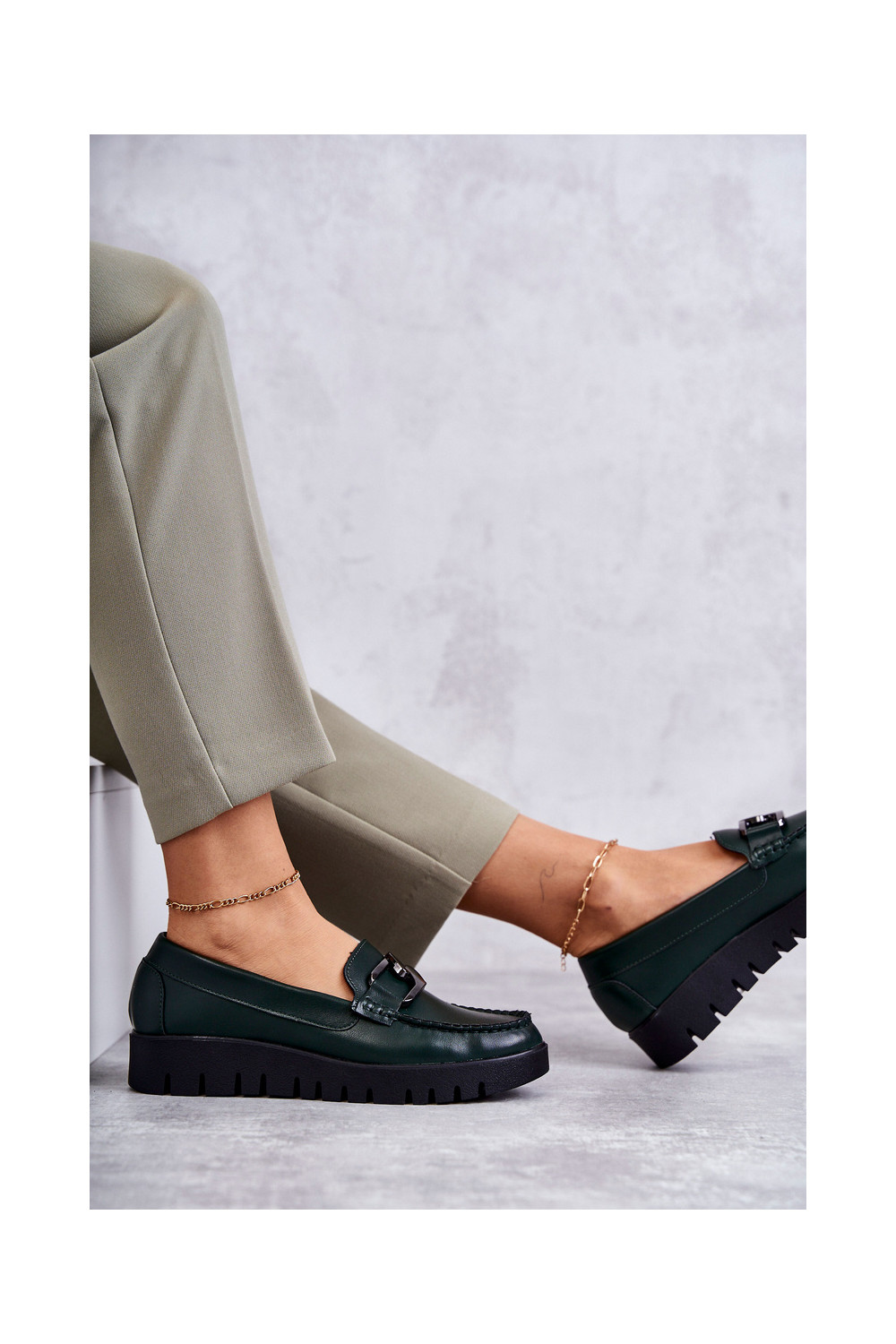 s efektem laku boty s platformou zelené Kjersti