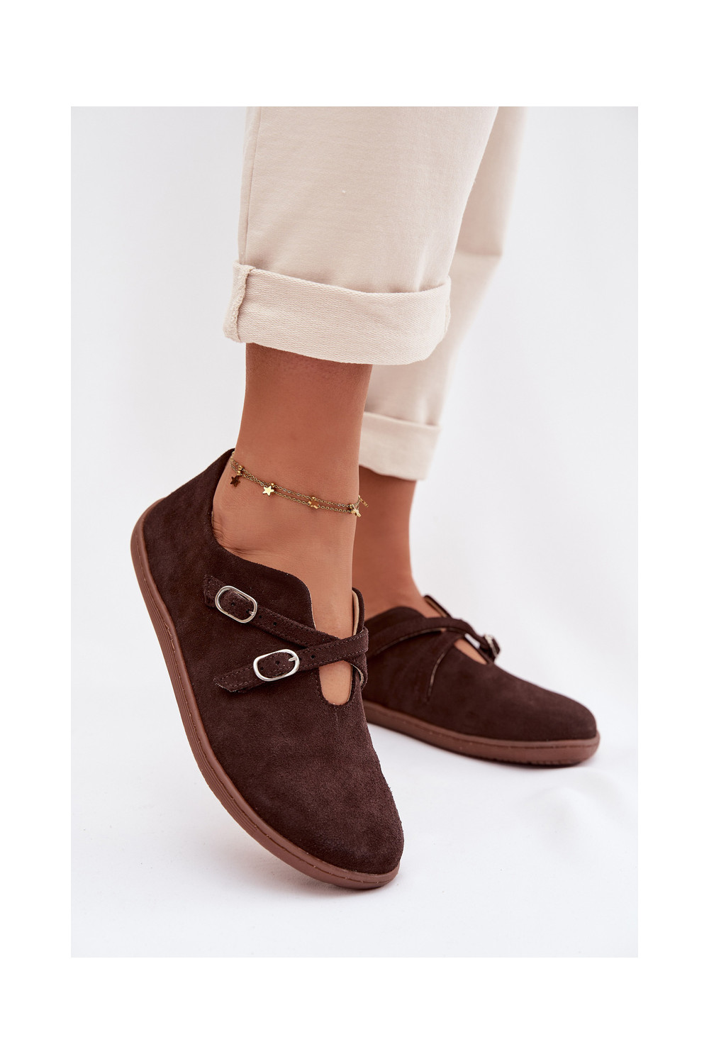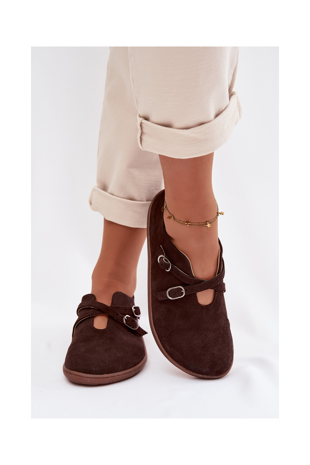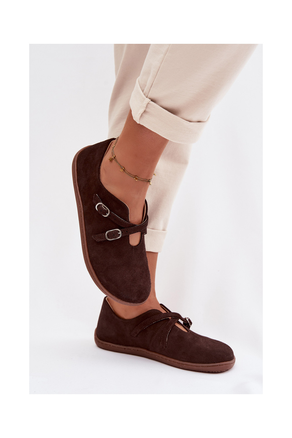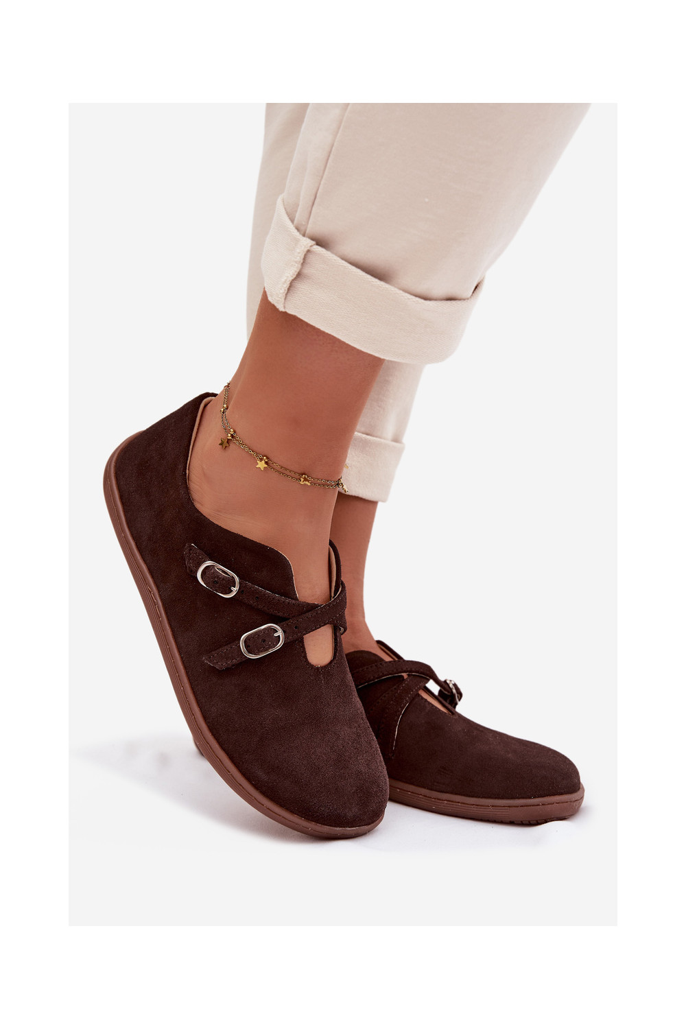 ze semiše boty Barefoot s pruhy Zazoo N1271 Czekoladowe