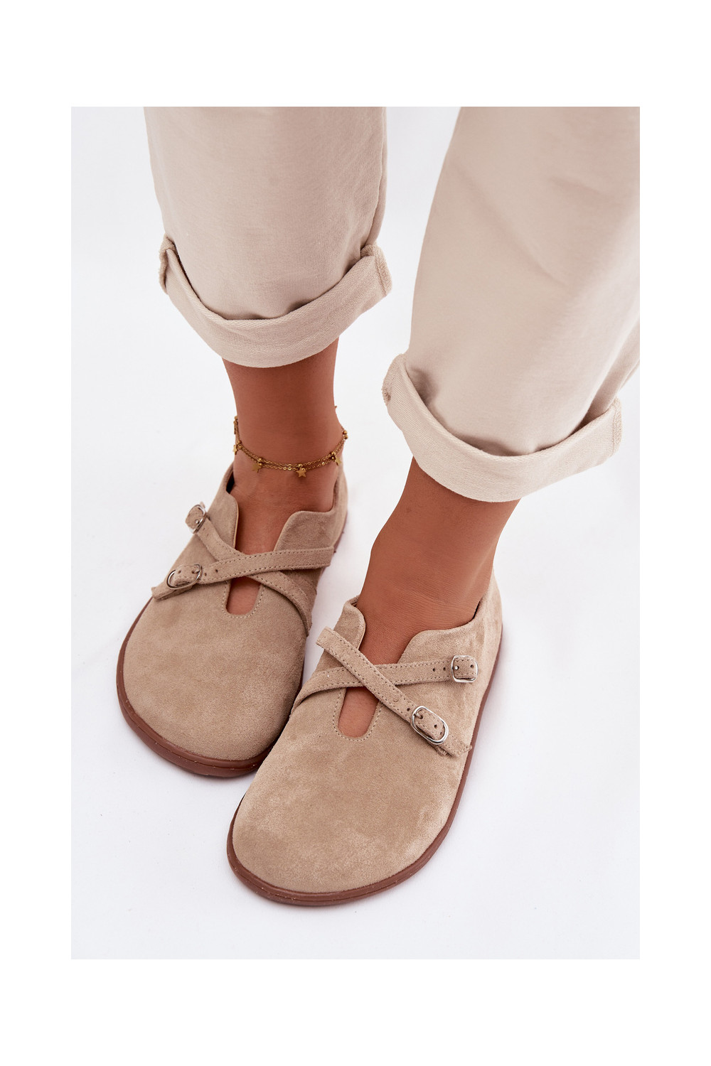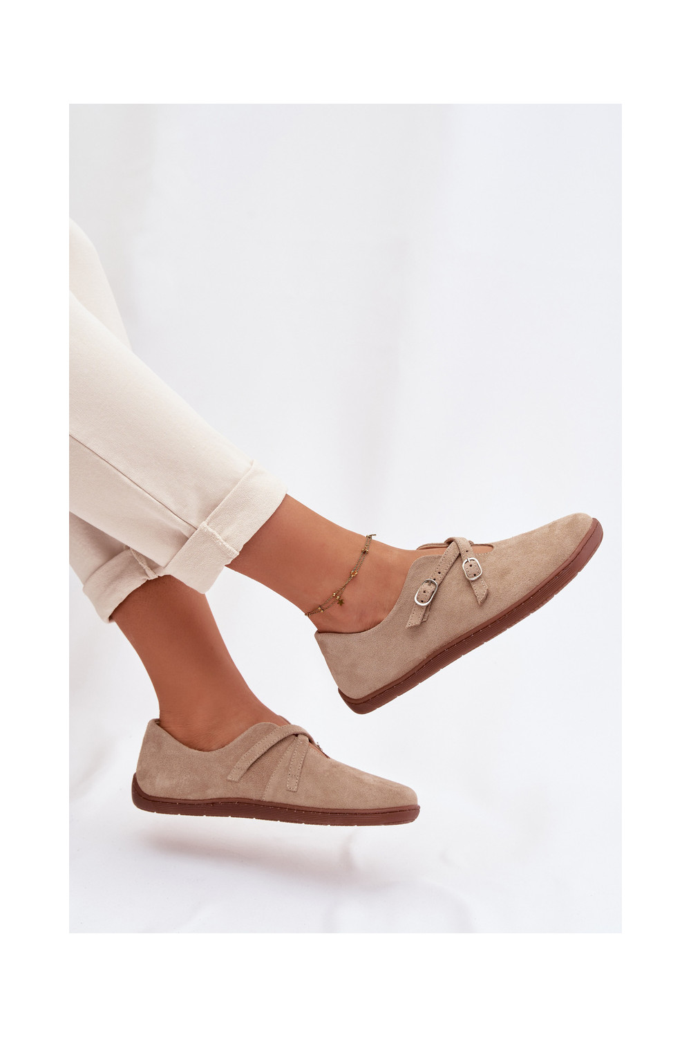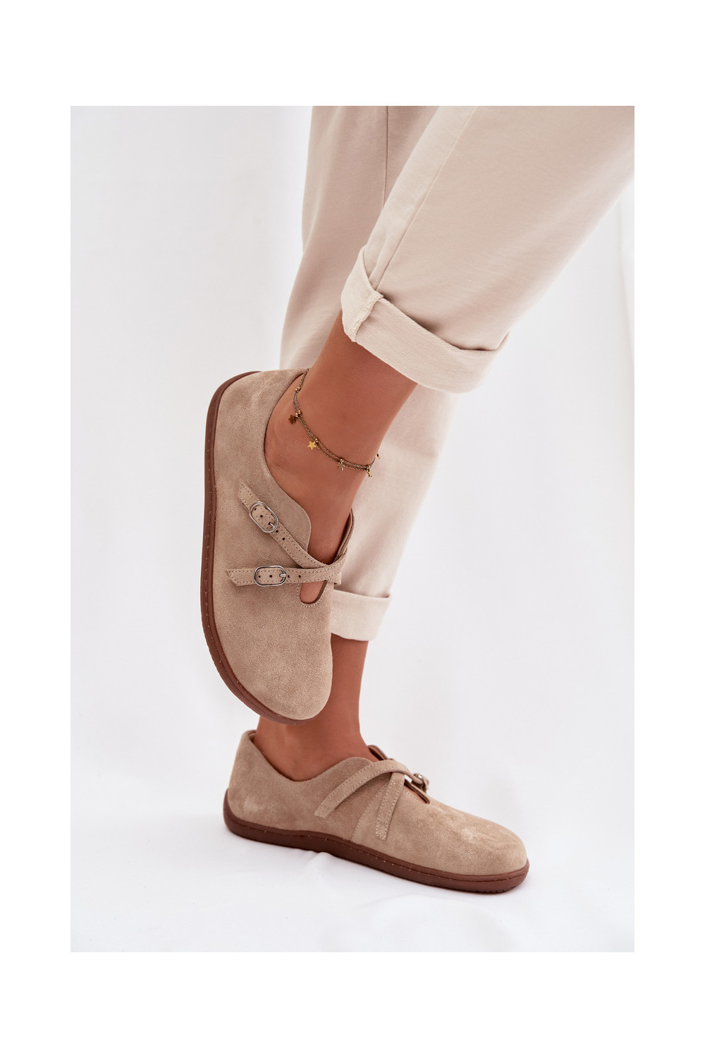 ze semiše boty Barefoot s pruhy Zazoo N1271 béžové
