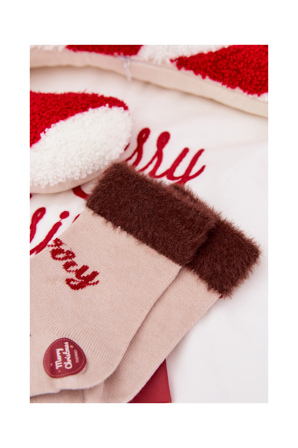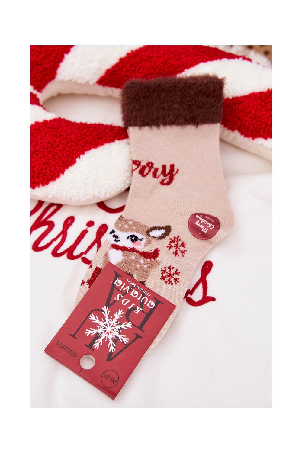 Slavnostní ponožky Dětské s kožešinou Wełna s alpakami béžové
