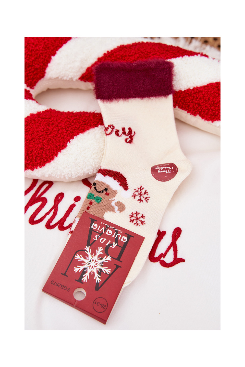 Slavnostní ponožky Dětské Piernik I s kožešinou Wełna s alpakami slonová kost