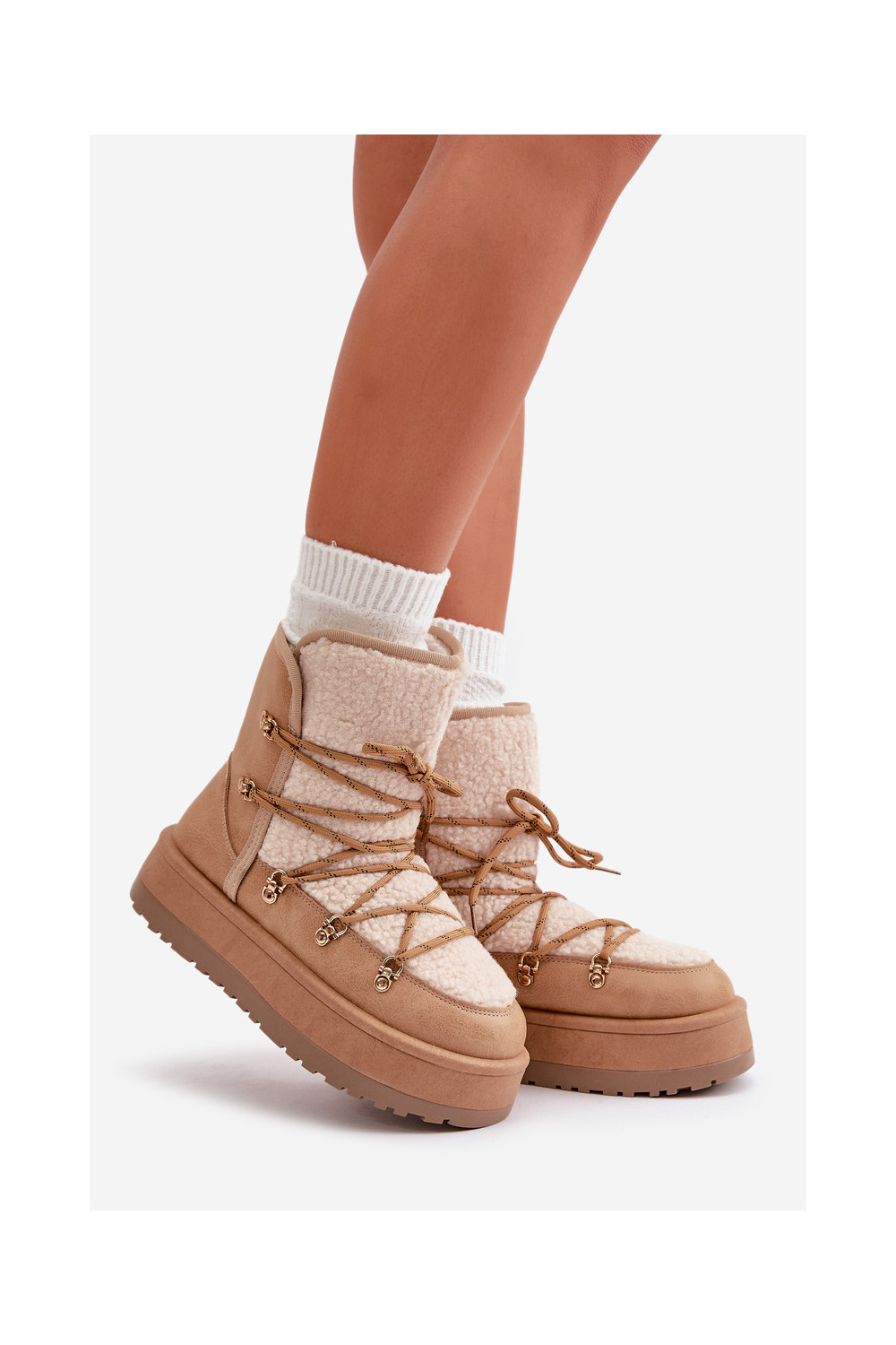 Moteriški sniego batai su platforma ir stilingomis detalėmis rudos spalvos Riaviana
