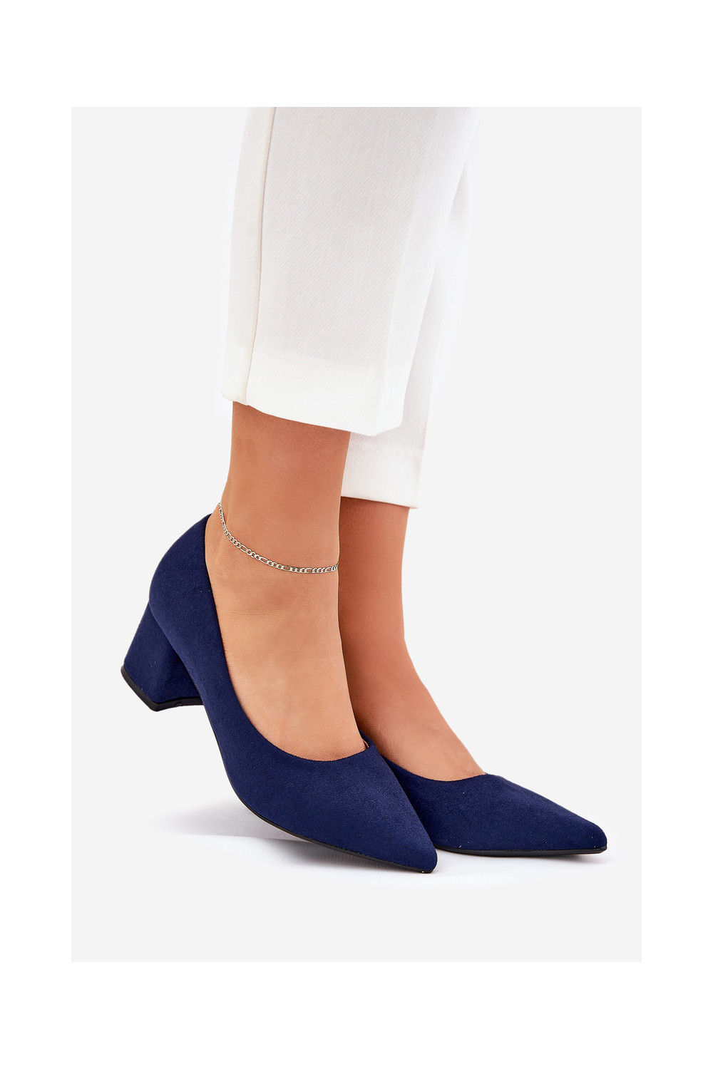 Moteriški batai su kulniukais tamsiai mėlynos spalvos