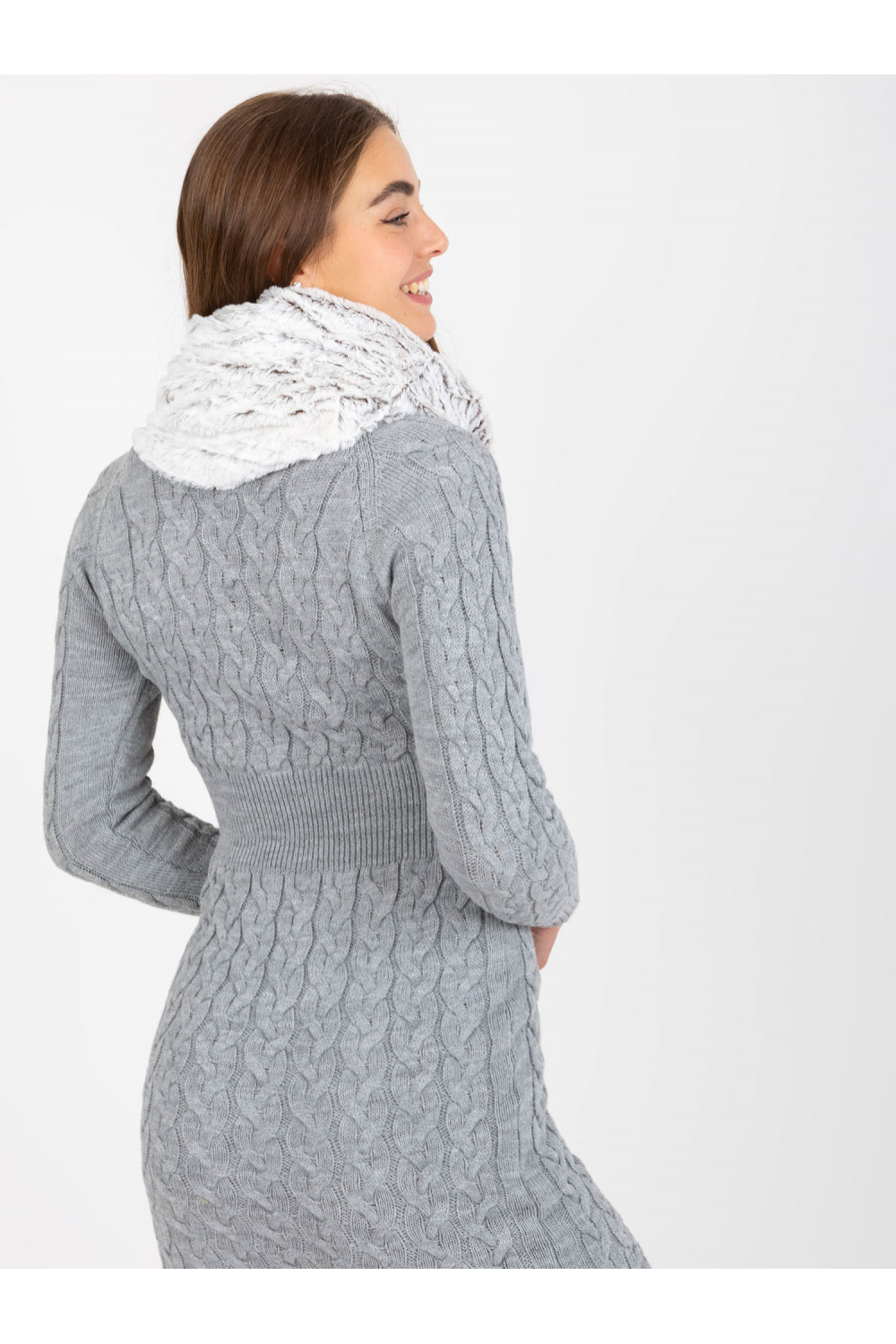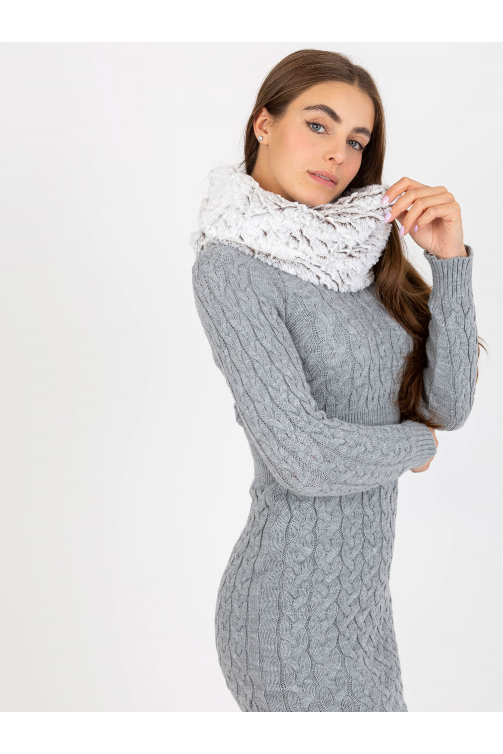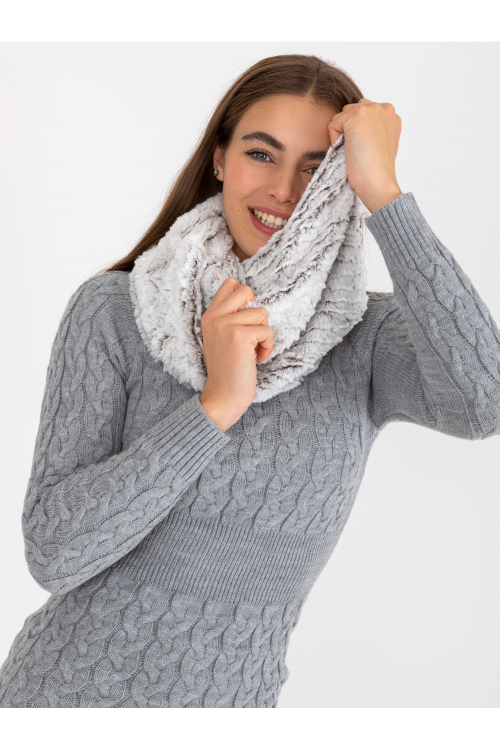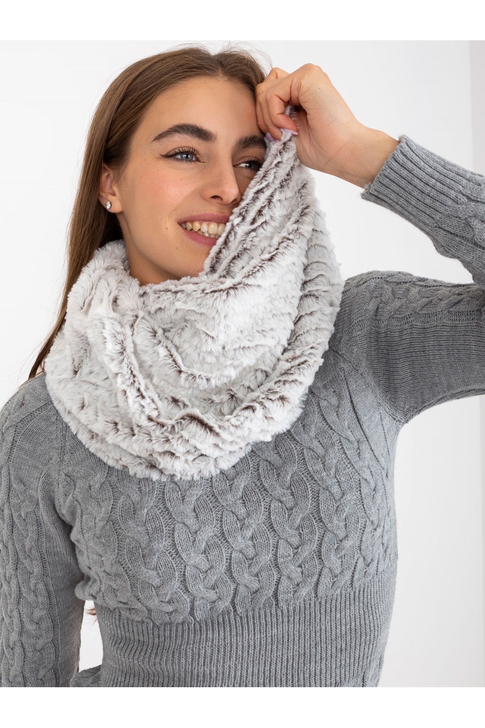 Bílo-tmavě hnědý zimní komín z umělé kožešiny.