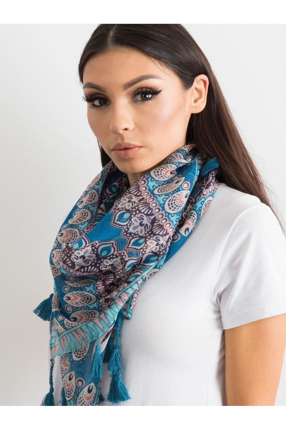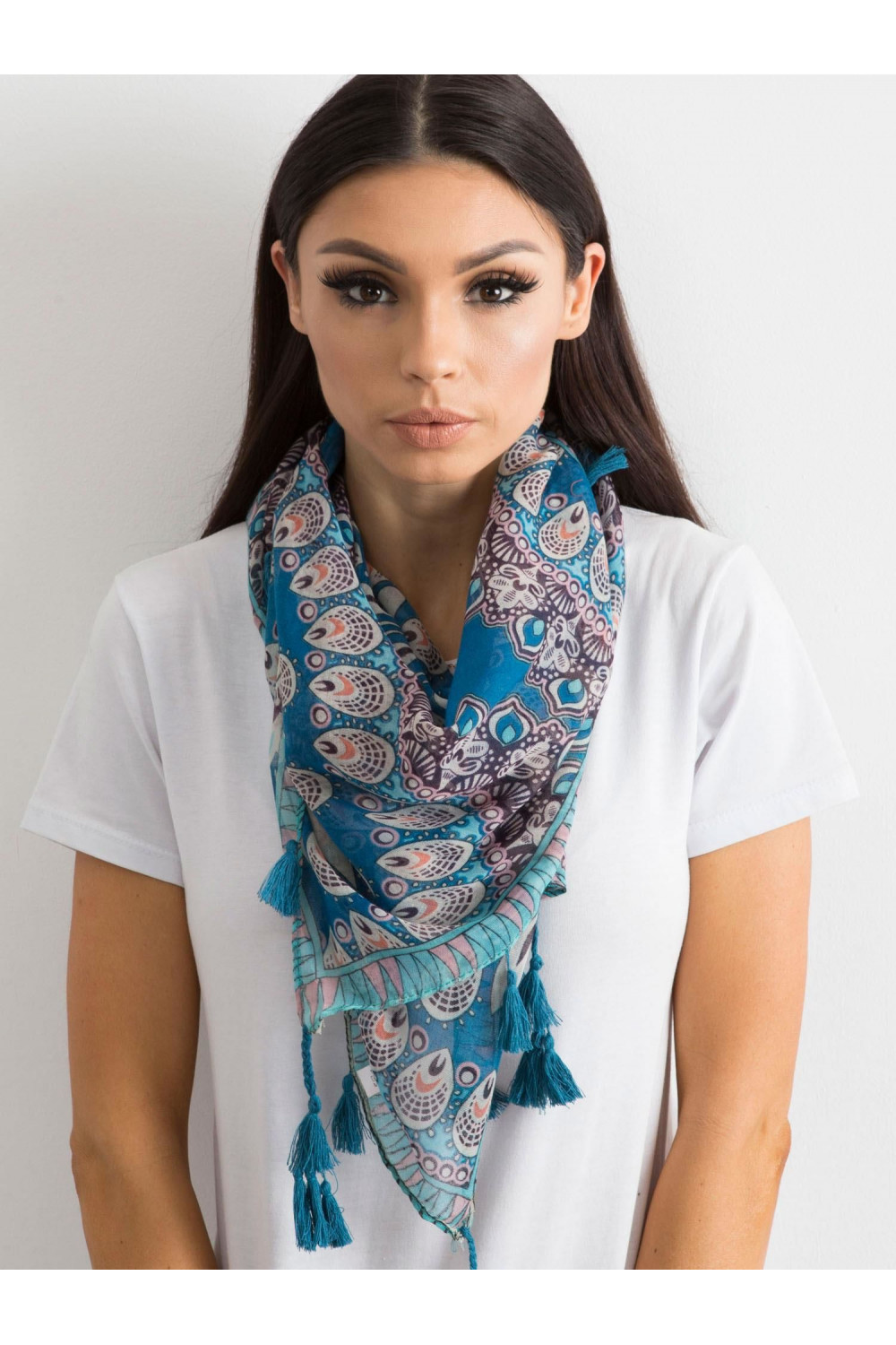 Modrý šátek s etnickým vzorem .