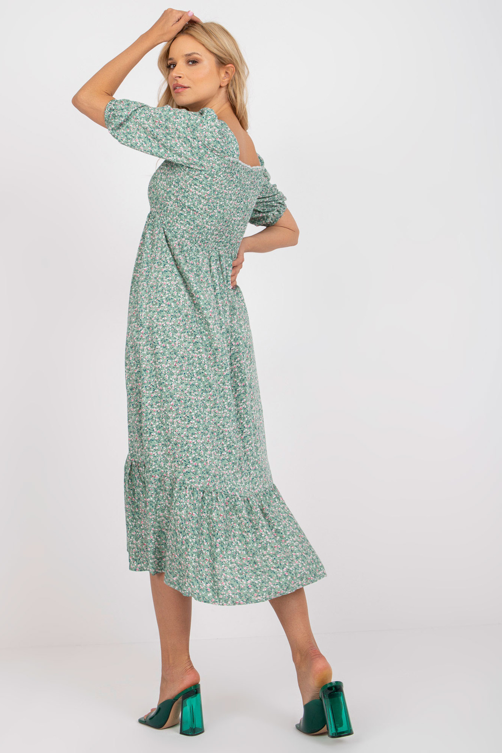 Zelenokvětinové midi šaty s krátkým rukávem RUE PARIS.