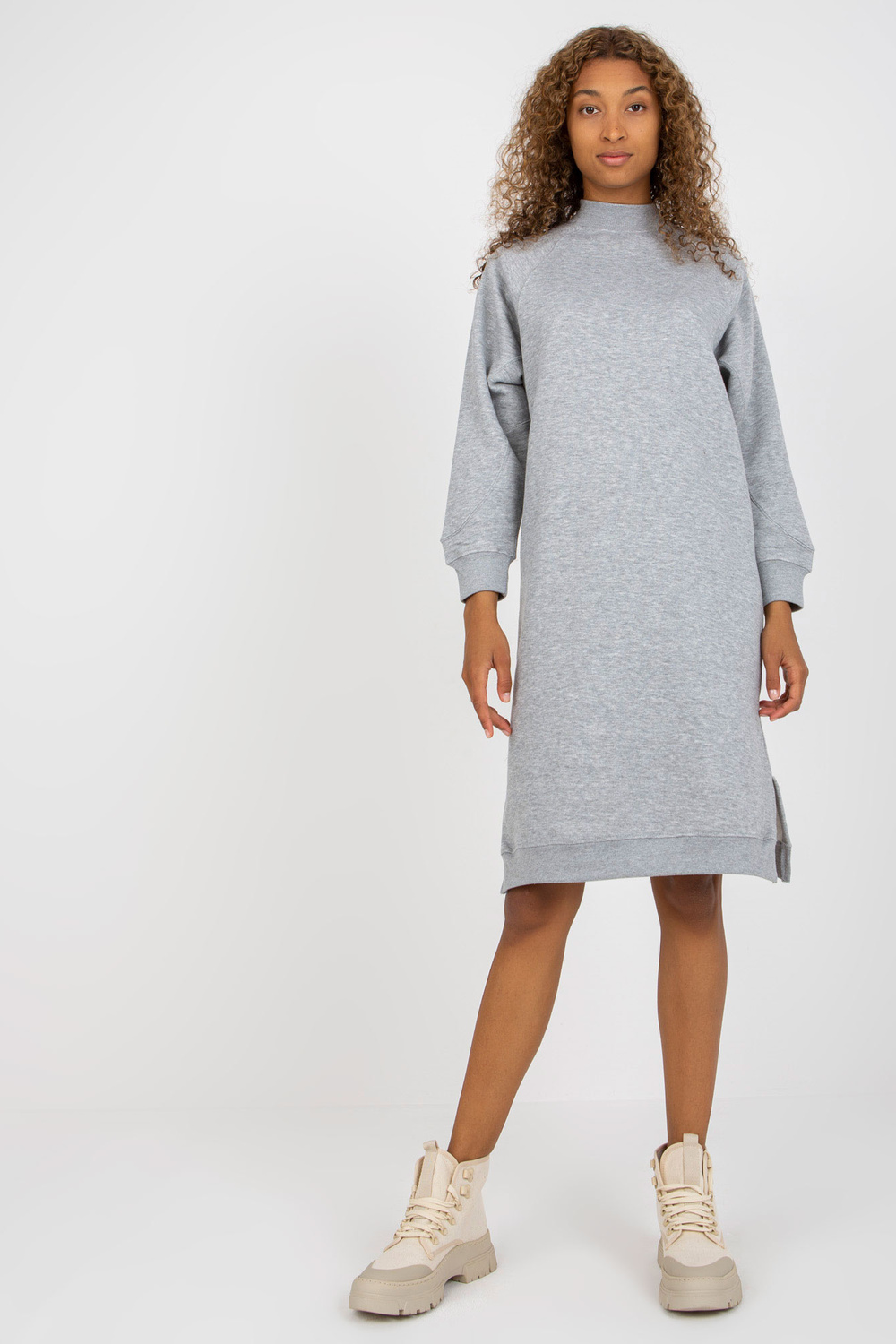 Světle šedé rovné mikinové šaty s rolákem strong> .