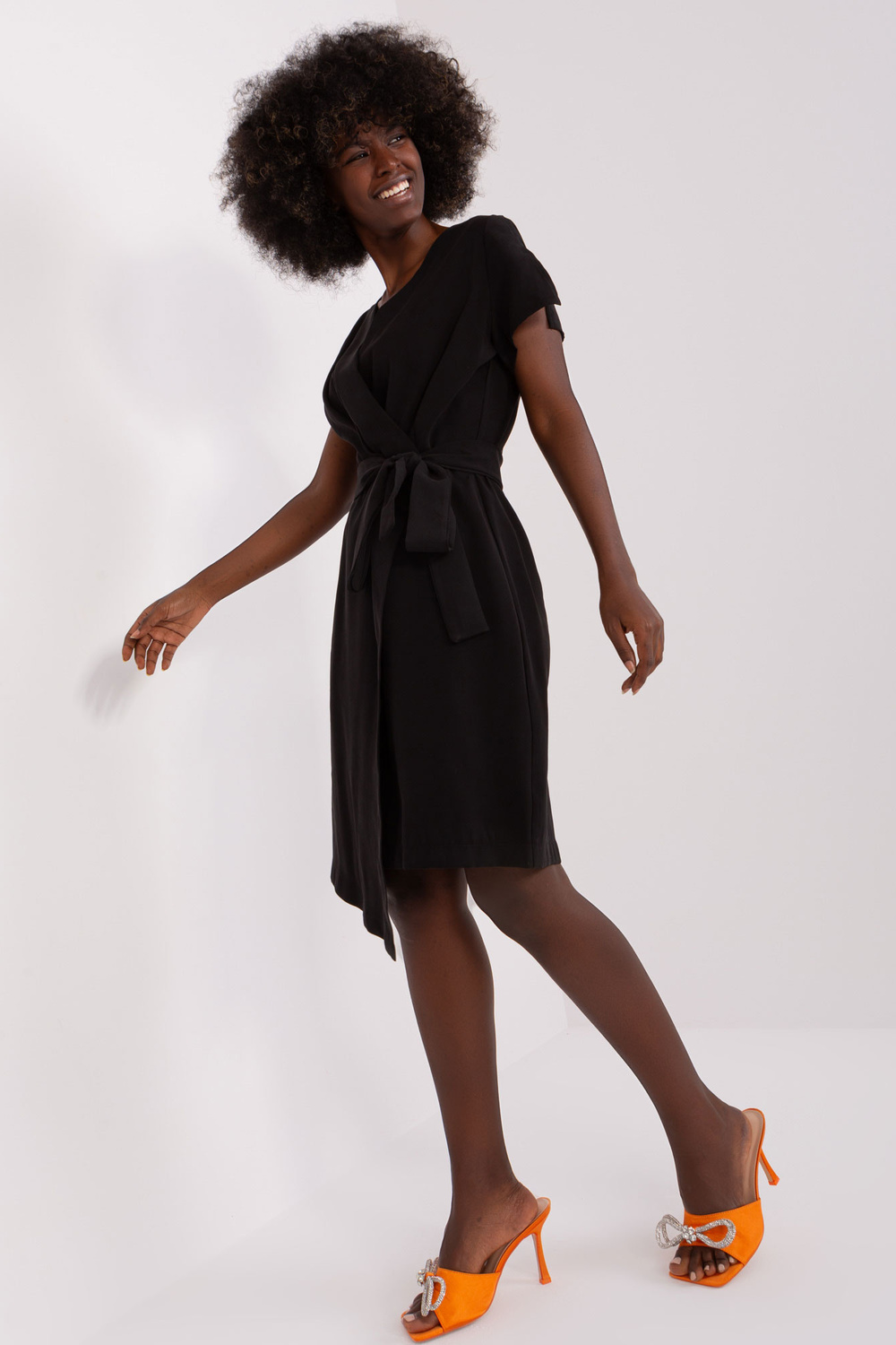 Modelka má na sobě velikost S/M. Rozměry modelky: výška 168 cm, prsa 82 cm, pas 62 cm, boky 93 cm.